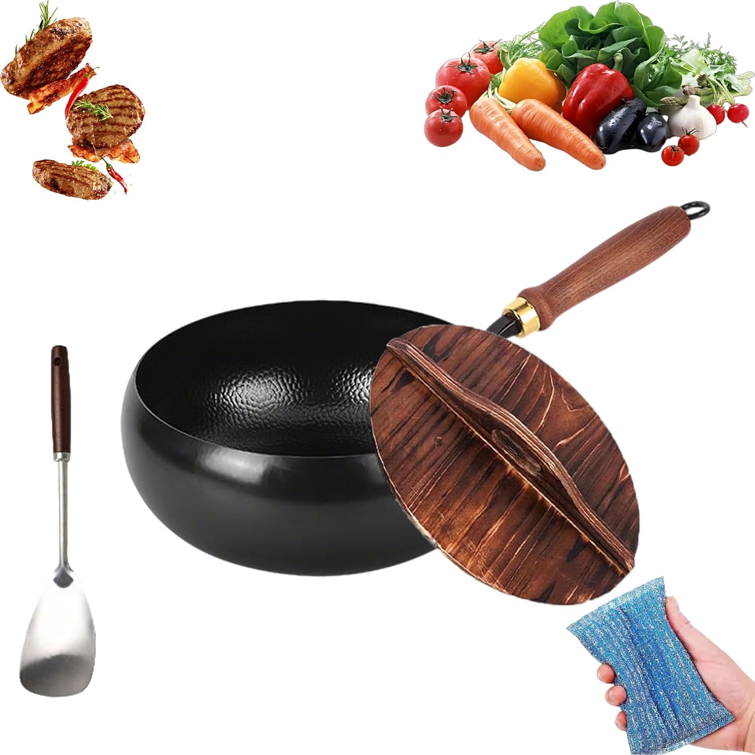 Product Description 2026 New Japanese Cast Iron Cookware, Non-stick Uncoated Thick Iron Pot with Lid, High Purity Carbon Steel Frying Pan, Durable Rust-Free for All StovesProduct Highlights: 1. Hand-forged from 100% pure cast iron 2. Uncoated, full of natural flavor 3. Features a high-quality natural wood handle 4. Even heating for delicious resultsProduct SpecificationsMaterial: Refined IronCraftsmanship: Hand-forgedFeatures: Uncoated potColor: BlackSize: Diameter 9.45-11inWeight: 1.4kgPackage Includes: 1* Japanese Cast Iron Cookware 1* High-quality spatula 3* Cleaning clothNotes: 1. Due to different manual measurements, please allow for slight size differences. 2. Due to differences in different monitors, the picture may not reflect the actual color of the item.
