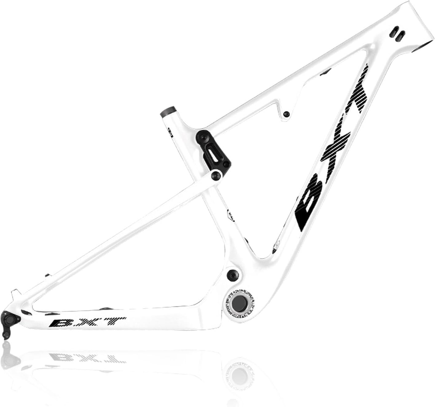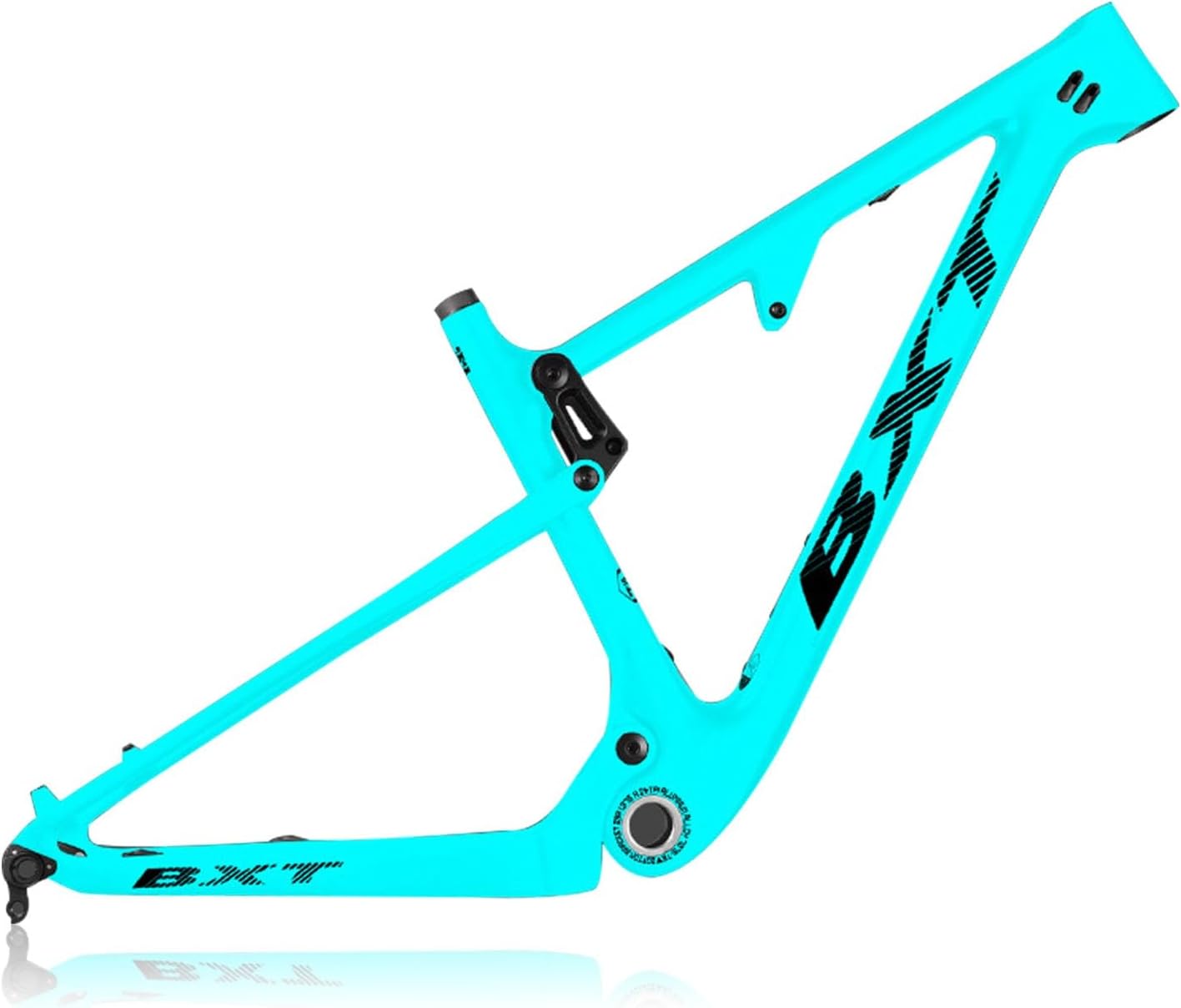 Full suspension mountain bike frame, 29ER Soft tail Disc brake bike frame, 9*135mm Quick Release/12*142mm Thru-axle Frame, Perfect gift for bike lovers, can be assembled with your friends.Product name: Carbon Fibre Mountain Bikes FrameSize: 16/17/18.5/20inch(S/M/L/XL)Frame Height: S-405mm; M-430mm; L-470mm; XL-520mm.Recommended rider height: S-160-170cm; M-170-180cm; L-180-190cm; XL-Above 190cm.For wheel:29" wheelsMaximum tire width: 29*2.25"Level: XC/TrailMaterial: Carbon Fibre T700+T800Weight: about 2100±50gColor: Matte Black , White , Orange , Yellow , Gray , Green , Cyan , Dark Green , Silver , Red , Blue-1 , Violet , Brown , Pink , Blue-2Specifications: Headset: 41.8*52mmSeatpost: 31.6mmSeatpost Clamp: 34.9mmRear wheel travel: 100mmRear Axle Spacing: 9*135mm quick release/12*142mm Thru-axleShock absorber: Supports 165mm Shock absorberBushing: 22-22mmBottom Brackets: BSA BB73mmBrake: Disc Brake, Directly mounted with 160mm disc brake rotor.Cable : Full internal routing Package: ( NOTES: Shock absorber not included. )Frame + Rear Thru axle lever + Seatpost Clamp + Quick Release Tail Hook + Thru-axle Tail HookNOTES: Please check if the bike frame size is correct before purchasing.Service: If you have any product and service questions, please contact us and we will respond to you within 24 hours.