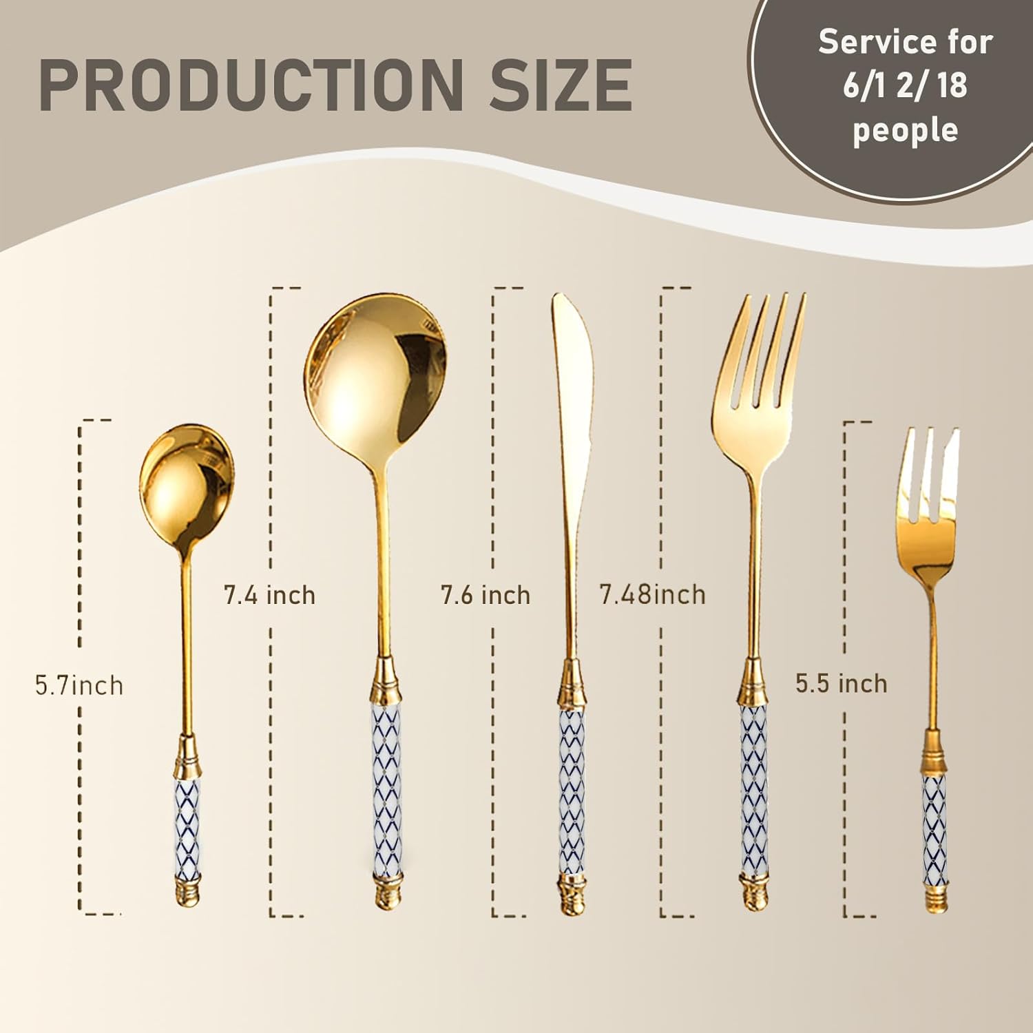 | Additional Features | ceramic cutlery set, gold flatware set, silverware set 18/8 stainless steel |