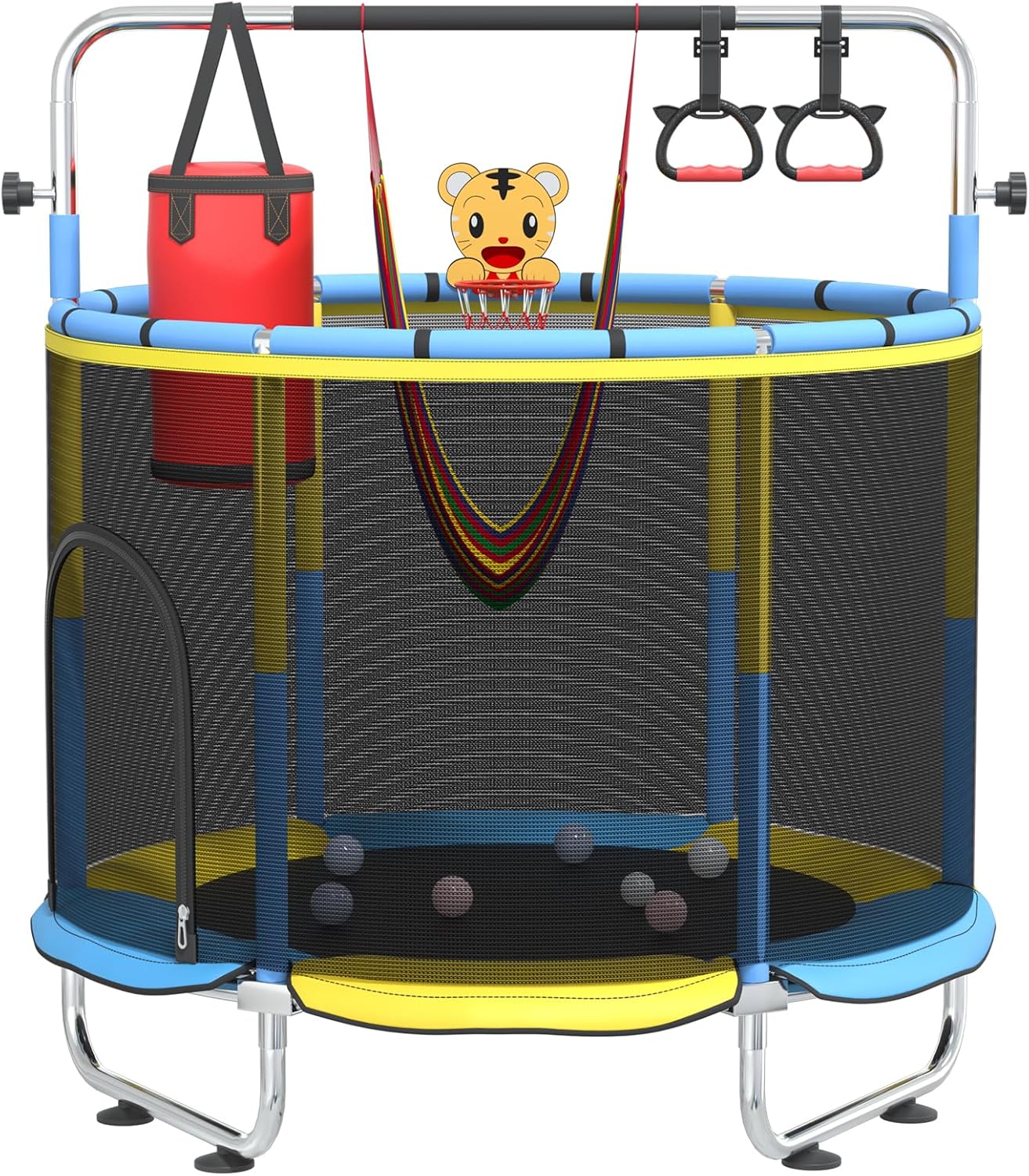 | Included Components | Sandbag, ocean balls, swing, gymnastic rings, basketball hoop, adjustable-height gym bar, Trampoline |
