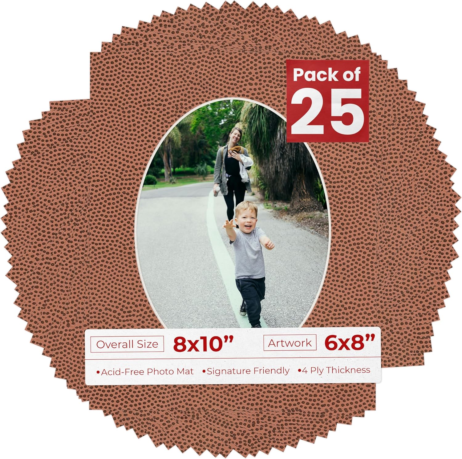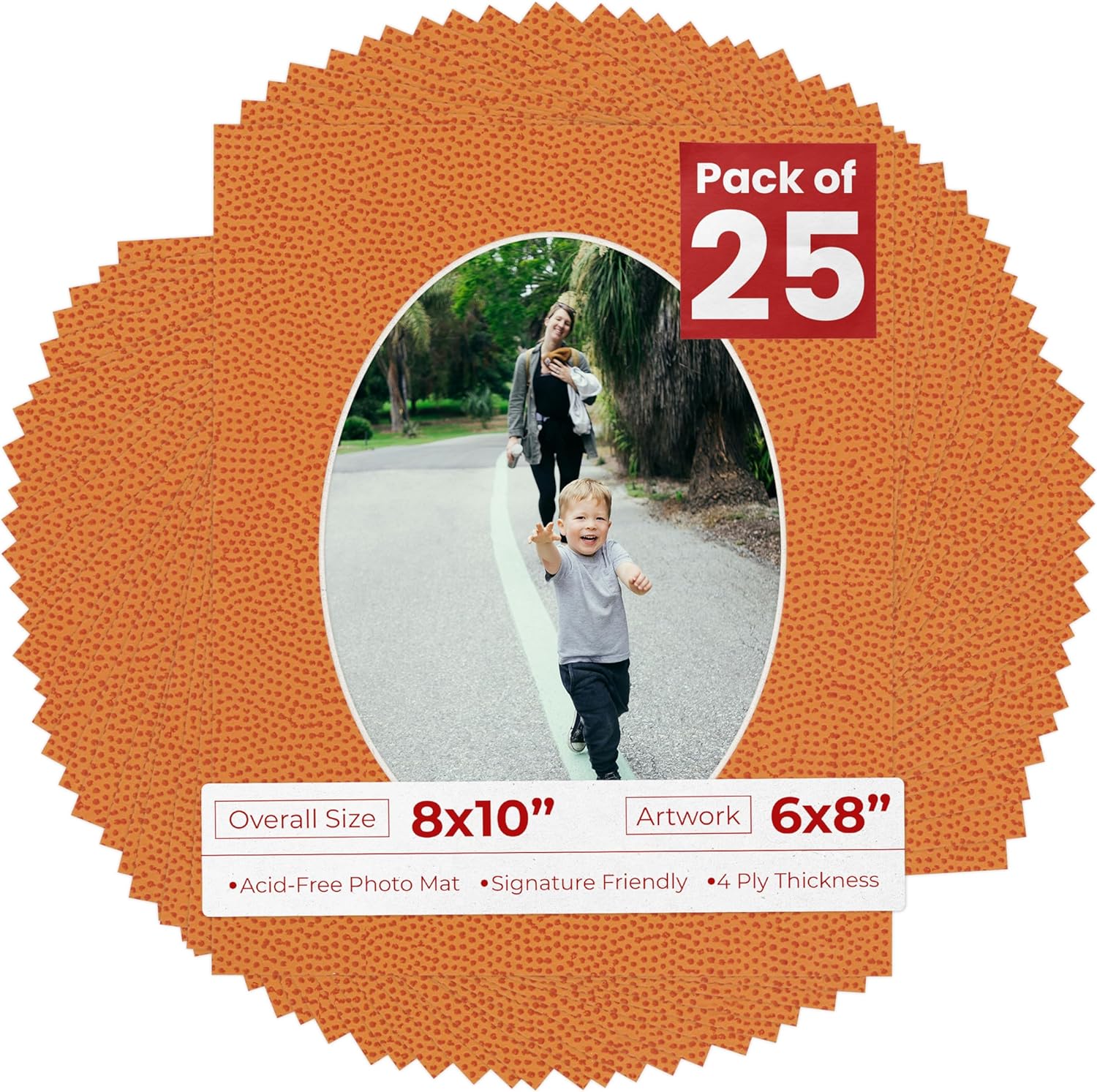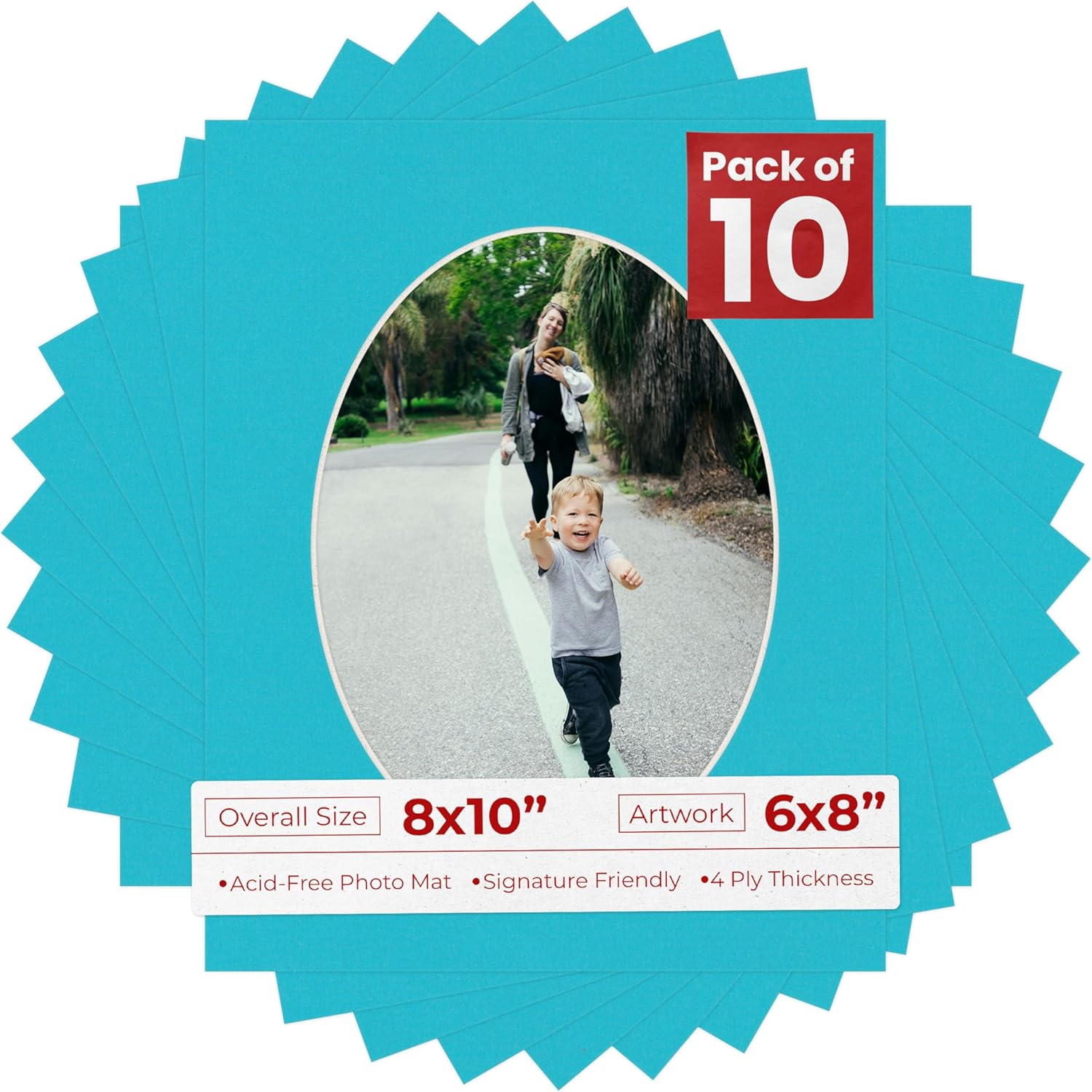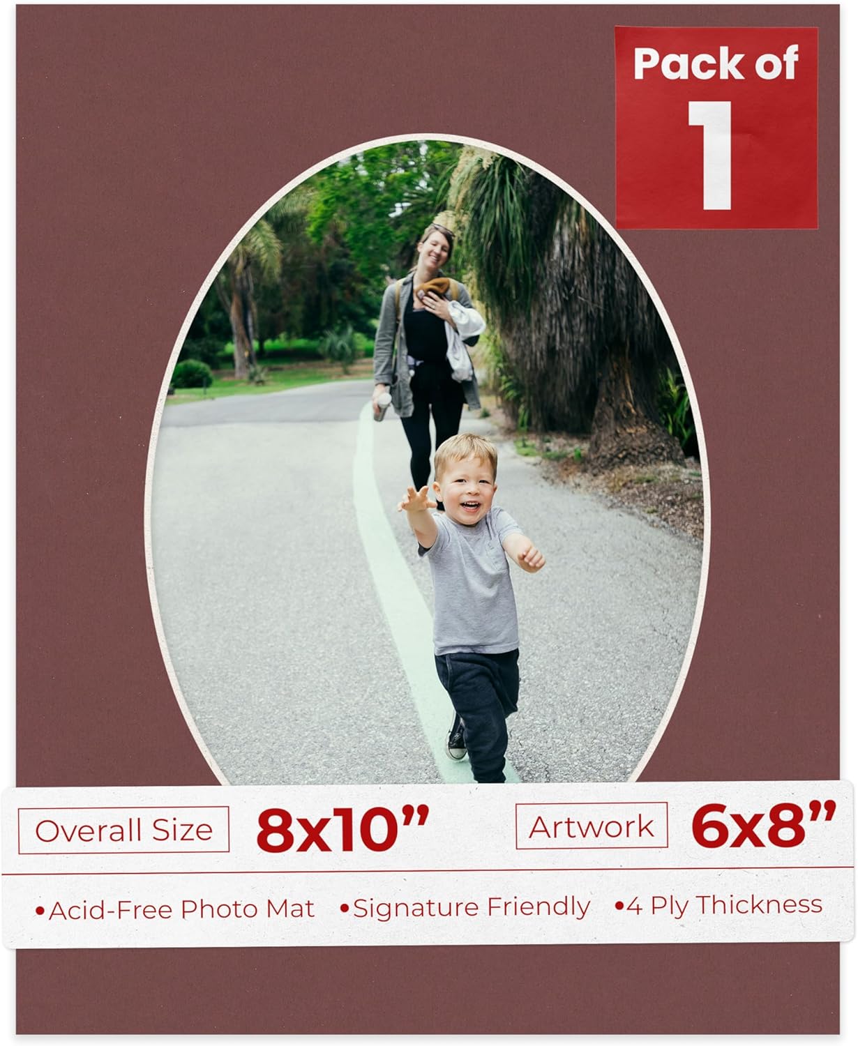 OVERALL SIZE (Made to fit a Frame Size Measuring) 8x10 Inches | Bevel Cut Oval Opening Size of 5.5x7.5 inches | For a Photo Measuring 6x8 Inches. THIS IS FOR 10 matboards. White linen canvas PHOTO MAT with a oval bevel cut opening. A great way to change up the look of an existing frame with a new accent mat board. This matte also works great as a replacement for damaged, dirty, or faded matting in your old frames. PREMIUM QUALITY: Our precut photo matboards are acid free & precision cut with a 45 degree bevel by machine for perfect corners and NO over-cuts every single time! All of our precut matboards are MANUFACTURED BY POSTER PALOOZA IN THE USA.