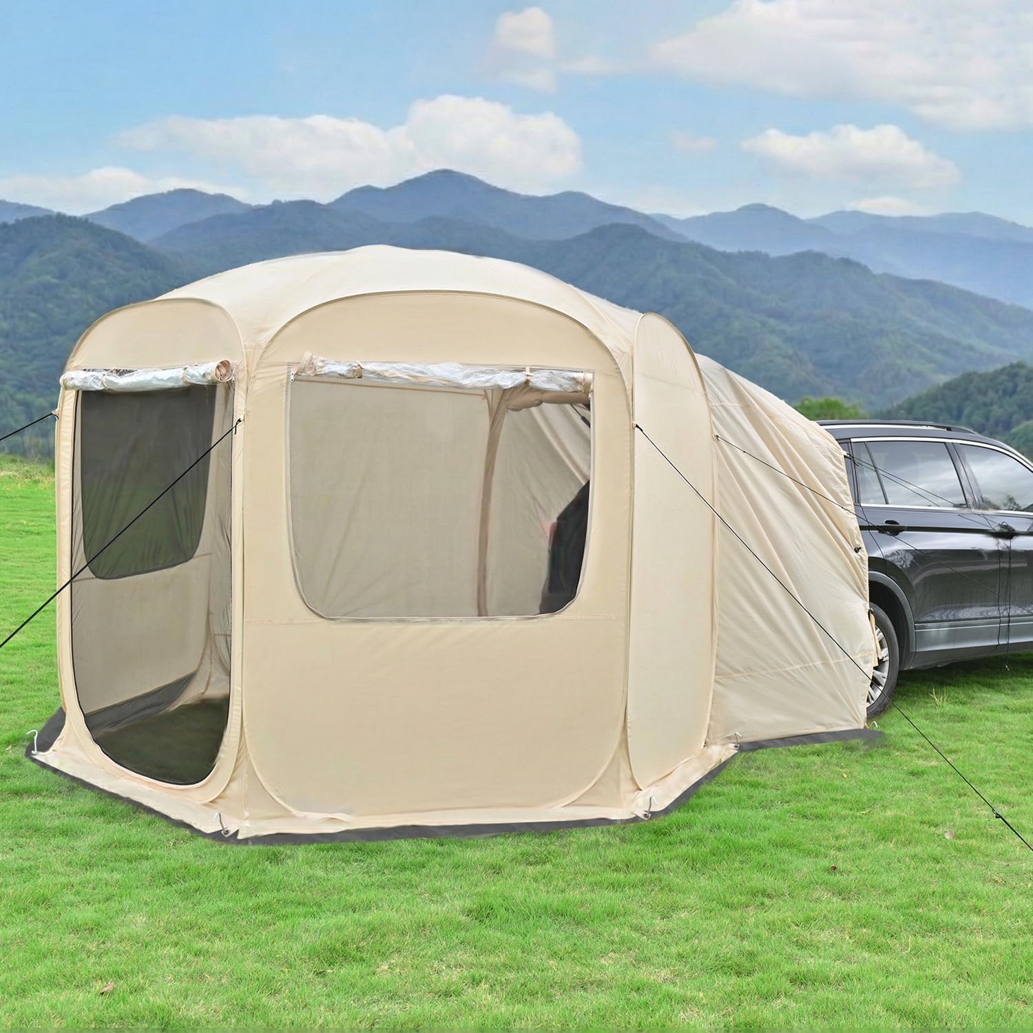 Alvantor 5 Person Pop Up SUV Tent,2 in 1 Car Tent & Camping Tent,Mosquito Screen Multi-functiona for Car SUV Van Camping,Includes Heavy Duty Tarp & Storage Bag,Quick Setup,Waterproof,8.6'L X8.6'W X6.7'H