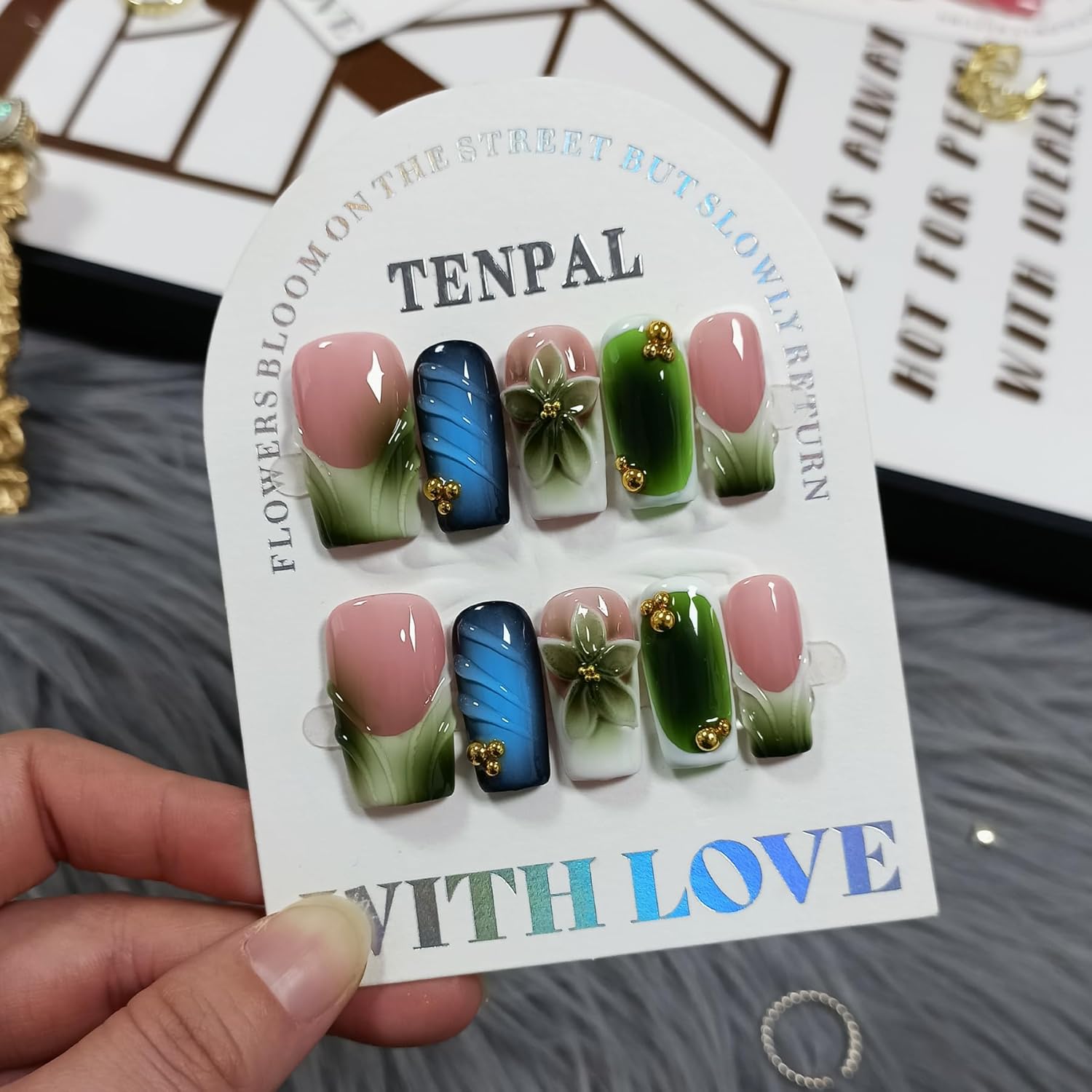 | Included Components | a box, Jelly nail adhesive, double-sided nail file, cuticle stick, and prep pad,each nail is the Recycle Used Sets |