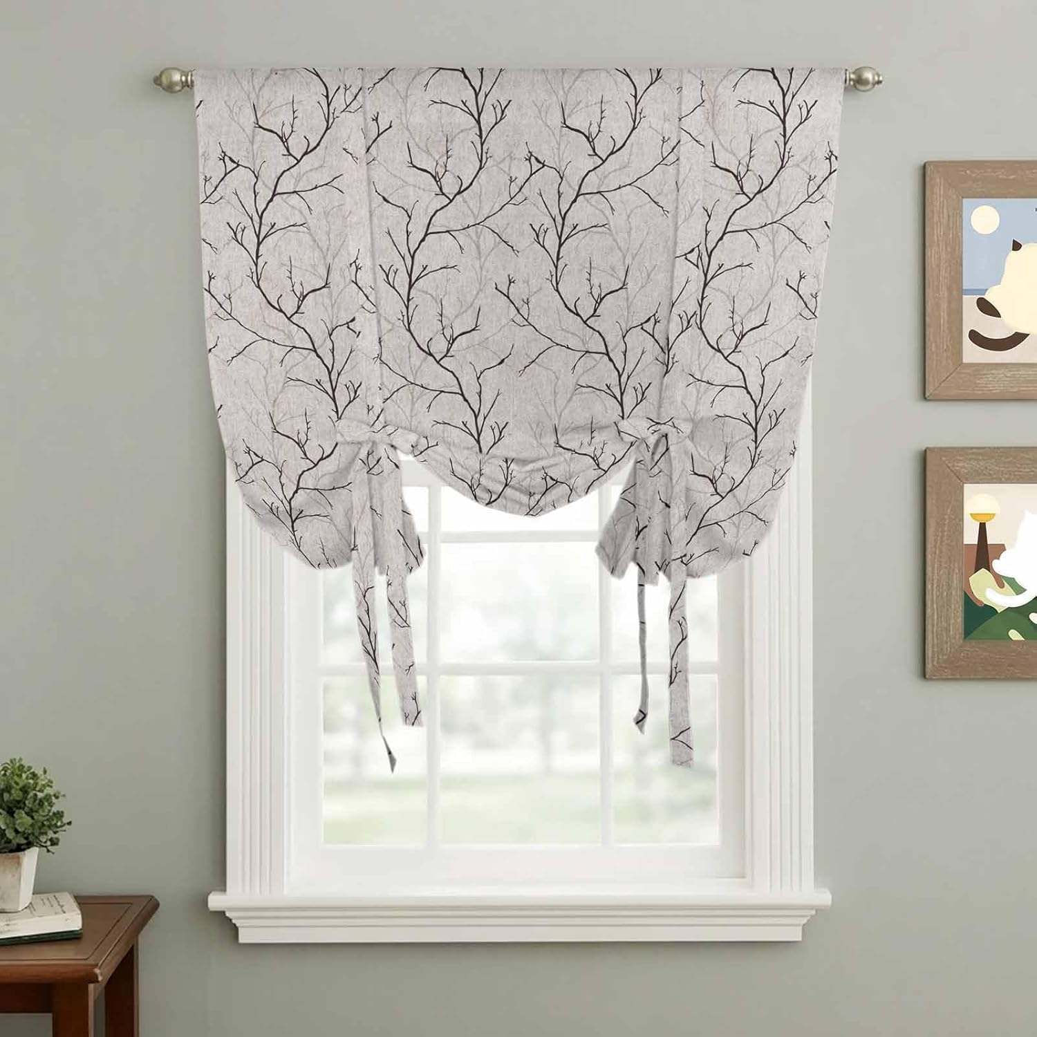 Are you bothered by sunlight shining directly into your eyes while cooking or cleaning near the windowDo strong UV rays make rooms feel uncomfortably warm or gradually fade your furniture and décorWould you like to enjoy natural light and outdoor views while keeping unwanted attention away from your homeThis rod pocket curtain valance features adjustable straps and rod pocket design, allowing flexible height and shape adjustment. It combines light filtering, privacy support and decorative appeal in one simple solution suitable for daily living.Product HighlightMaterial: PolyesterSize: 34x45 Inches/42x45Inches/42x54Inches/42x63Inches/46x63Inches/52x45Inches/52x63InchesPackage Content: 1 Panel Rod Pocket Tie Up Curtain Valance with 4 StrapsComfortable Light Control: Rather than blocking light completely, our tie up kitchen curtain works as a soft surface layer that filters strong brightness and supports privacy. It helps ease glare, discourages direct outside views and keeps indoor spaces feeling comfortable, open and visually calm throughout the day.Adjustable Strap Styling: With built-in straps, this tie up valances for windows allows DIY styling into folded layers, gathered looks or classic valance shapes. The adjustable balloon shades adds visual interest and dimension, giving you more control over how the curtain looks once in place.Versatile Use: Beyond standard windows, the tie up window shade is idea for kitchens/study rooms/offices/patios/front doors/porches/pergolas/basements/closets/RVs/dining rooms/bathrooms/living rooms/bedroom.Decorative Appeal: Available in many styles including Christmas/boho/floral/botanical/animal/cartoon/modern/farmhouse/holiday/Independence Day/Valentine's Day and more. Its decorative versatility makes our balloon valance curtains a thoughtful choice for housewarmings, seasonal décor updates or as a practical gift for family and friends.