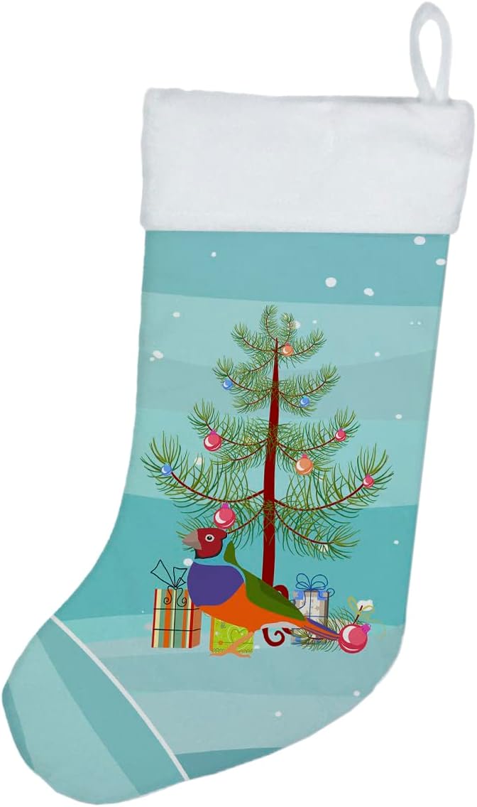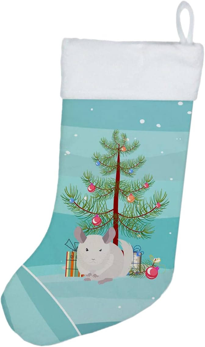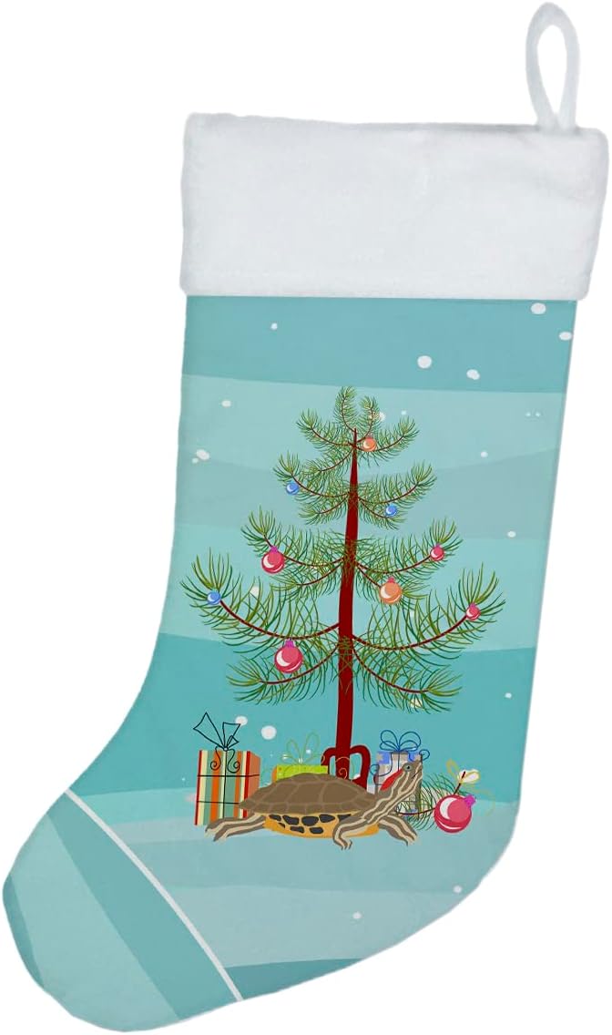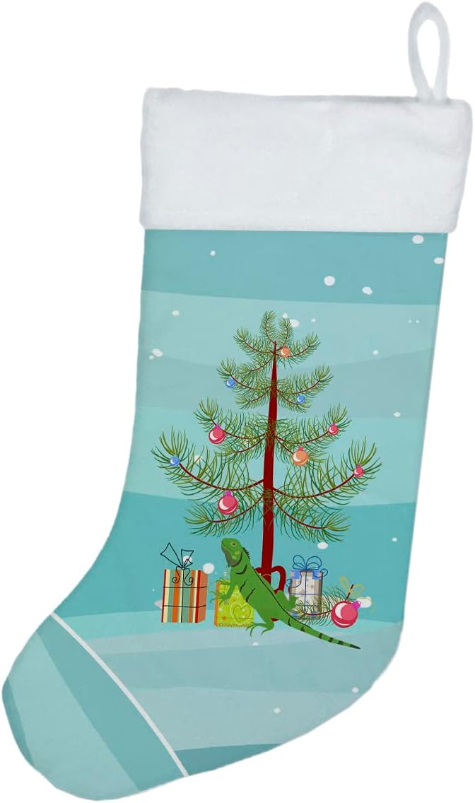 Celebrate Christmas with this Christmas Stocking. This Christmas Stocking is from Caroline's Treasures collection Merry Christmas Tree. The stocking has a suede feel to it and is soft to the touch. A hanging tab is sewn into the top of the stocking and the stocking measures approximately eleven inches wide and about 18 inches high. The same design is printed on both sides of the stocking. The stocking is machine washable and lay flat or hang to dry. 100% polyester suede and manufactured in the US. This Stocking is from Caroline's Treasures Reptiles category of products.