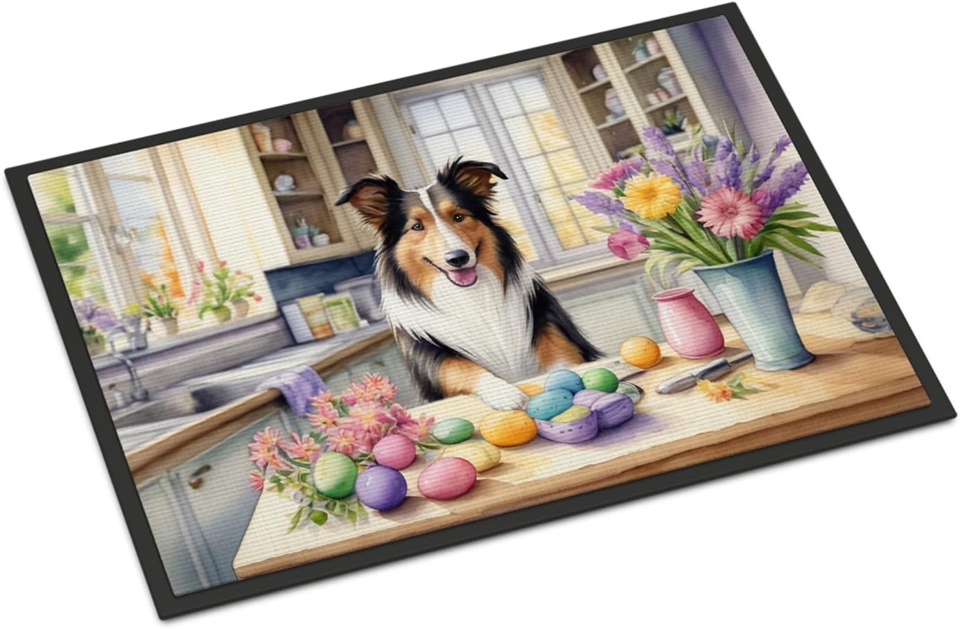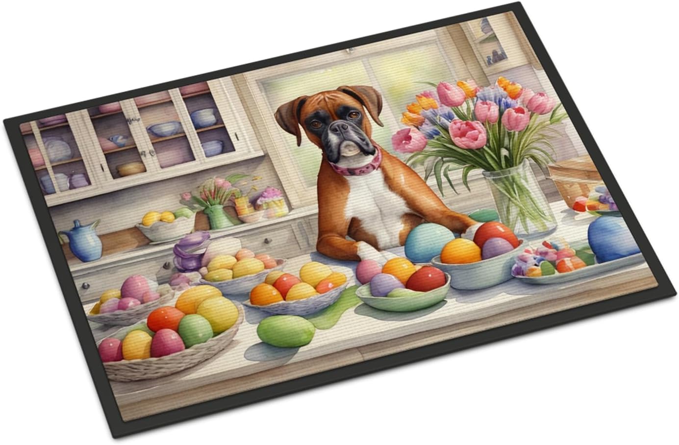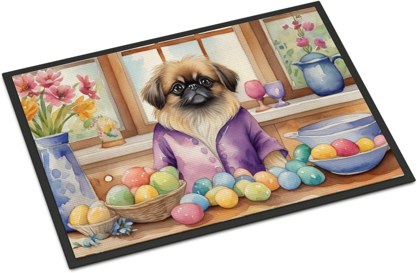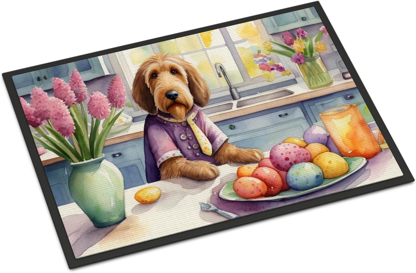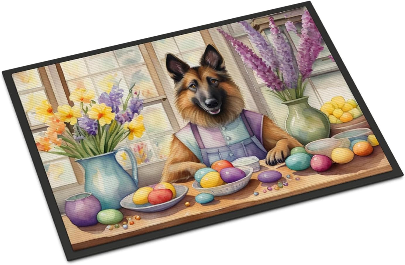 Doormat featuring breed specific Bichon Frise artwork. Celebrate Easter with this Easter Doormat. Welcome your guests in style with our Artwork Door Mat, designed to withstand almost any weather condition. This mat, measuring approximately 24 by 36 inches, is held together by durable black binding tape. Its top layer, composed of polyester felt, is dyed with the eye-catching image you see on the mat. A few layers below provide the mat with stability, while its rubber bottom is stamped to help prevent slipping and ensures safety. Our mat works wonderfully as both an indoor or outdoor door mat. For cleaning, simply hose it off with water or use a power washer - no need for any cleaner that produces suds. Avoid scrubbing with a brush, instead, opt for the vacuum on floor setting. Designed manufactured and printed in the USA, this mat is a perfect addition to your porch, outdoor kitchen, entryway, or any indoor space. Its unique design makes it a charming decorative rug that greets your guests and adds a stylish touch to your home decor.