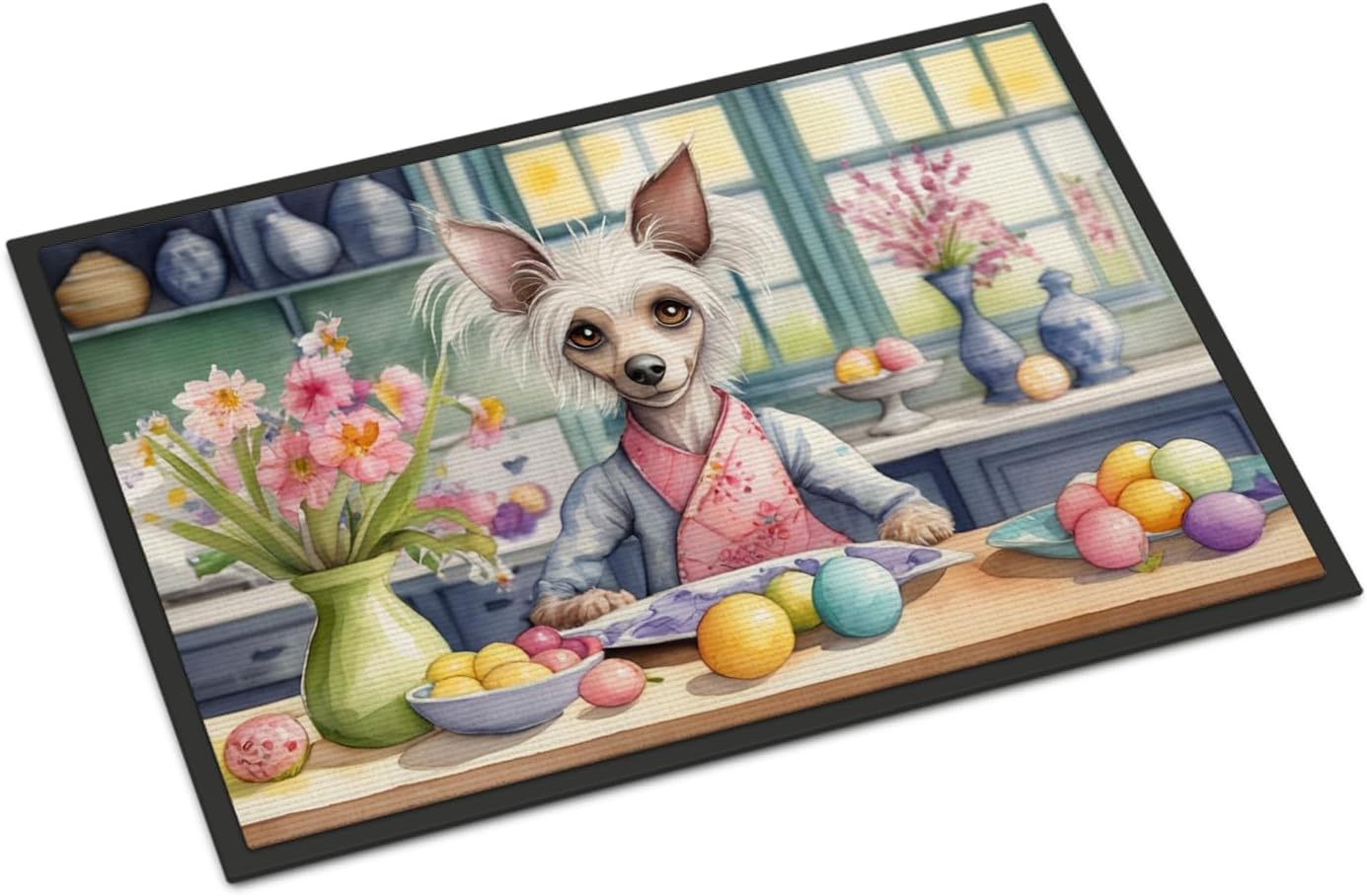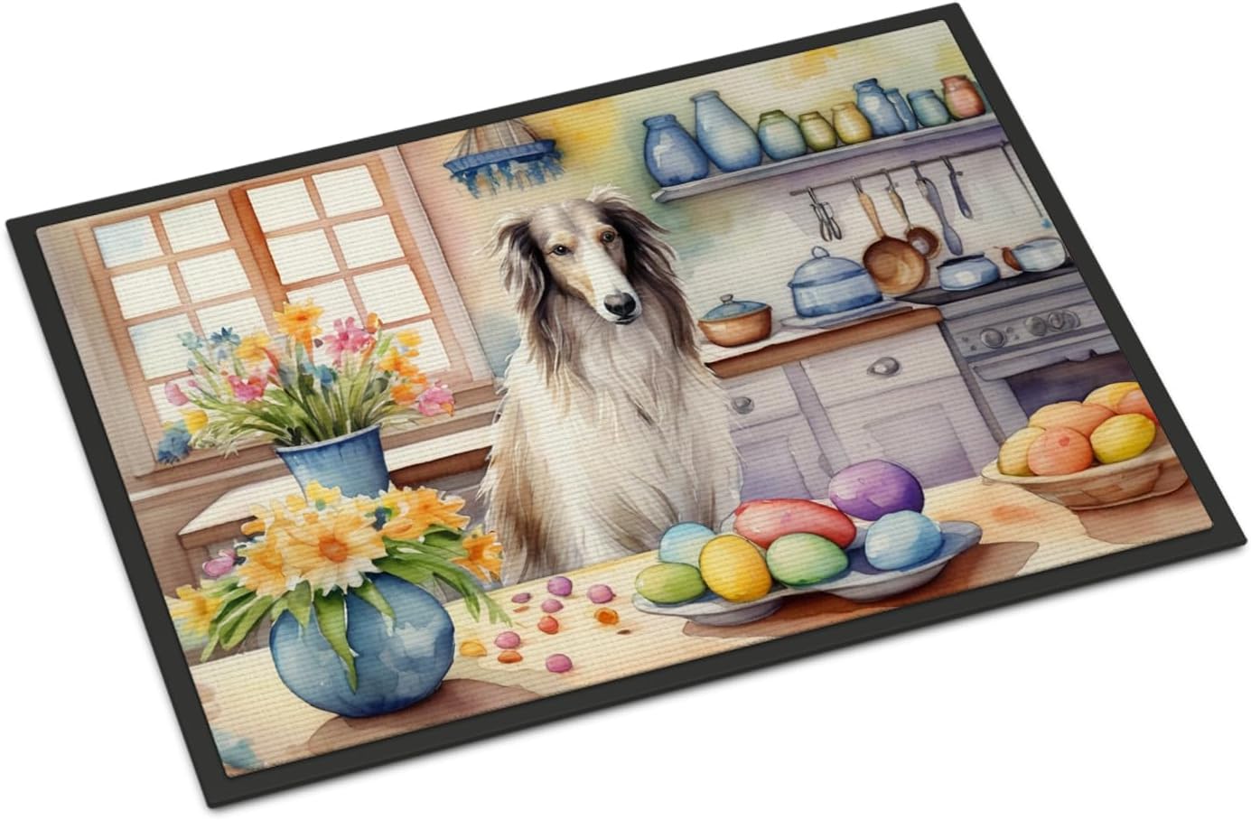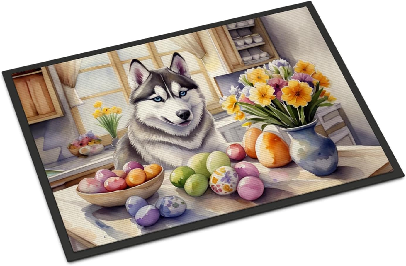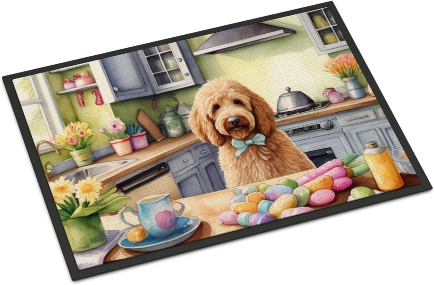 Doormat featuring breed specific Bichon Frise artwork. Celebrate Easter with this Easter Doormat. Welcome your guests in style with our Artwork Door Mat, designed to withstand almost any weather condition. This mat, measuring approximately 24 by 36 inches, is held together by durable black binding tape. Its top layer, composed of polyester felt, is dyed with the eye-catching image you see on the mat. A few layers below provide the mat with stability, while its rubber bottom is stamped to help prevent slipping and ensures safety. Our mat works wonderfully as both an indoor or outdoor door mat. For cleaning, simply hose it off with water or use a power washer - no need for any cleaner that produces suds. Avoid scrubbing with a brush, instead, opt for the vacuum on floor setting. Designed manufactured and printed in the USA, this mat is a perfect addition to your porch, outdoor kitchen, entryway, or any indoor space. Its unique design makes it a charming decorative rug that greets your guests and adds a stylish touch to your home decor.