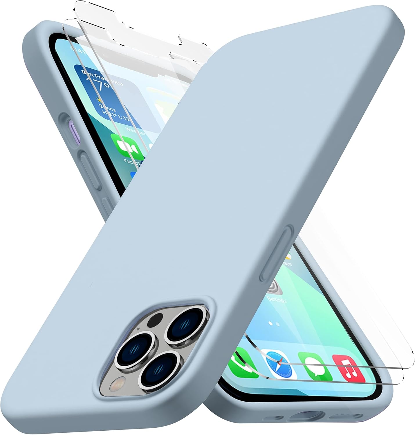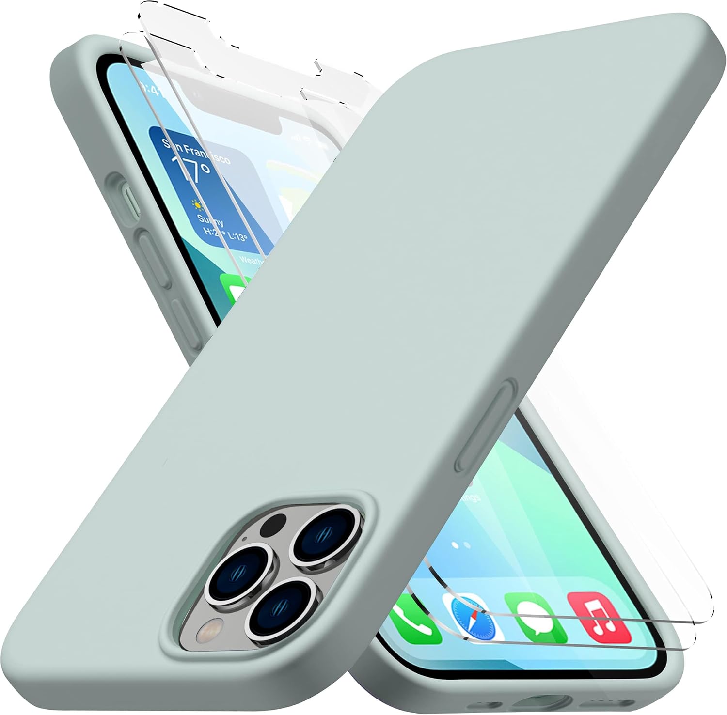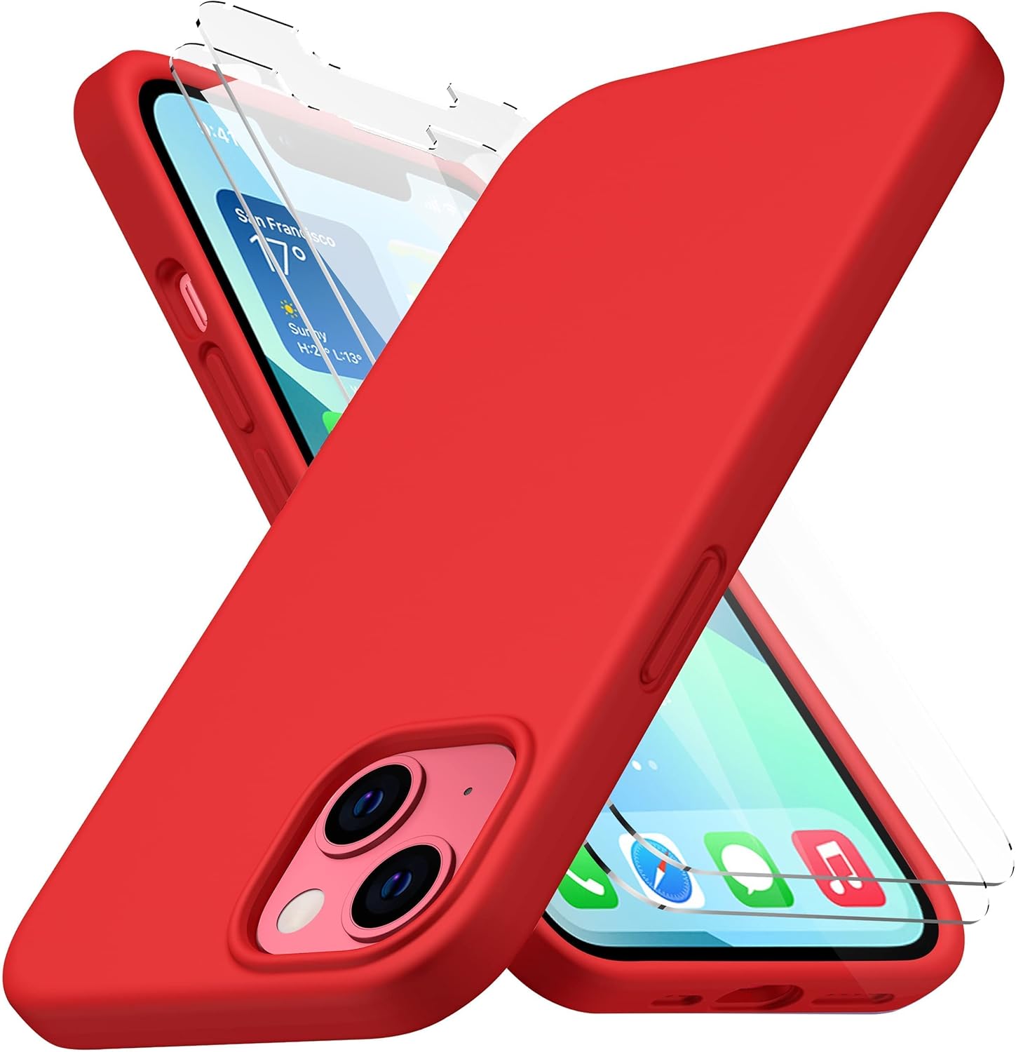 [Complete Protection] This combo pack includes a heavy-duty silicone case and 2 shatterproof glass screen protectors, ensuring all-around protection for your iPhone 13. The case's robust construction safeguards your phone from drops and impacts, while the screen protectors prevent scratches and cracks, offering comprehensive defense against everyday wear and tear.
