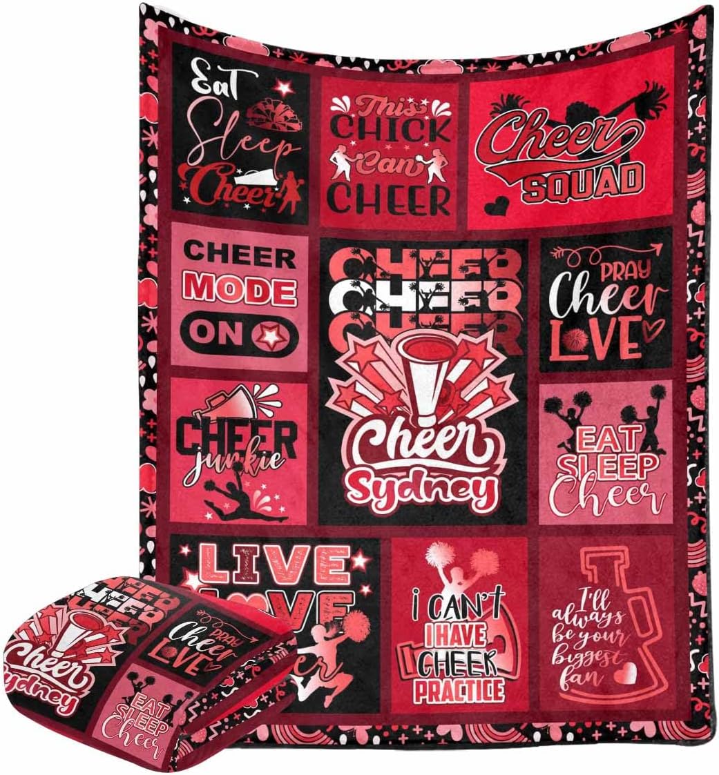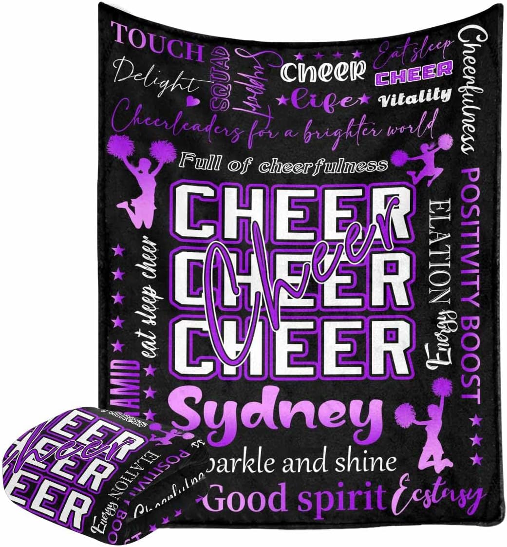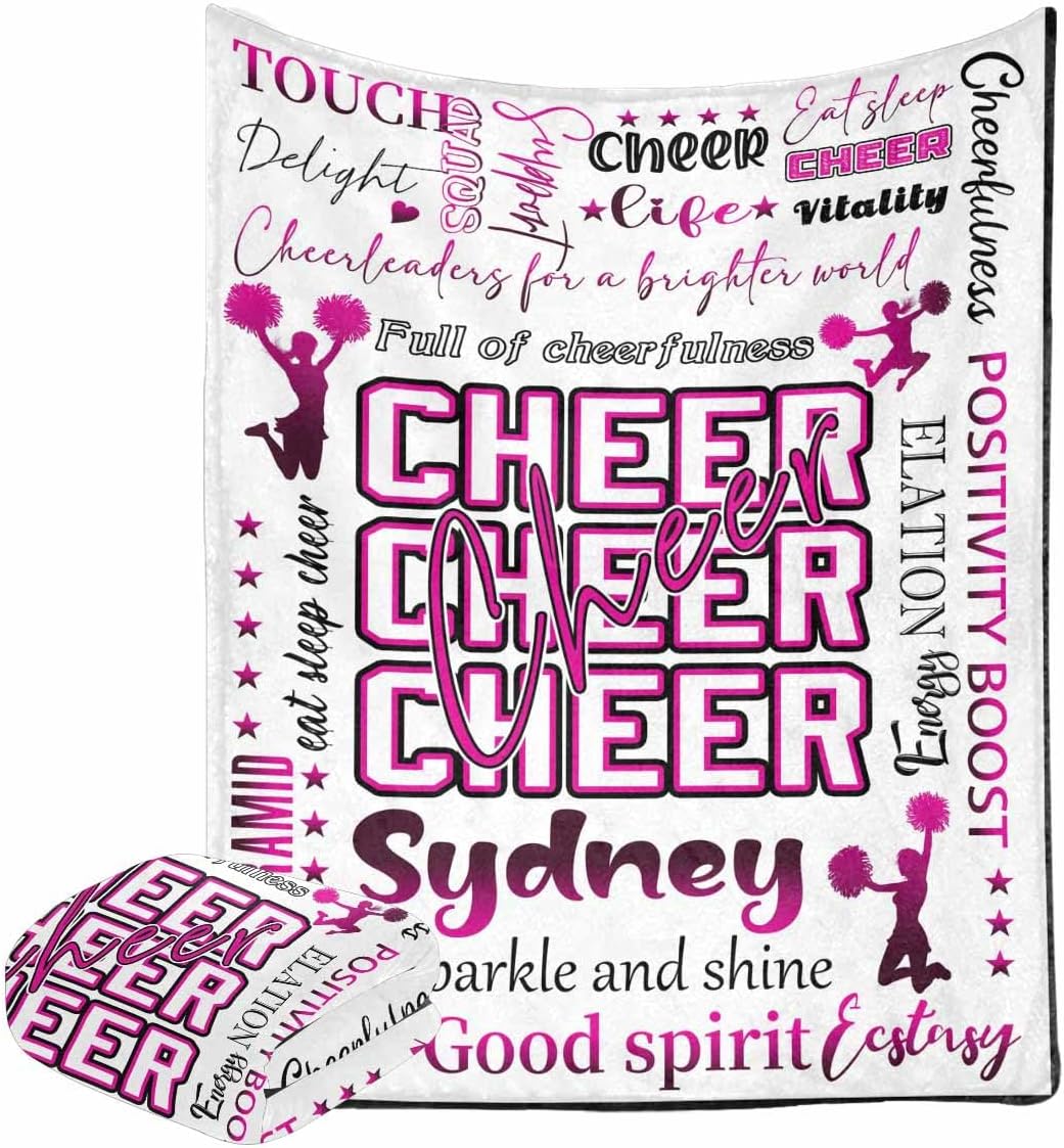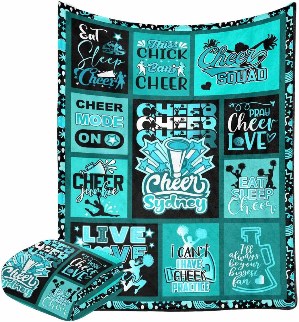 Cheer Personalized Blankets for Kids Adult, Custom Super Soft Fleece Blanket with Name Green Cheerleader Throws Blankets with Text for Men Women Wedding Gifts 40 x 50 inch