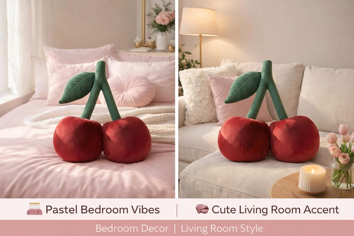 - Elevated 3D Cherry Decorative Pillow – Statement Design With Premium Quality This aesthetic pillow brings elegance, personality, and refined elegance and visual depth to any space. Designed with a bold 3D cherry shape, rich maroon tones, and detailed 3D embroidered leaf with textured stitching for a realistic and refined finish. it serves as both a decorative accent and a functional styling piece that instantly enhances your interior. - Shape-Retaining & Non-Sagging Design Built with a shape-retaining, non-sagging structure, it is designed to hold its rounded cherry form over time without flattening or losing structure — ensuring long-lasting visual appeal and consistent support. Made with soft velvet fabric and filled with high-resilience polyester fiber for support, it maintains its charming look over time. It adds a vibrant touch to cherry decor for bedroom updates or as an accent in cherry office decor. It’s a charming addition to cherry desk decor and blends perfectly with cherry themed accessories to enhance cute room decor and coastal decor for home with ease. - High-Resilience Polyester Fiberfill Generously filled with supportive high-resilience polyester fiber, this fruit shaped pillow maintains its full shape and comfort while preserving its sculpted form for everyday display and lounging. This fruit pillow pairs beautifully with boho throw pillows that enhance relaxed interiors and blend naturally with your existing decor. It works seamlessly within layered boho home decor settings and complements other soft accents, including boho pillows, to create depth and visual harmony. Placed on your sofa, it elevates comfort while styling your space with ease. It integrates smoothly with your everyday seating and pairs well with your current cushions and accessories for a polished look. It matches perfectly with items like pillows for couch in casual arrangements, while also fitting alongside stylish seating pieces such as sofa pillows for living room setups that feel intentional and curated. The design also complements accent pieces that pair with decorative couch throw pillows, helping your lounge area feel complete without overcrowding. - Perfect for Couches, Bedroom Layering & Modern Home Decor Styling It also works beautifully with larger seating arrangements like couches for living room and coastal home decor, enhancing modern interiors while blending with soft textures and layered styling. In the bedroom, it blends naturally with existing decor elements. You can combine it with soft textures such as decorative bed pillows to add dimension, place it beside colorful accents like accent pillows for bed, or style it with comfort-focused pieces such as throw pillows for bed to enhance relaxation. It also blends well with decorative arrangements including bedroom throw pillows and refined finishing touches like bed decorative pillows, creating balance and warmth. For a refined finishing touch, it integrates naturally with throw pillows for bedroom layouts while pairing with charming accents such as cute pillows for bed or fun pillows to elevate your overall cozy home decor aesthetic. - Rich 3D Cherry Design Featuring a bold 3D cherry design with a sculpted stem and dimensional structure, this statement piece instantly elevates any space with depth, character, and personality. - Detailed 3D Embroidered Leaf The beautifully stitched leaf features textured embroidery for a premium realistic finish that stands out from flat printed pillows — highlighting careful detailing and attention to quality. - Statement Accent Piece Perfect as a decorative throw pillow for beds, sofas, chairs, dorm rooms, vanity corners, or aesthetic-themed spaces — it functions as a bold decorative statement wherever it is styled. - Designed to Complement Modern, Coastal & Boho Interiors Its adaptable design works naturally with pillows couch as part of casual styling setups, while also blending seamlessly with pillows for sofa arrangements that enhance comfort and visual balance. It fits beautifully into spaces styled with pillows for bed decor, or even as a single sofa pillow to complete your decor for living room effortlessly. Whether your home leans toward different design aesthetics such as coastal home decor, cozy styled interiors with cozy home decor, refined spaces inspired by midcentury modern decor, or relaxed settings featuring boho decor for living room, this cherry decor integrates smoothly and feels intentionally placed. It also enhances spaces designed around modern living room decor and modern bedroom decor, while complementing broader styling elements like home accessories within home decorations for living room and even farmhouse-inspired spaces such as farmhouse decor bedroom. For layered styling, it works beautifully alongside both large pillows for couch and smaller accent pieces like small pillows decorative, creating depth and a curated look. For a touch of rustic character, it pairs naturally with accent styles such as western throw pillows, blends with traditional elements like western pillows, and enhances themed spaces featuring western living room decor. Wherever it is styled, this statement pillow adds thoughtful detail and personality to your home decorations for living room, working seamlessly with boho couch pillows, decorative accents like decor pillows for couch, and completing arrangements with living room pillows for couch. - Vibrant Color & Sculpted Form Bold cherry tones combined with structured stitching create a polished high-end decorative look that elevates your space while maintaining durability and long-lasting beauty. Wherever you style it, this funny cute cherry pillow adds thoughtful detail to your home decorations for living room, creating a space that feels welcoming, complete, and beautifully balanced. Key Features: 1. Shape-Retaining & Non-Sagging – Designed to hold its rounded cherry form over time without flattening or losing structure. 2. High-Resi