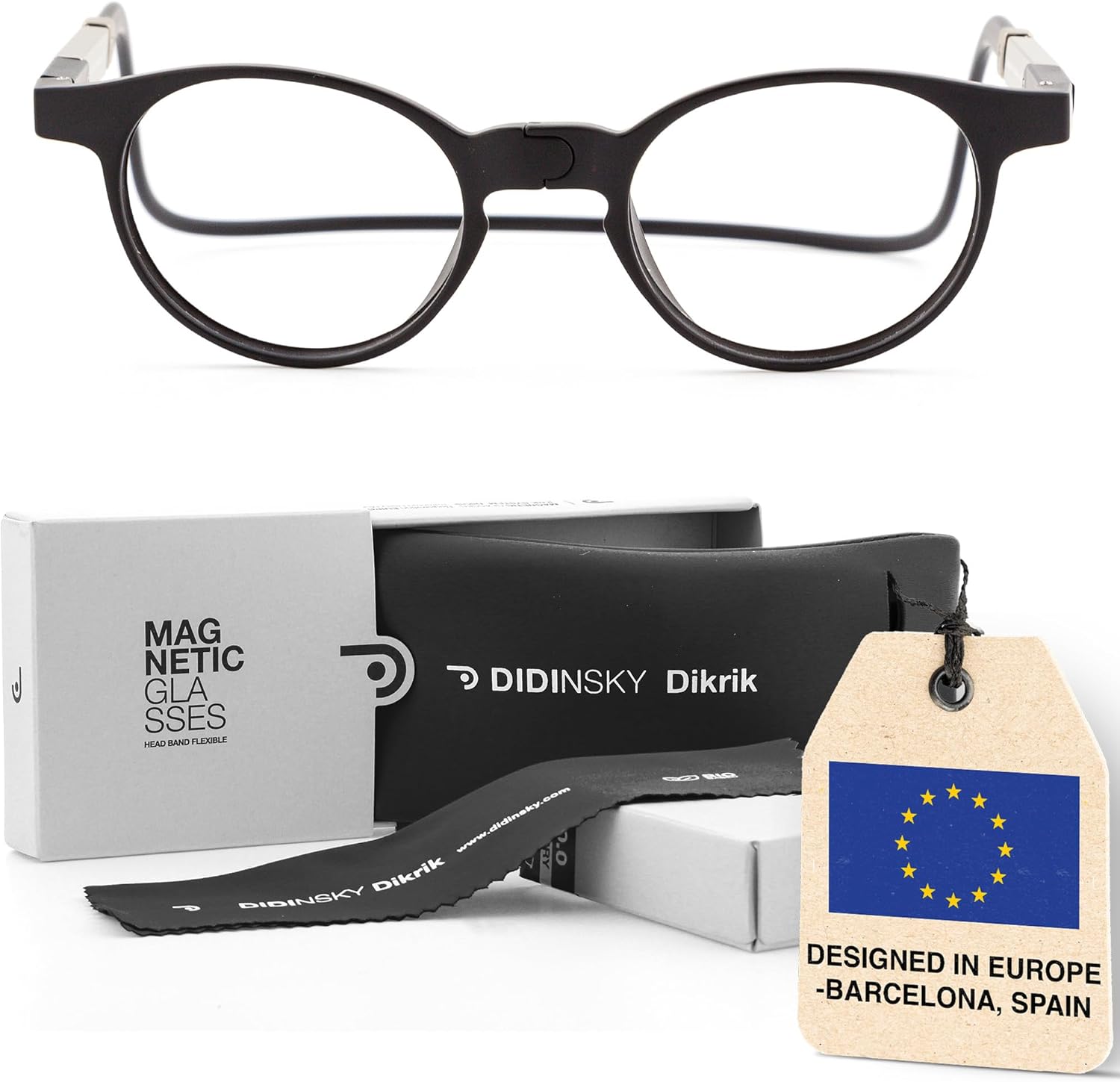 Discover the perfect balance of style, comfort, and functionality with DiKrik Flex magnetic glasses by Didinsky. Designed for those who lead dynamic lives, these eyeglasses for women and men feature a smart magnetic front closure and flexible silicone headband that adapts comfortably to your head shape. Whether you’re at work, on the move, or relaxing at home, DiKrik Flex delivers a secure, anti-slip fit that moves with you, without pressure or discomfort behind the ears. These aren’t your average readers. Magnet glasses like DiKrik Flex offer an intuitive snap-on design that allows for easy on-and-off wear. Thanks to the flexible, lightweight band, they rest gently and securely on your head, making them ideal for extended use throughout the day. The foldable reading glasses design adds to their portability; just snap, fold, and pack them in your pocket, purse, or backpack. Each pair is equipped with high-performance lenses that include anti-blue light, anti-reflective, and anti-scratch filters. This makes them an excellent choice for use as computer reading glasses, helping reduce visual fatigue from digital screens while keeping your vision clear and protected. Whether you need magnetic reading glasses for men and women to boost focus during the workday or for active errands or casual reading, DiKrik Flex is made to meet your everyday needs. They're not just practical—they’re also stylish. Designed by opticians in Barcelona, these colorful frames add a fashionable twist to your daily essentials. More than just magnetic readers for men and women, DiKrik Flex glasses are a thoughtful fusion of utility and design. If you're looking for eyeglasses for men and women that offer both tech and comfort in a compact, travel-friendly format, this is your go-to pair.