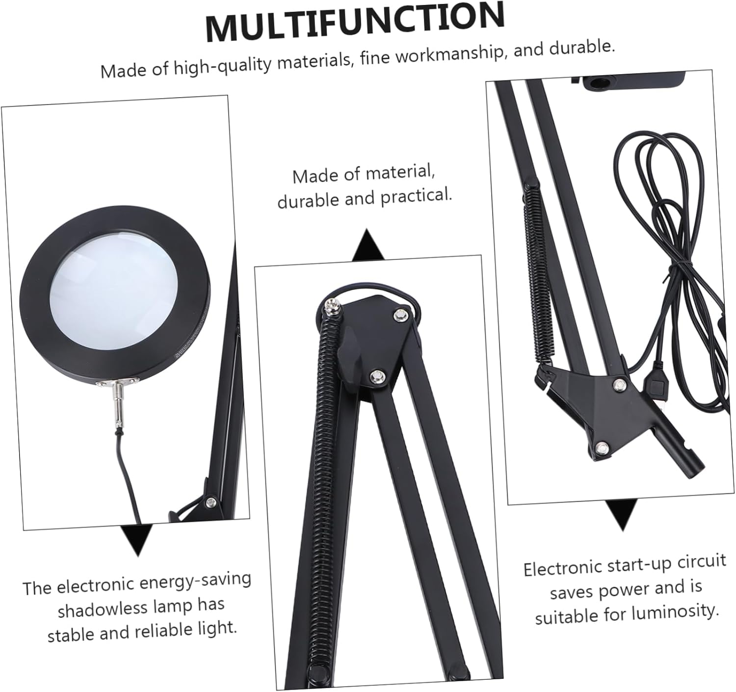 Package List 1 x Lamp Characteristics - Magnifying power: 5X LED magnifying glass desk lamps for office - Dc adapter: 5V 2A magnifying glass for kids - Dimming: smooth dimming;3 color patterns LED desk lamp - LED: 60 patch LED lamp welding light electronic - saving shadowless lamp - Lens diameter: 105mm / 4 Magnifier for Home. - Color: Black Plastic Reading Magnifying. - Size: 75x10.5x5cm./29.53x4.13x1 Magnifying Glass Lens. - Material: Plastic Portable Magnifying Glass. - Suitable for reading work/computer board/ making/crafts enthusiasts/welding repair/skin care and beauty, can be widely used kids desk lamp. - The lamp holder can be adjusted up and down by 220° and rotated by 360°.Telescopic long arm 33cm + 33cm telescopic long arm, adjustable 180°/ 135° Exploring. - The magnifying glass with LED lamp, the color temperature of LED lamp can be adjusted by 3 levels, and the brightness can be adjusted by 11 levels, which can meet all kinds of working environment kids table lamp. - Made of material, and practical Observation Magnifier.Goods InformationExploring LED small size, low power consumption, long life, high brightness, low heat, , .USB desk lamp Electronic start-up power and is suitable for luminosity.Magnifying Glass Lens Suitable for electronic engineering, engineering, printing plate making, collecting stamps, hardware.Plastic Reading Magnifying The electronic -saving shadowless lamp has stable and reliable light, no flickering effect, and has no effect on