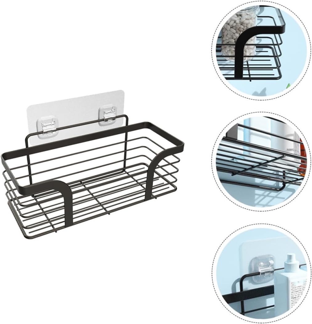Package Include 1 x storage rack Characteristics - Color: Black - Size: 31.00X10.00X12.00cm/12.18X3.93X4.72 in. - Material: Stainless steel -Product Info:Storage rack - Also suitable for kitchen spice rack and seasoning storage like sauces, jars, cooking oils shower storage organizer. - Specially designed for organizing your space. Modern design is compatible with decor of any rooms stainless steel shower shelf. - No drilling design. Easy to use without to the wall. Removable and convenient bathroom shelf. - It is a multipurpose storage rack that helps you say goodbye to messy desktop shower organizer. - as a practical housewarming gift for your friends and family bathroom organizer.Goods Informationbathroom shower shelf This storage rack is made of premium-grade 304 stainless steel, waterproof, rustproof, non-fading, scratch-resistant and .bathroom wall organizer Strong adhesive ensures the bath shelf stable, can support the shelf and heavy things on the rack.stainless steel shower shelf The open hollow design allows the water on the contents to dry quickly, making it easy to keep the bath products clean and dry