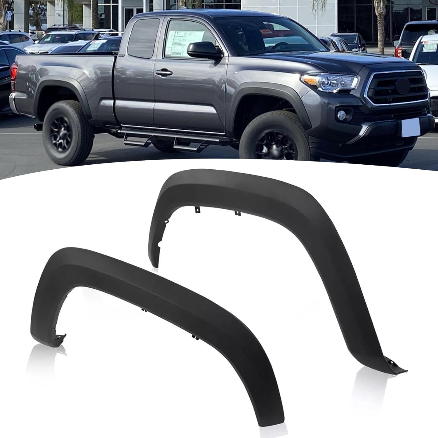 HAPSO specializes in the production of auto parts, and its products are suitable for a variety of models. We have a professional production and warehousing team that can provide reliable replacement solutions for your damaged or aging original parts. Affordable Product, Superior Aftermarket, We Will Be The Best Choice To Replacement Your Auto Parts! Features: Using a special injection molding process, resulting in excellent mechanical properties, including high durability, good toughness, and outstanding impact strength Its resistance to cracking, distortion, and powdering ensures long-term stability in complex operating environments Installed using bolted mounting, requiring only a minimal amount of drilling to achieve precise fitment with the vehicle, without any additional modifications to the truck body Specifications: Brand: HAPSO Materials: ABS Colour: Black OE/OEM Part Number: 7587304090, 7587404090, 7587404900, 7587304900, 7587104060, 7587204060 Interchange Part Number: TO1790111, TO1791111, TO1291109, TO1290109 Package Include: 4 x Wheel Fender Flares(Front & Rear Side) Fitment: Fit For 2016-2023 Toyota Tacoma Pickup 4-Door About US: We are committed to providing you with an excellent shopping experience and ensuring your satisfaction with every purchase. If you have any questions before or after your purchase, please feel free to contact us. Our service team is always here to assist you. Thank you for your purchase and support!