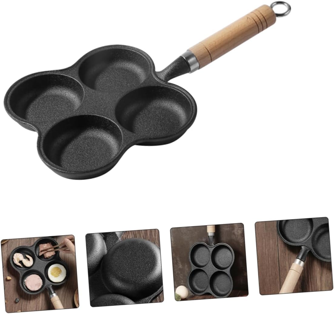 Package Include 1 x Frying Pan Features -Material: Iron & Wood Non-stick Omelette Pot -Color: Black Pancake Pot -Size: Approx. 36 x 18.8 x 2.3 cm / 14.15 x 7.39 x 0.90 inch Fried Egg Pan - Cooking is quicker and easier, requiring only a few simple steps. Iron Frying Pan - 4-hole compartments for easy use, practical for kitchen use Kitchen Accessory. - Anti-hot wood handle, safe and practical for using Non-stick Frying Pan. - You can to frying 4 eggs or burger and the like at the same time Cooking Pot. - Light weight and compact size, easy to carry and store Four-hole Egg Pan.Goods DescriptionBreakfast Skillet Pan It is simple , but very practical in use, which brings great convenience to you.Cooking Pot With it, your breakfast will be easier and quicker.Egg Frying Pan This item is household frying pan, featuring 4 holes design, which can make delicious dishes such as fried eggs, fried steak, pancake, Bacon and so on