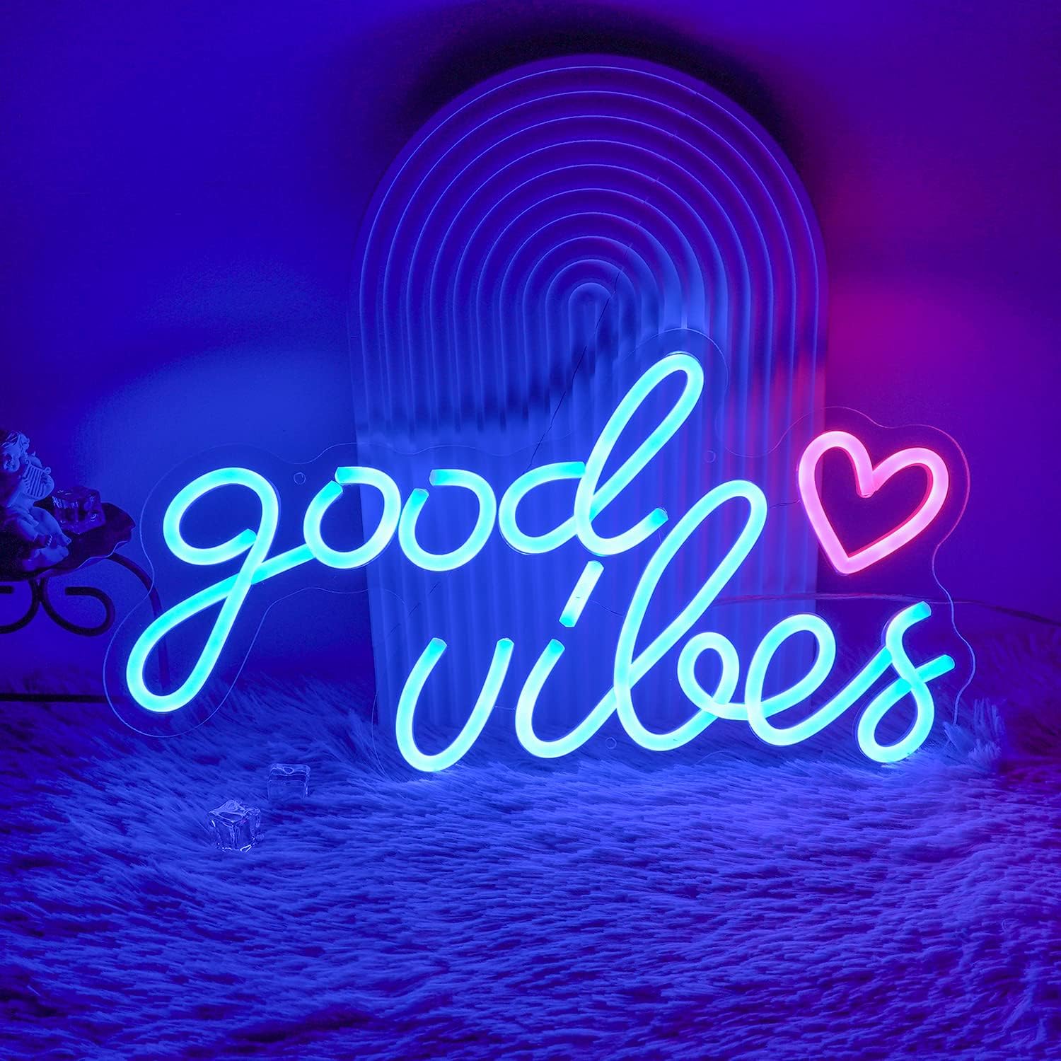 This good vibes neon sign use LED neon strip, a brilliant neon lights show across your home or garden. . Bring the fun and excitement of neon light with 3D art will increase the atmosphere of your bedroom and living room. Add romantic for the man cave, beer bar, pub, restaurant, recreation game room. An ideal eye-catching to your aesthetic room decor make your simple life more colorful and interesting