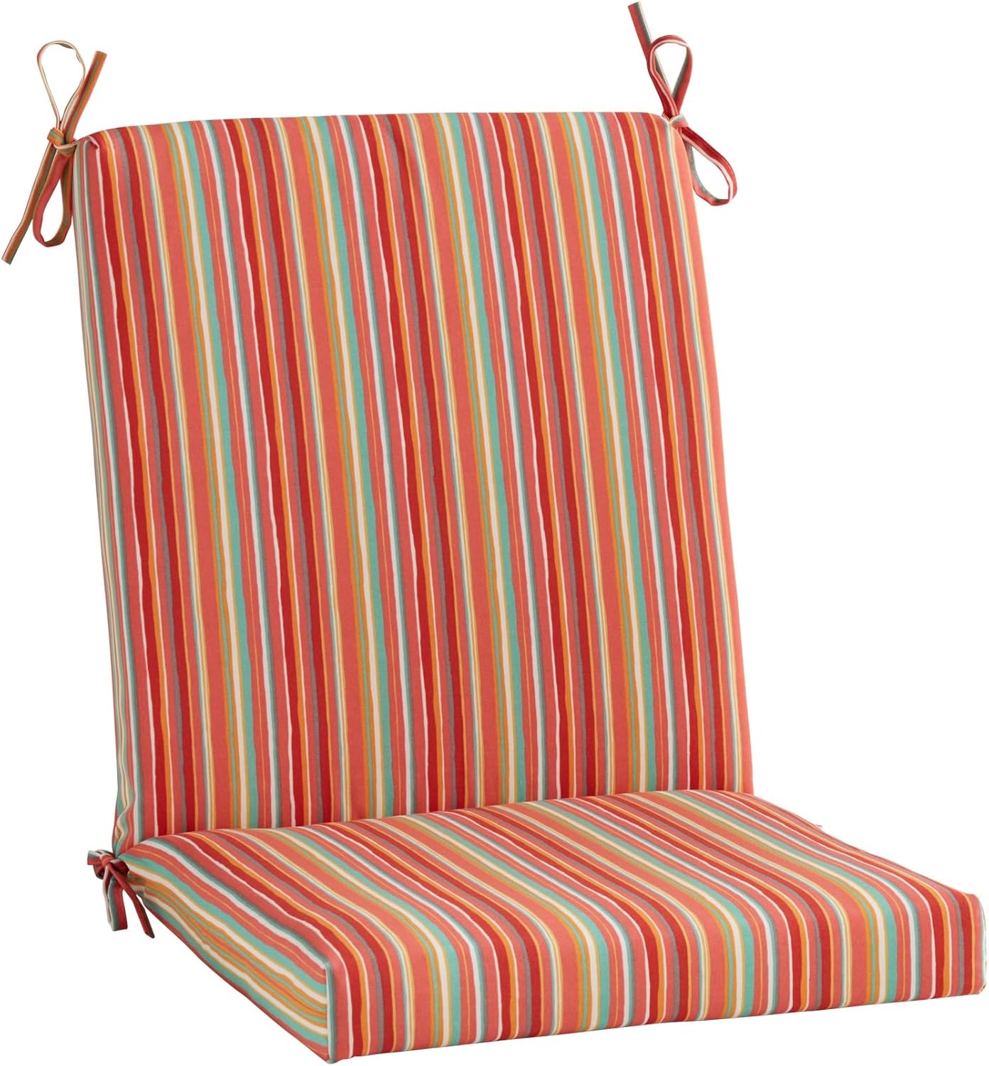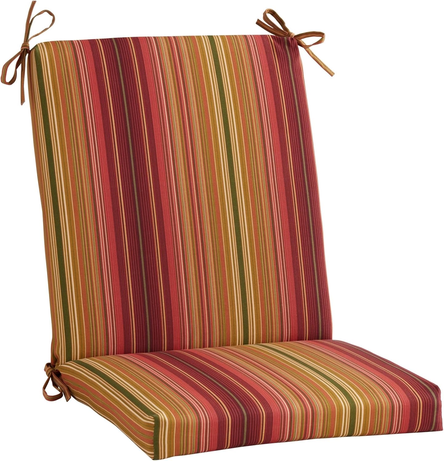 Add style and comfort to your outdoor dining experience with this High Back Chair Pad from Greendale Home Fashions. Cushions feature a smooth, single hinge design for a modern look, and both the seat and back sections feature a soft, recycled polyfiber batting insert. Our durable outdoor polyester fabric resists fading, repels water, stains and spills, and is available in a wide variety of colors and patterns. 4-sets of string ties help keep cushions securely attached to your patio furniture. Use with other Greendale cushions and pillows for a coordinated look. To prolong the life of our cushions and keep them looking beautiful, we recommend storing them covered when not in use.Please be sure to measure your furniture before purchasing this cushion to ensure a proper fit. A dimensional diagram is provided in the image section for your convenience.In an effort to reduce waste, your cushions will arrive in a recyclable box with no additional plastic waste.