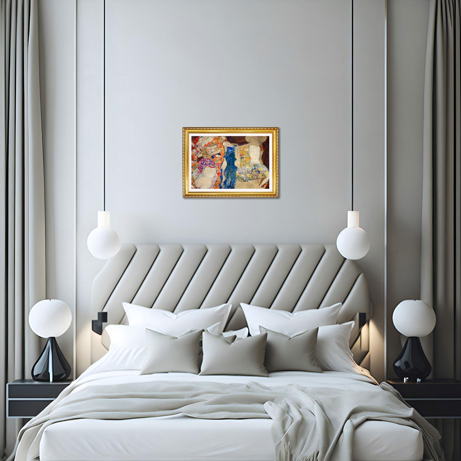 These framed print art featuring Gustav Klimt's creations are popular among wall art enthusiasts, collectors, and anyone who appreciates surrealism and artistic creativity. They offer a unique way to bring Klimt's captivating and thought-provoking imagery into bedroom livingroom office , sparking conversations and adding a touch of surreal beauty to the environment.