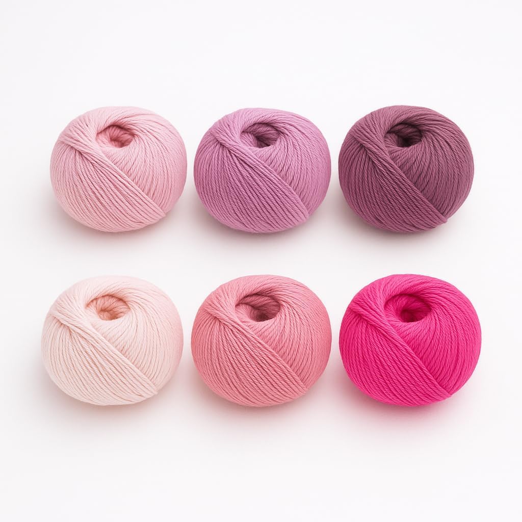 ✨ Harmony Cotton by Yarneverse — Soft, Safe & Beautifully Balanced Color Palettes Designed for makers who value softness, durability and perfect color coordination, Harmony Cotton is a premium Fine weight (#2) yarn made from a gentle 60% cotton / 40% acrylic blend. Its breathable, smooth texture makes it ideal for baby projects, amigurumi, accessories, granny squares and everyday wearables. Each pack includes 6 curated colors, carefully selected to complement each other and bring harmony to every multi-color design. ✔ What’s Inside the 6-Pack? 6 × 50g balls (165m each) Total: 300g / 990m Soft cotton-acrylic blend Beautifully balanced color collection Fine weight for smooth, lightweight projects ✔ Perfect For: ✔ Amigurumi ✔ Baby clothing & accessories ✔ Lightweight garments ✔ Floral motifs & granny squares ✔ Home décor pieces ✔ Hats, scarves & bags ✔ Fiber & Gauge Details Material: 60% Cotton, 40% Acrylic Weight: Fine (2) Crochet Hook: 2.0–3.0 mm (B/1–D/3) Knitting Needles: 3.0–4.0 mm (US 3–6) Care: Machine wash 40°C, dry flat ✔ Available Color Collections Pastel Collection Baby Doll Collection Cozy Beige Collection Wildlife Colors Collection Green Spectrum Collection Blush & Berry Collection Blue Spectrum Collection Unicorn Collection Natural Autumn Collection Floral Dream Collection Pure White Collection Find the perfect palette for your next project.