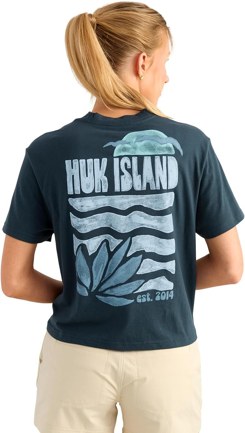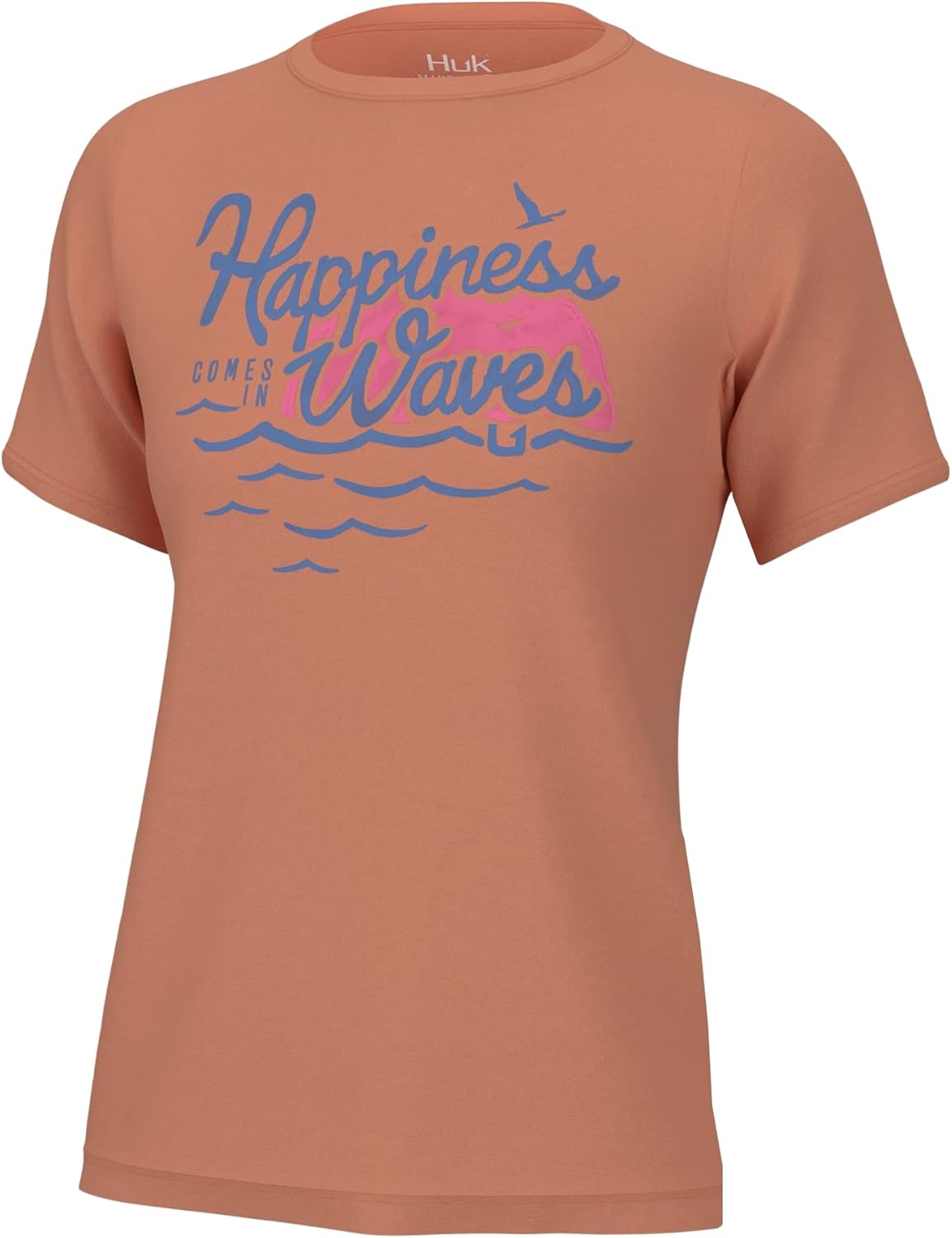 HUK WOMENS GRAPHIC TEE: Made from a premium blend of materials that provide a soft feel against the skin, ensuring comfort during long days on the water or casual outings