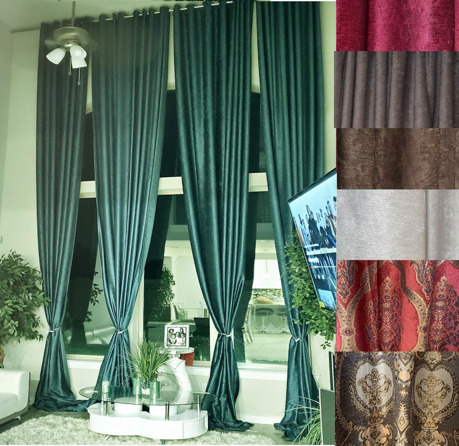 This listing is for 1 VELVET/CHENILLE drape. If you need a pair of curtains , you have to buy 2 of them. Curtains do not come with linings, but they block 65% sunlight. The curtains come with grommet top. PLEASE REQUEST FREE SWATCHES BEFORE ORDERING THE CURTAINS BECAUSE THIS ITEM WILL BE CUSTOM MADE WHEN ORDERED AND WE APPLY 20% RESTOCKING FEE UNLESS THERE ARE ERRORS ON OUR PART. The digital images we display have the most accurate color possible. However, due to differences in computer monitors, it can be different shade of color between the actual product and your screen , this is why we recommend to see free swatches first.
