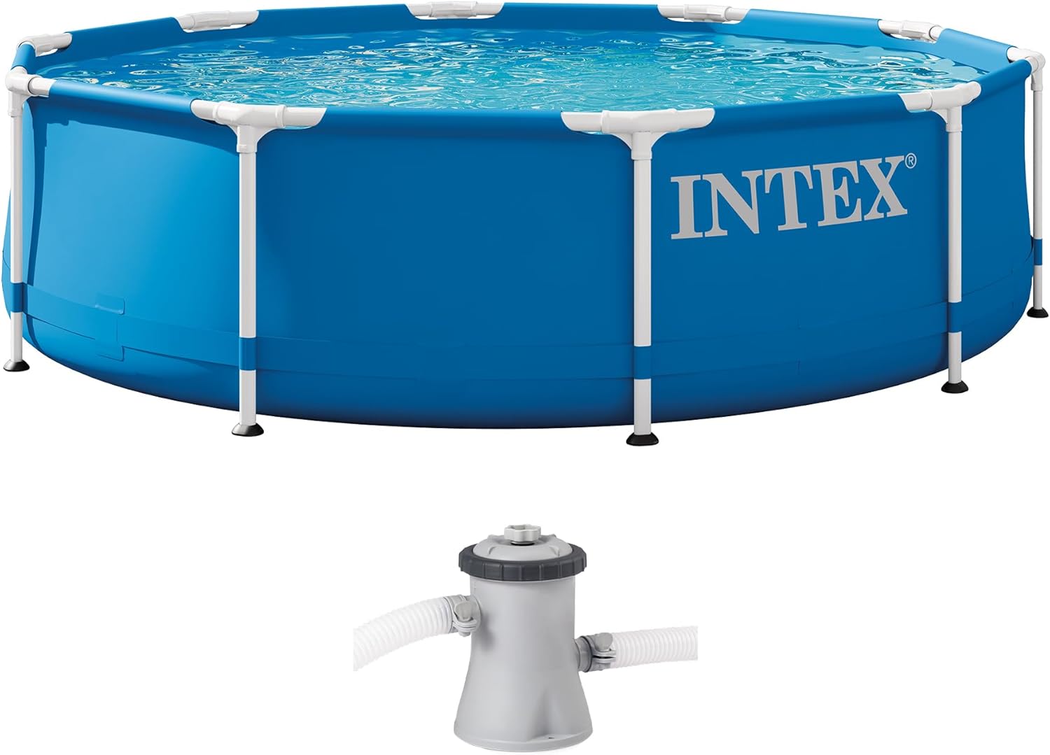 Beat the heat and make a splash in the Intex Round Metal Frame Above-Ground Swimming Pool Set. Measuring 15 feet in diameter and 48 inches tall, this above-ground pool is great for having friends and family over to cool off. With an easy assembly process, maintaining this backyard pool is a breeze as it fits perfectly on a flat surface in your backyard. Made of strong PVC materials for increased durability, this pool is resistant to damage, abrasion, impact, and sunlight. The metal frame is powder-coated, while the filter pump is equipped with a safety feature that shuts off the pump if the current is exposed. Including an Intex 1,000 GPH filter pump, filter cartridge, pool ladder, ground cloth, debris cover, and Hydro Aeration Technology filter pump that provides improved circulation, filtration, and improved water clarity, you'll have everything you need for a perfect outdoor day. Your backyard will be the hot spot on the block with the 15-Foot by 48-Inch Above-Ground Pool Set from Intex summer after summer. Disclaimer: Please review your HOA rules and restrictions before purchasing this product. Not all housing agencies permit private above-ground pools.