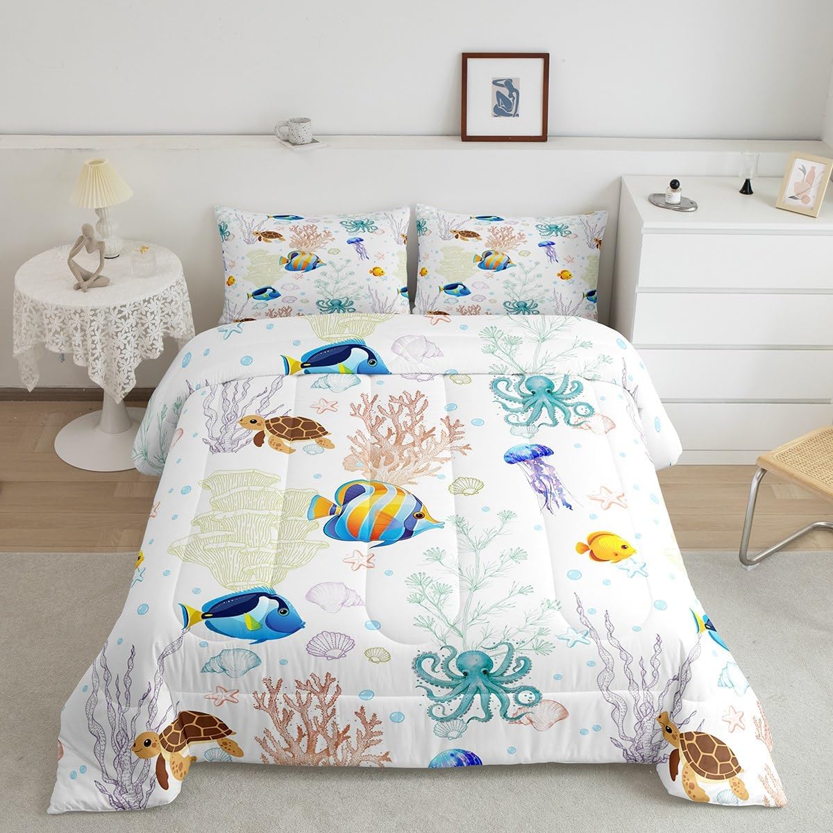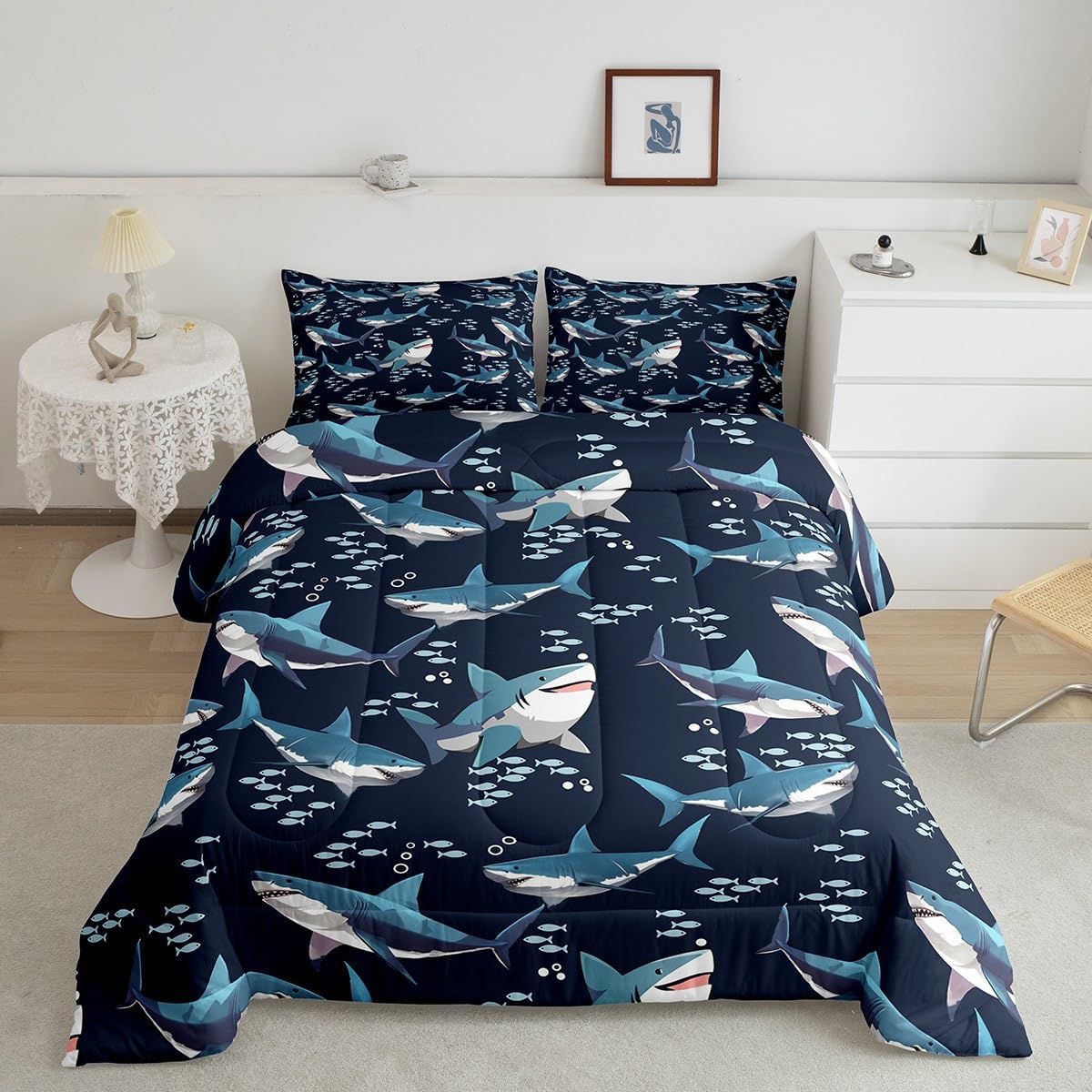 There are more options with various styles of comforter set waiting for youSize Information:1 Toddler size comforter 42" X 58" and 1 pillow sham 30" X 20".1 Twin size comforter 68" X 90" and 1 pillow sham 30" X 20".1 Full size comforter 79" X 91" and 2 pillow sham 30" X 20".1 Queen size comforter 90" X 90" and 2 pillow shams 30" X 20"1 King size comforter 104" X 90" and 2 pillow shams 36" X 20"UsefulMakeover your bedrooms all season with our comforter sets; good item for your room, girls boys youth room, master bedroom. Practical to use for being polyester which is ultra soft and breathableUnique design:Vivid colors with digital printing; these unique designs match well with various color palettes of your rugs, curtains, headboard, furniture, and all other decor accessoriesPersonalized:As manufacturers of digital printed home textiles, we follow current trends and bring you new home fashionBest blessings to your family or friend, relative or boyfriend girlfriend, or to yourself, the item should be interesting and authenticNote:The Comforter and pillow shams are printed on the front side only, the back of them are white colored