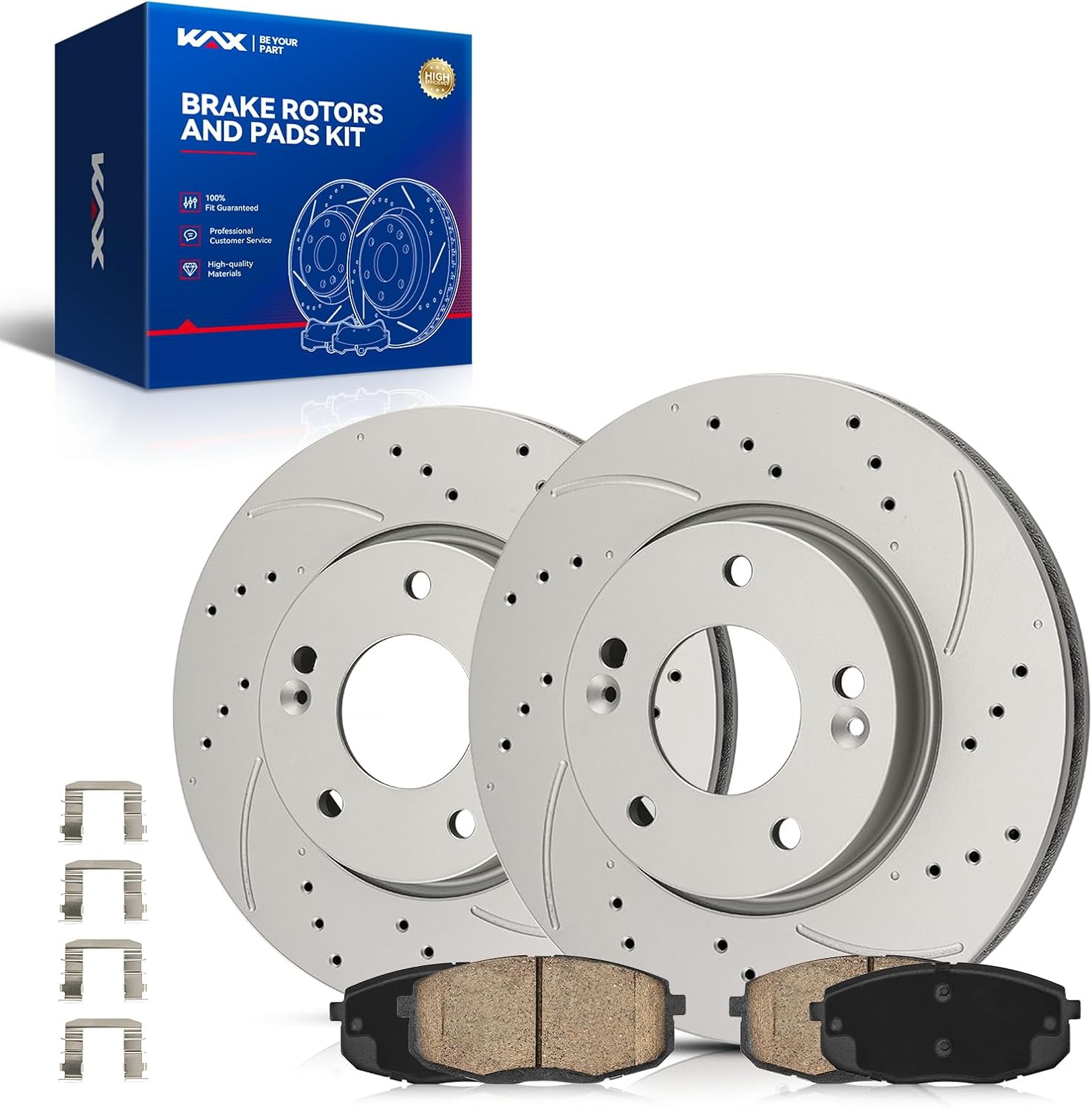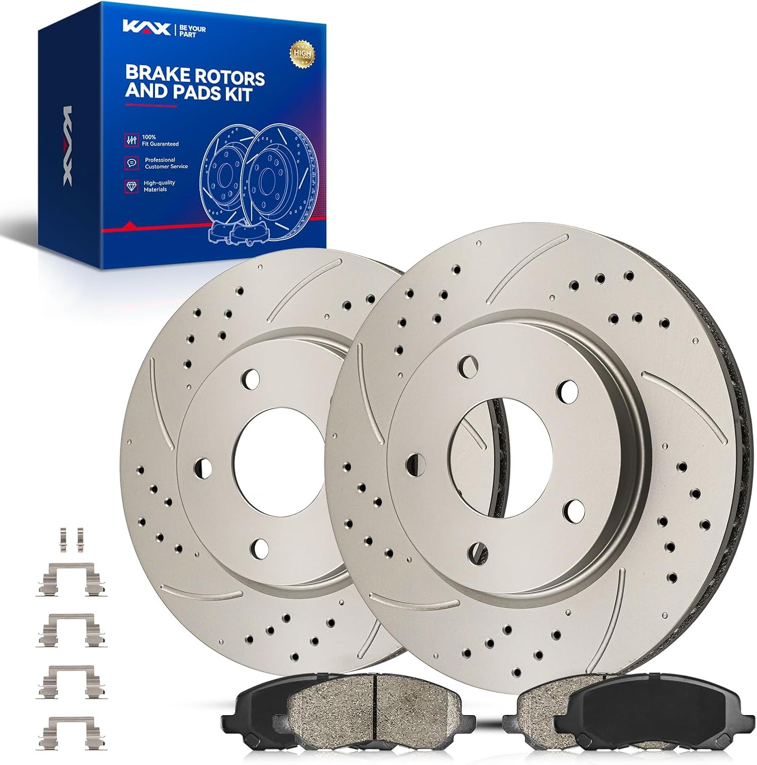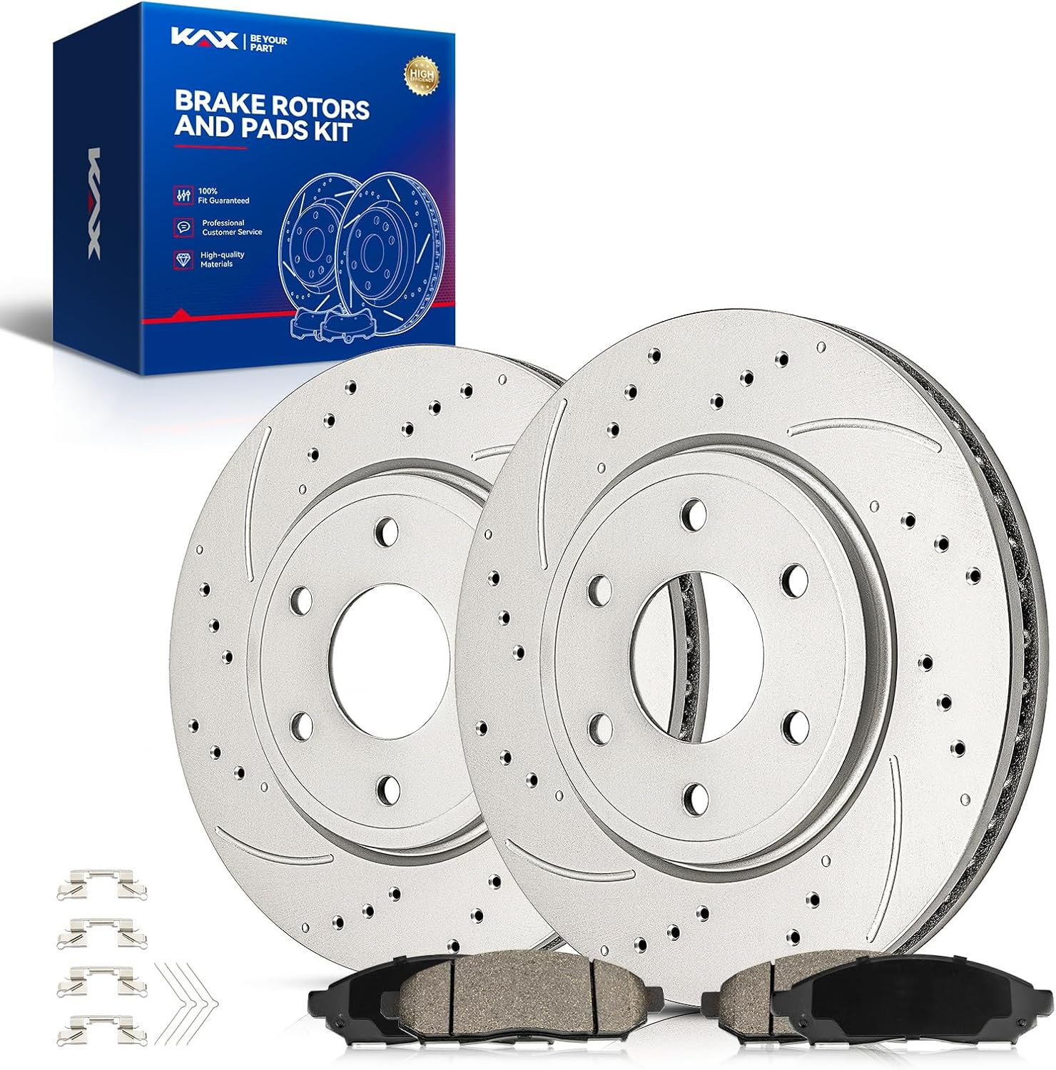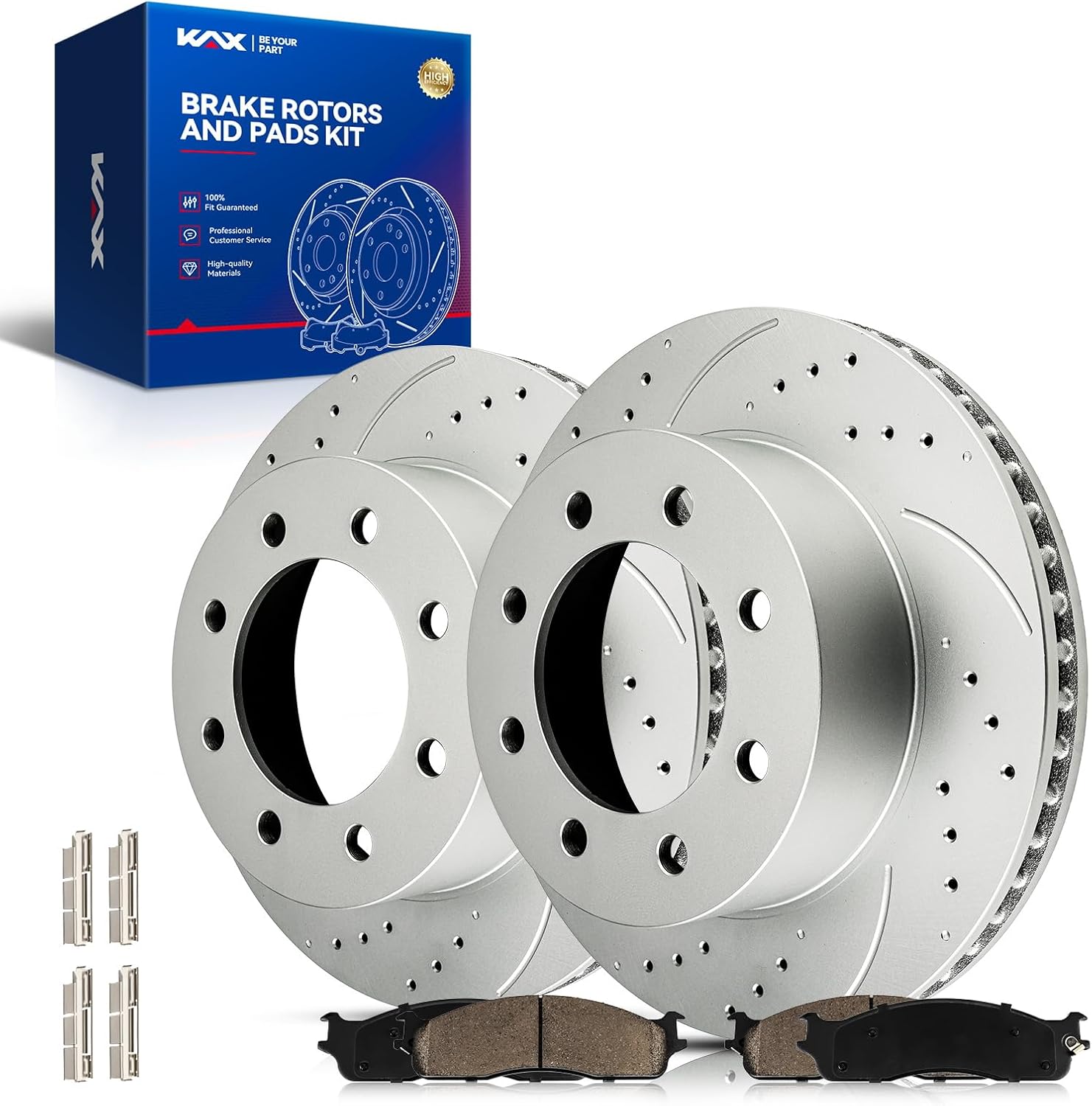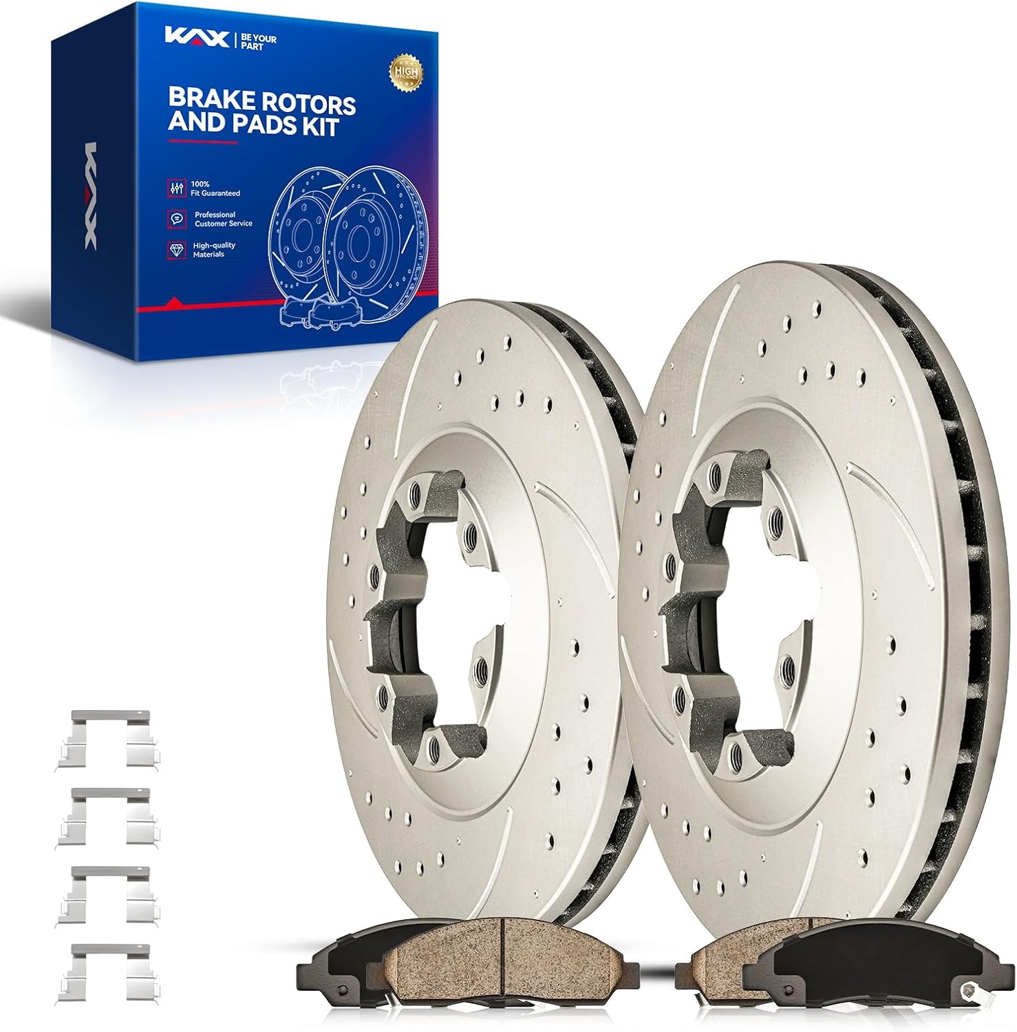 | Included Components | 2pcs front drilled and slotted brake rotors + 4pcs front ceramic pads, Comes with housing |