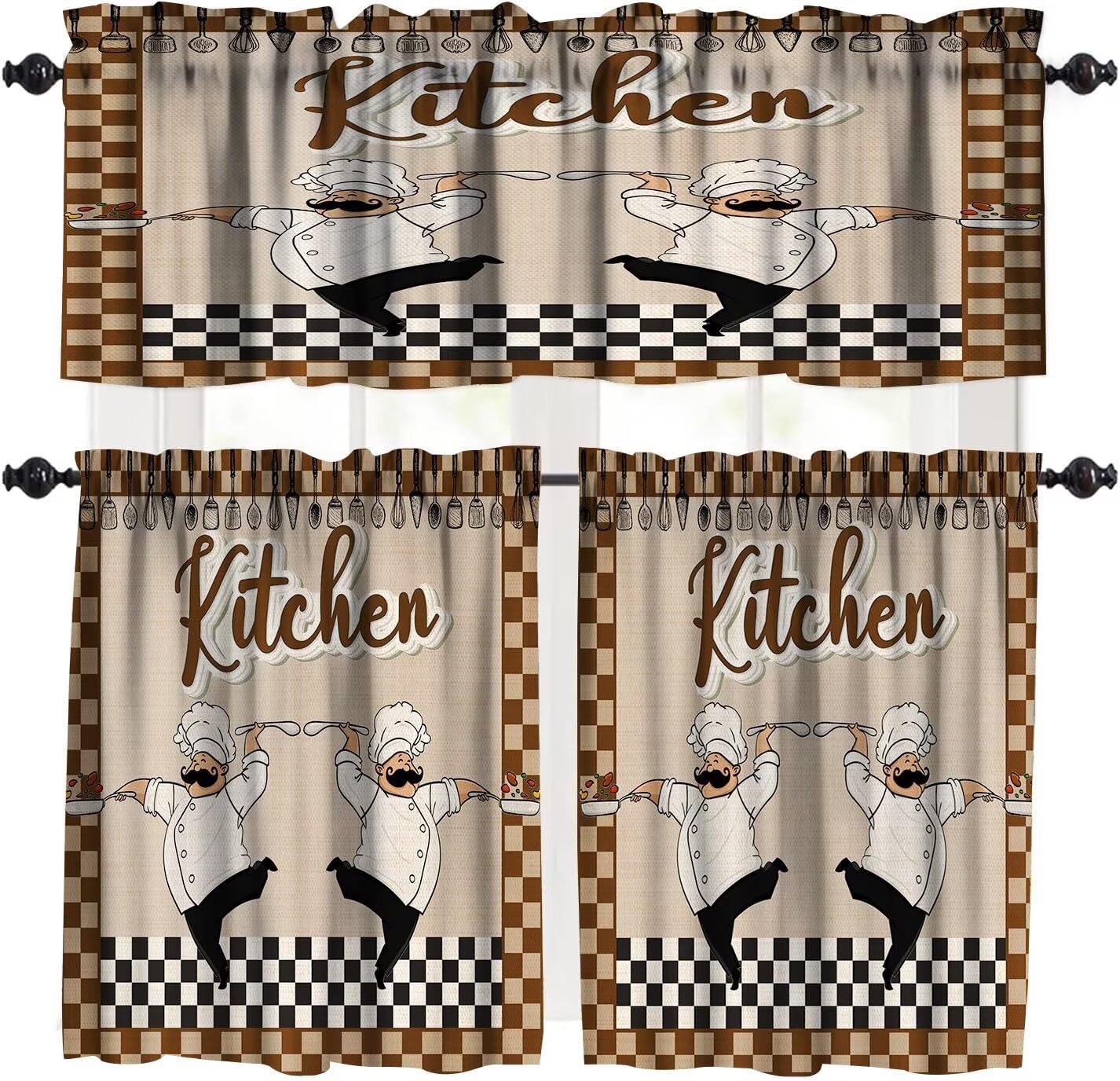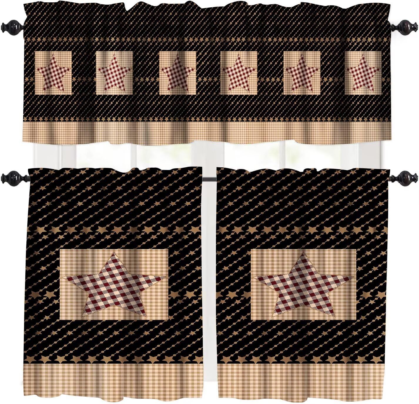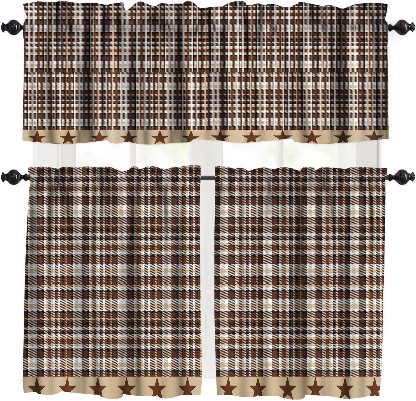 The package includes 3 window curtain valances,Measures: 54"W x 18"L+ 27"W x 24"Lx2 Classic pattern printing design works well with many decorating styles like French country style, modern farmhouse style etc.gives a casual vibe to the room and make the windows look more finished.It also has the performance of room shading, energy saving and privacy protection. NOTICE:All dimensions are measured manually, and the deviation is 1-2 cm. Due to the display differences of computer monitors, there may be slight color changes between the actual product and the screen.
