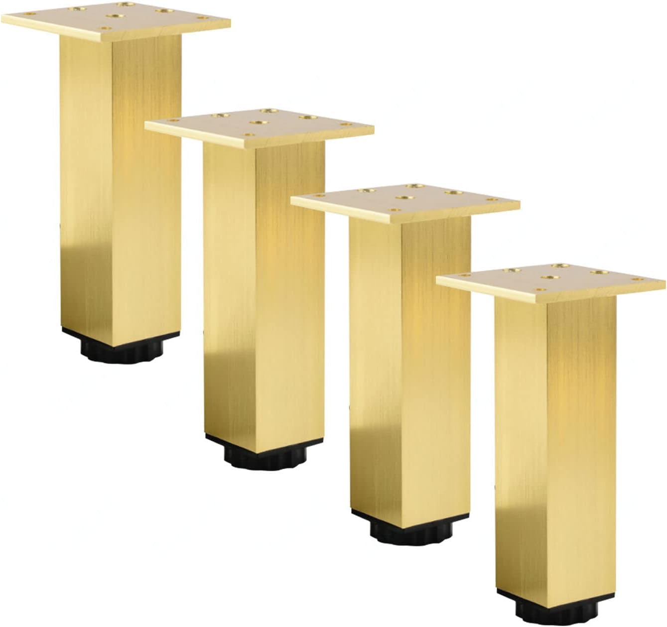 Thickened aluminum alloy material, strong bearing capacity, not easy to deformation, not easy to break, safe, surface anodic oxidation treatment, not easy to rust, not easy to fade, sturdy and durable, can be used for a long time.♦Internal reinforced design increases its pressure resistance; thickened screw, so that it is in close contact with furniture, more solid and durable installation.♦Neat edge, thickened screw, multi-hole position fixing, close contact with furniture, more solid and durable installation.Product parameters. Product name: furniture legs Material: aluminum alloy Color: black / gold / silver Load: 300kg Package: 4×furniture legs (with screws) Application: kitchen, sofa, TV cabinet, table, coffee table, cabinetProduct advantages.Thickened aluminum alloy, strong load-bearing capacity, not easy to deformation, safety.Multi-step processing,smooth and burr-free.Internal reinforced design, thickened screws, multi-hole fixing, more solid installation.non-slip base, care for the floor while also reducing noise.height adjustable: 0-15mm.Cautions.♦Please choose the correct height according to your needs.♦The products are manually measured, there may be deviations, please prevail in kind.♦If you have any questions or concerns about our products at any time, please contact us via email, we will make every effort to provide you with the best solution within 24 hours.