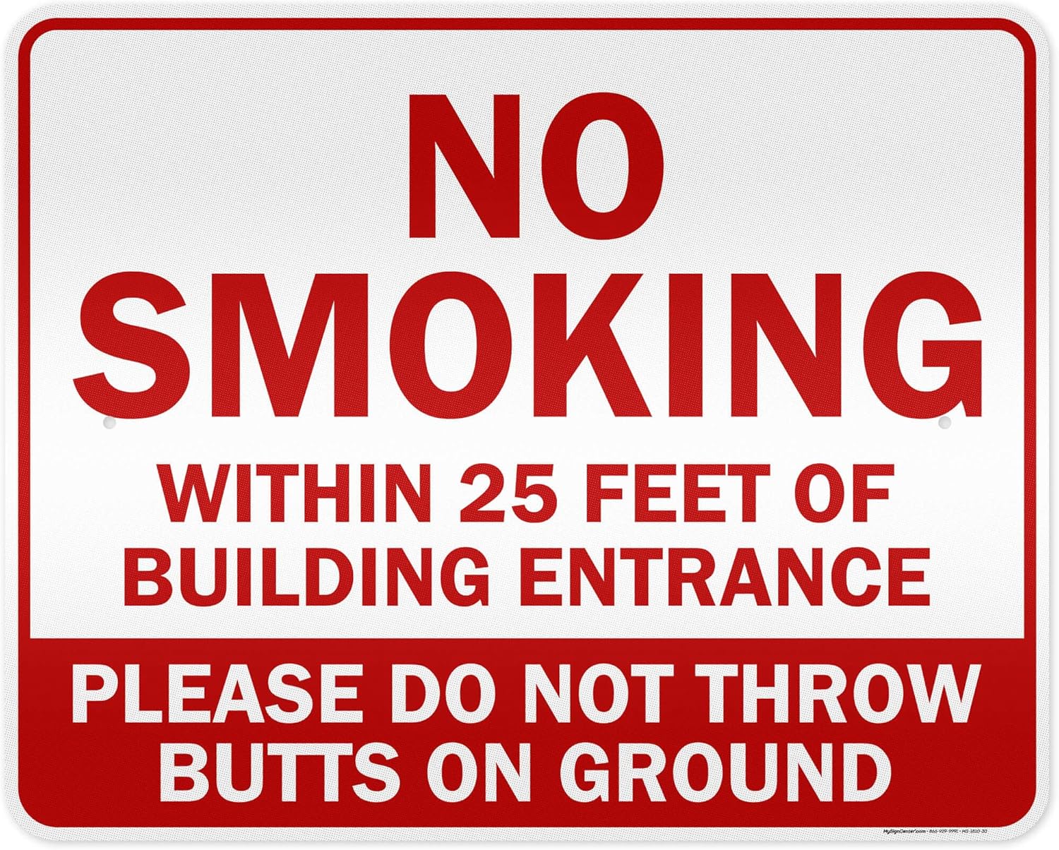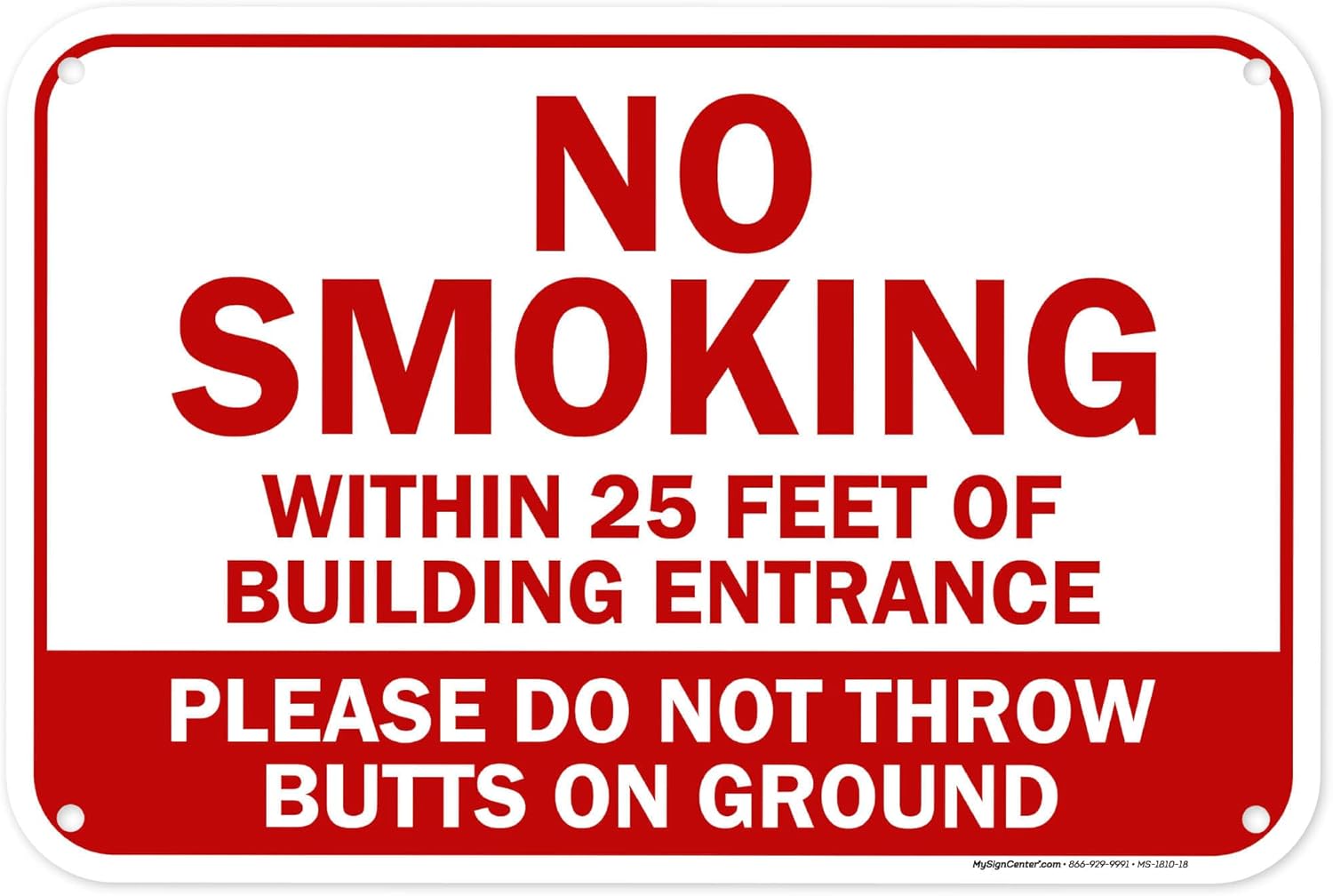 No Smoking Within 25 Feet of Building Entrance Please Do Not Throw Butts On Ground Sign, 18x24 Inches, 55 mil thick HDPE (high density polyethylene), Made in USA by My Sign Center