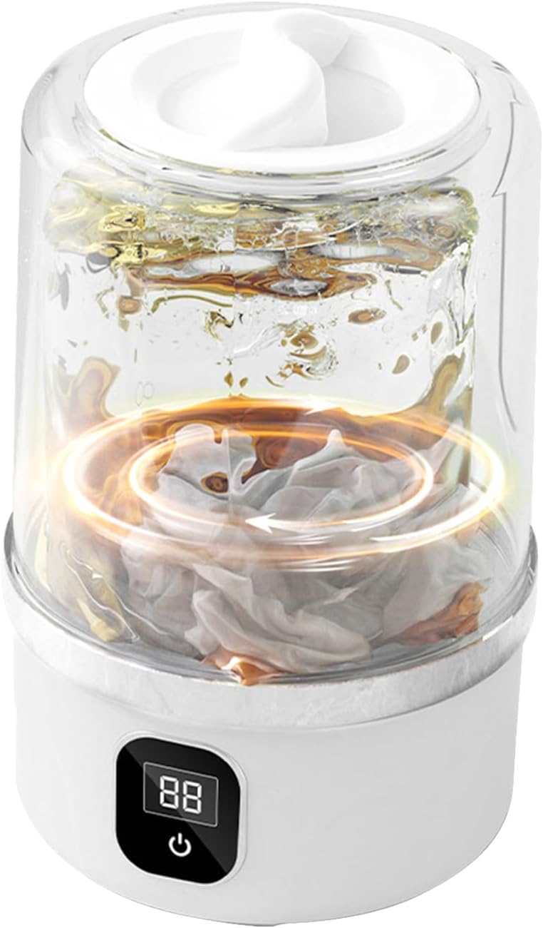 A cordless and rechargeable, portable mini washing machine, equipped with a 3000mAh high-capacity battery, delivers deep cleaning performance. Designed for , socks, baby clothes, and towels, its compact, silent operating suits travel, camping, dorms, RVs, apartments, and hotels, ensuring dependable cleaning outdoors.Specifications:Name: Portable Mini Washing MachineBattery capacity: 3000mAhShells Material: ABS+PPProduct capacity: about 1LProduct size: about 12.5x12.5x20cm/4.92x4.92x7.87 inchesCleaning mode:Gentle mode: 5 minutes (repeatedly rub to remove dirt)Strong mode: 10 minutes (deep rub to remove stubborn dirt)Packing List:1* Underwear Washing MachineNote:Due to different lighting and screen settings, the item color may be slightly different from the picture.Due to different manual measurements, please allow a 1-2cm difference in size.