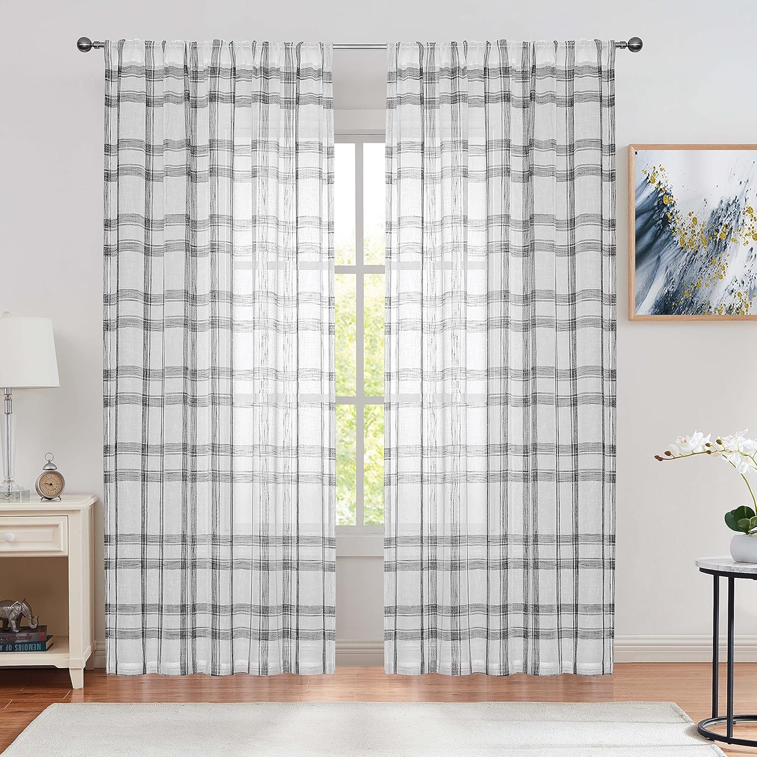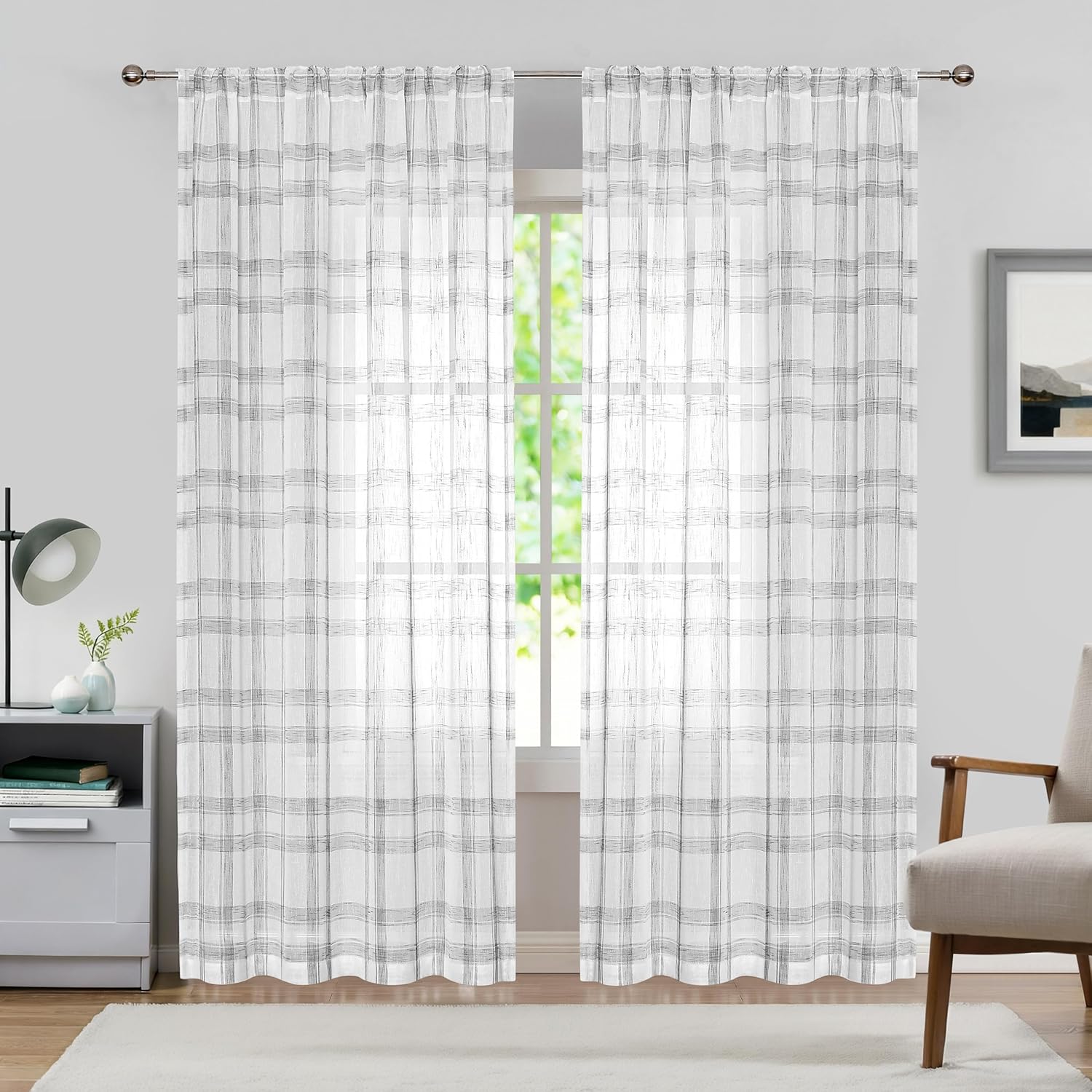| Fabric Type | Geometric Check Linen Semi Sheer Fabric 180gsm |