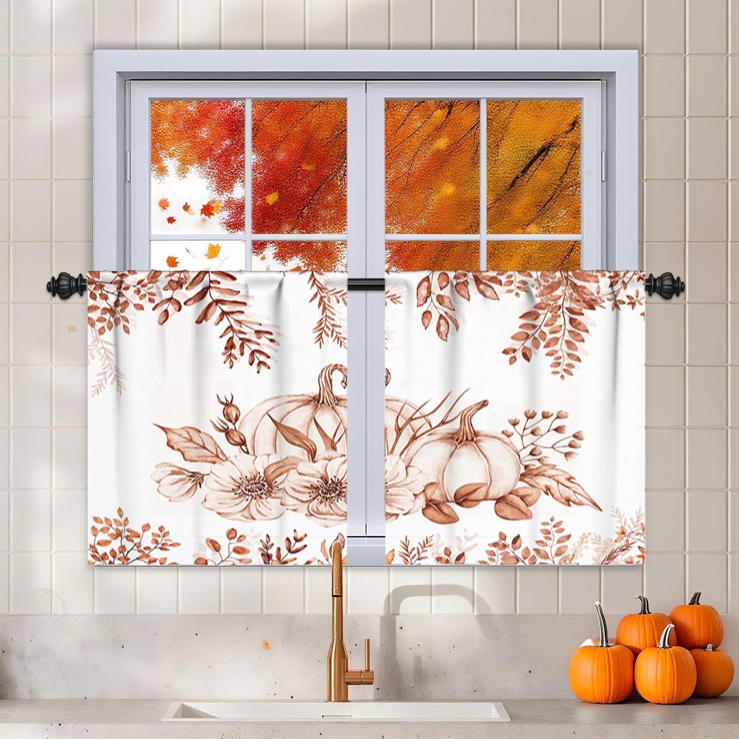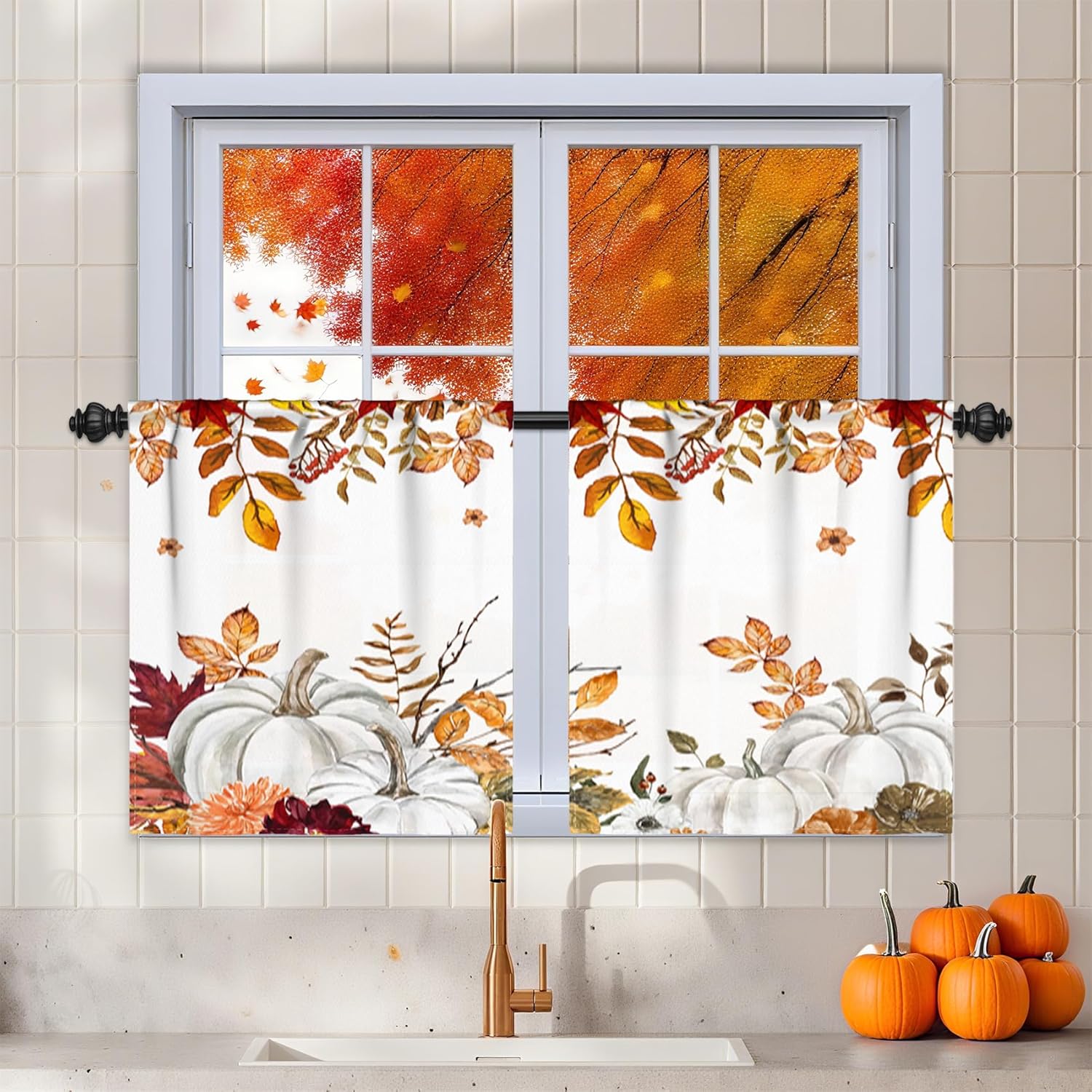 About UsRenaiss mainly deals with products such as curtain, shower curtains, backdrop and other high-end home furnishings, is a collection of research, development, production and sales as one of the brand.Renaiss advocate the combination of design,craftsmanship,quality,aesthetics and practicality, design curtains with feeling, flavour and tone.bring you a "relaxed and free" lifestyle, take you to explore the diversity of life.With the persistent pursuit of taste of life,Renaiss digging deep into the design process of the potential value of art to provide customer with classy curtains.Worth Choosing♥Our thanksgiving curtain made of high quality fabric,wear-resistant and with a good vertical feel.♥Our fall curtain short can keep privacy protection,with high performance in light filtering, thermal insulation and noise reduction.♥Our autumn harvest curtain also designed with back tab and hook belt,3 hanging options♥Our autumn curtain tiers design by high-tech craftsmanship,bright color and durable, will not fade for longtime to use.♥Thanksgiving decor multiple uses,can be used for living room curtain, farmhouse curtain,kids bedroom curtain,dining room curtain,basement window curtain,etc♥Complements a variety of room styles,you can choose different pattern curtain according to your home style,such as casual curtain, country curtain, modern curtain or vintage curtain as you like.Customer ConcernsQ:How many pieces in a package? Are the panels 52"W per panel or do they measure 52"W together?A:2 panels in a package,each Panel measures 52"W, so 104"W total.Q:Does the curtain tiers have wrinkles?A:Few of the them will have wrinkles due to packing squeeze during shipping. You can remove it with low-temperature ironing.Q:Are the curtain colors same as the website?A:There are slight difference due to different display devices, screen brightness, or light brightness.