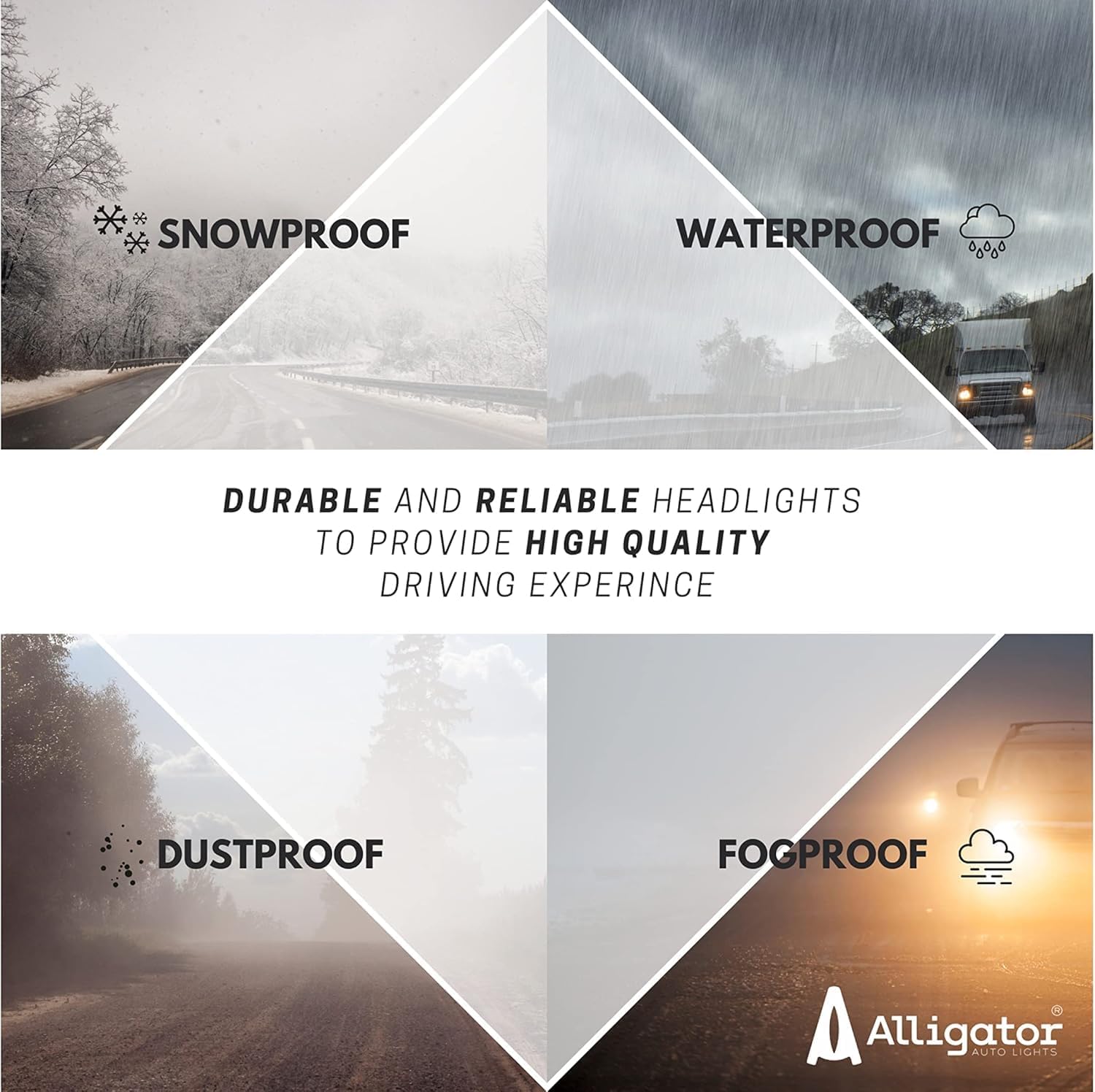 • [Durable] Alligator Auto Headlight is made of high quality materials which is excellent durability, not easy to deformation and fracture. Our lens offer superior UV protection, does not fade under long-term sunlight, can be kept brand new even after long time use.