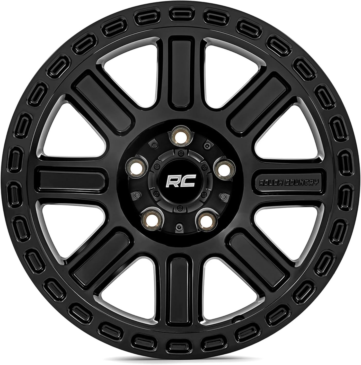 Ready to take your ride to the next level? Look no further than the Rough Country 84 Series Black Wheels! These wheels are a perfect blend of power, style, and performance. Featuring a sleek Gloss Black Finish that resists corrosion and keeps your wheels looking sharp, plus a bold 8-Spoke Design that gives your vehicle an aggressive edge, these wheels are built to stand out. The Single-Piece Aluminum Construction delivers unbeatable strength while keeping your ride light and agile for off-road excellence.Each wheel includes a Rough Country Black Center Cap, adding that perfect finishing touch to your vehicle’s new look. Backed by a 1-Year Finish & Limited Lifetime Structural Warranty, you can trust in both the durability and performance of the 84 Series Black Wheels. Life's too short for boring wheels, so ditch the old wheels, unleash your individuality, and hit the road with the 84 Series Black Wheels.
