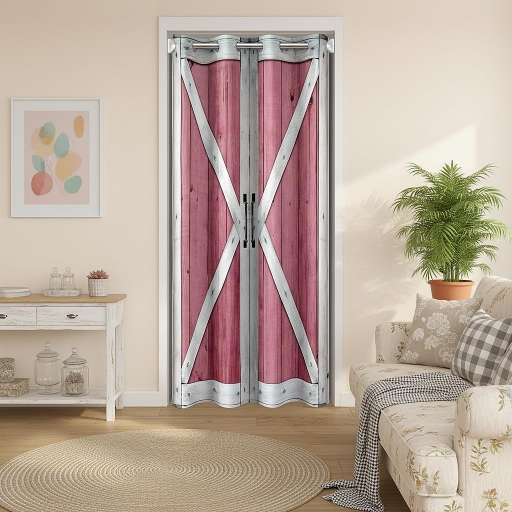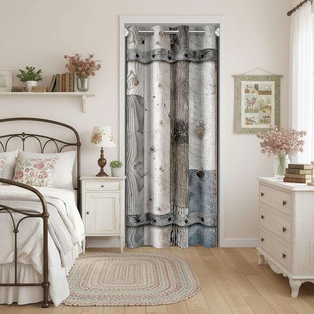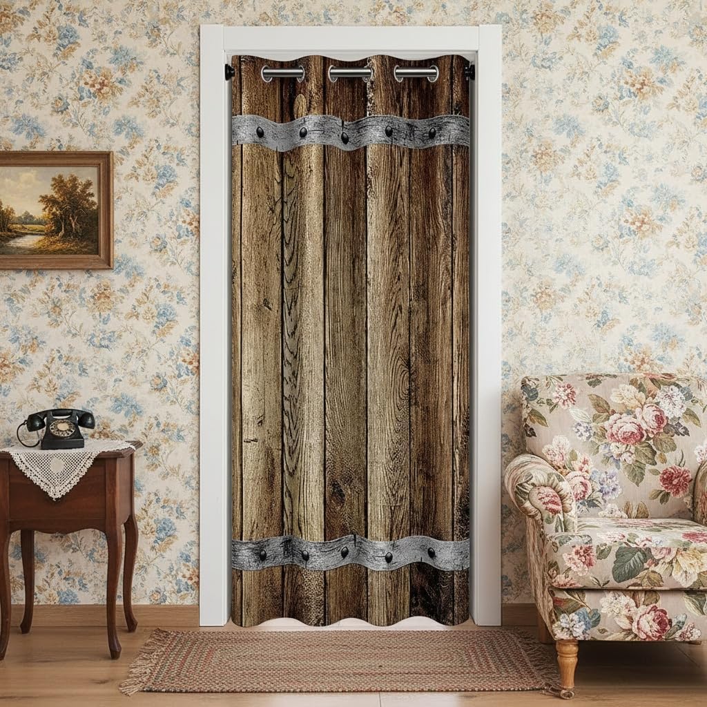 Rustic Wood Door Curtain,Barn Rural Village Farm Room Divider Door Cover for Kids Adults Privacy,Rustic Farmhouse Wooden Door Closet Door Cover Curtains for Bedroom Living Room 1 Panel,34"W X 80"L