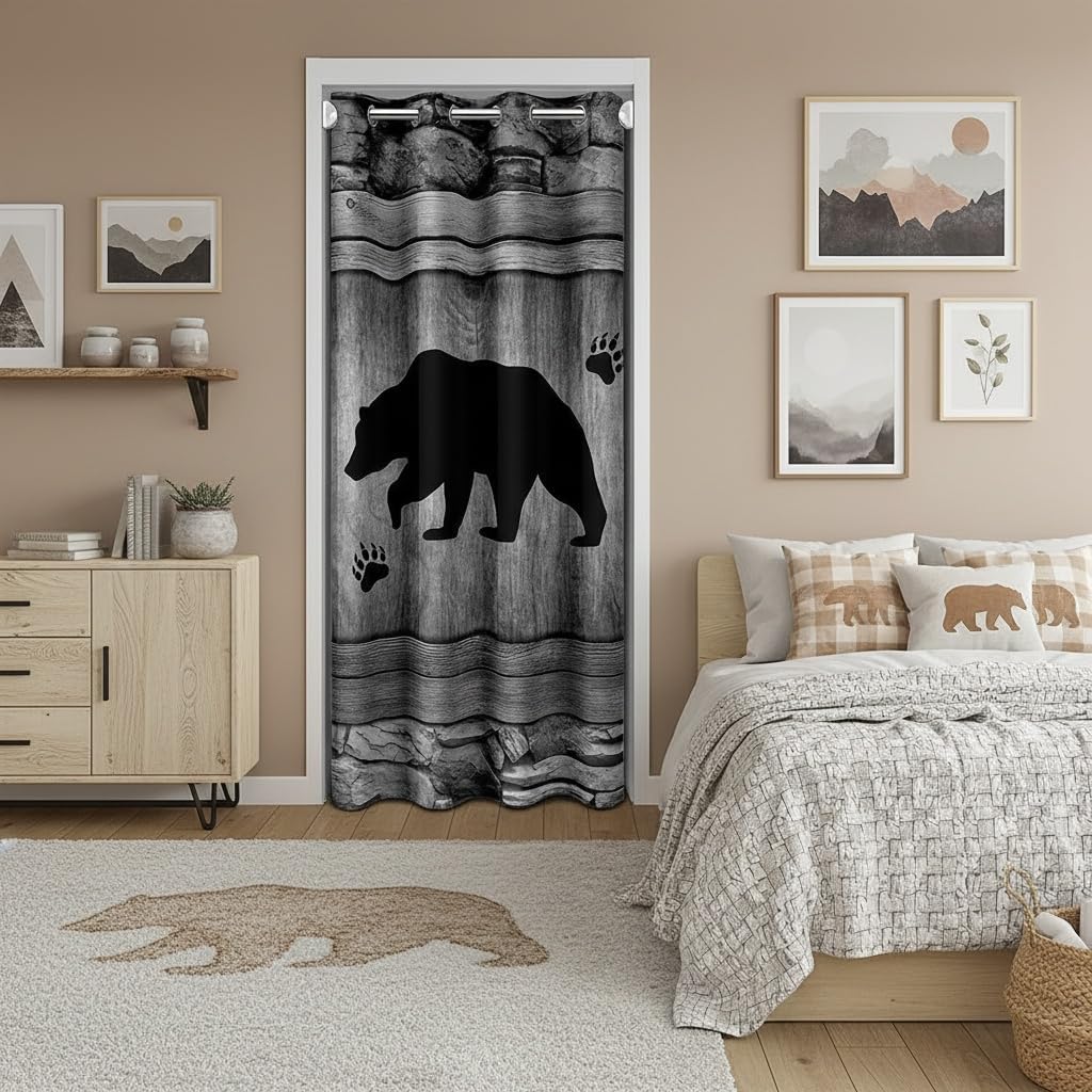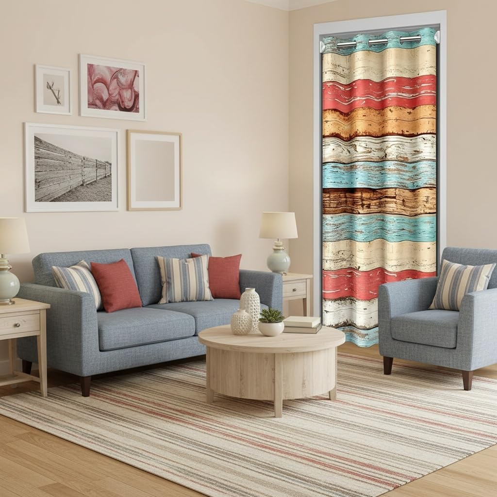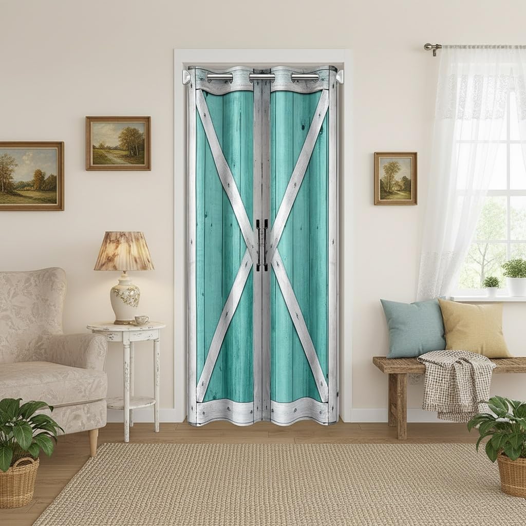 Rustic Wood Door Curtain,Barn Rural Village Farm Room Divider Door Cover for Kids Adults Privacy,Rustic Farmhouse Wooden Door Closet Door Cover Curtains for Bedroom Living Room 1 Panel,34"W X 80"L