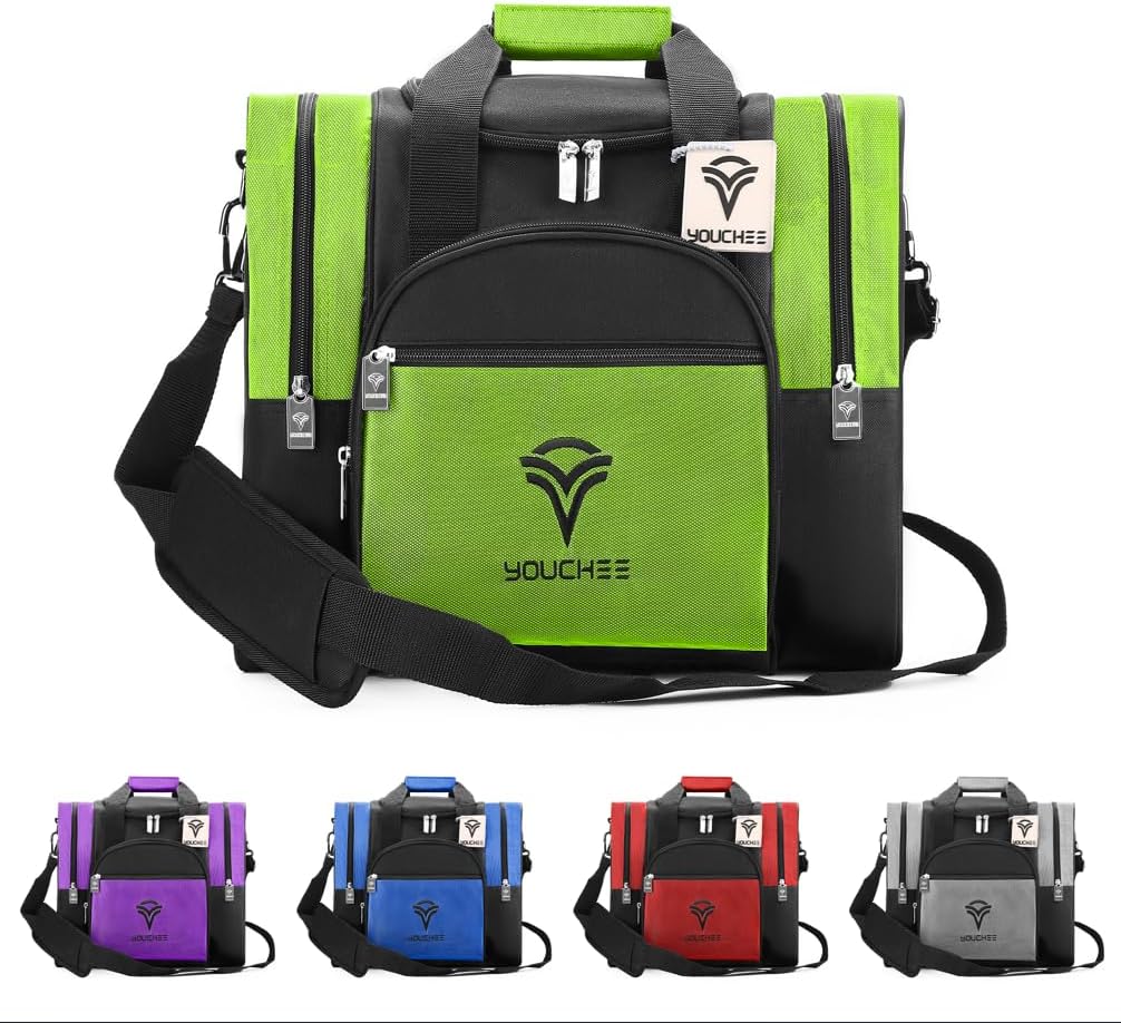 Elevate Your Game with the YOUCHEE Premium Single Ball Bowling Bag Whether you're a seasoned league veteran or a weekend enthusiast, the way you transport your gear matters. The YOUCHEE Single Ball Bowling Tote is engineered to provide professional-grade protection, sleek style, and unparalleled convenience in one compact package. Ultimate Protection for Your Prize Ball Your bowling ball is an investment. Our bag features a built-in, extra-thick foam padded ball holder that securely cradles your ball. This snug fit prevents shifting and protects your ball from scratches, dings, and impact during transit to and from the lanes. Designed for the "Big" Players Tired of bags that can’t accommodate your shoes? We’ve designed oversized side compartments specifically to fit men’s bowling shoes up to Size 15. The ventilated design ensures your shoes stay separate from your ball, keeping your gear clean and odor-free. Smart Organization, Zero Clutter No more digging around for your accessories. With a dedicated front zipper pocket and multiple side mesh sleeves, you can neatly organize your microfiber towels, rosin bags, slide stone, and cleaning sprays. Everything you need for that perfect strike is right at your fingertips. Built to Last, Frame after Frame Constructed from high-density, tear-resistant 600D Oxford fabric, the YOUCHEE bag is built for durability. We’ve reinforced the stress points and added heavy-duty zippers to ensure this bag stands up to the rigors of daily practice and competitive league play. Travel in Total Comfort Why struggle with heavy gear? Our bag features a detachable, fully adjustable padded shoulder strap that distributes weight evenly. Prefer to carry it by hand? The reinforced Velcro wrap handle provides a soft, secure grip for quick transitions. Why Choose YOUCHEE? Fits Men's Shoes up to Size 15: No more cramped gear. Padded Foam Cup: Superior shock absorption for your ball. Heavy-Duty 600D Material: Water-resistant and easy to clean. Available in Multiple Colors: Match your style with Blue, Red, Green, Grey, or Purple. Package Includes: 1 x YOUCHEE Single Ball Bowling Bag 1 x Detachable Padded Shoulder Strap
