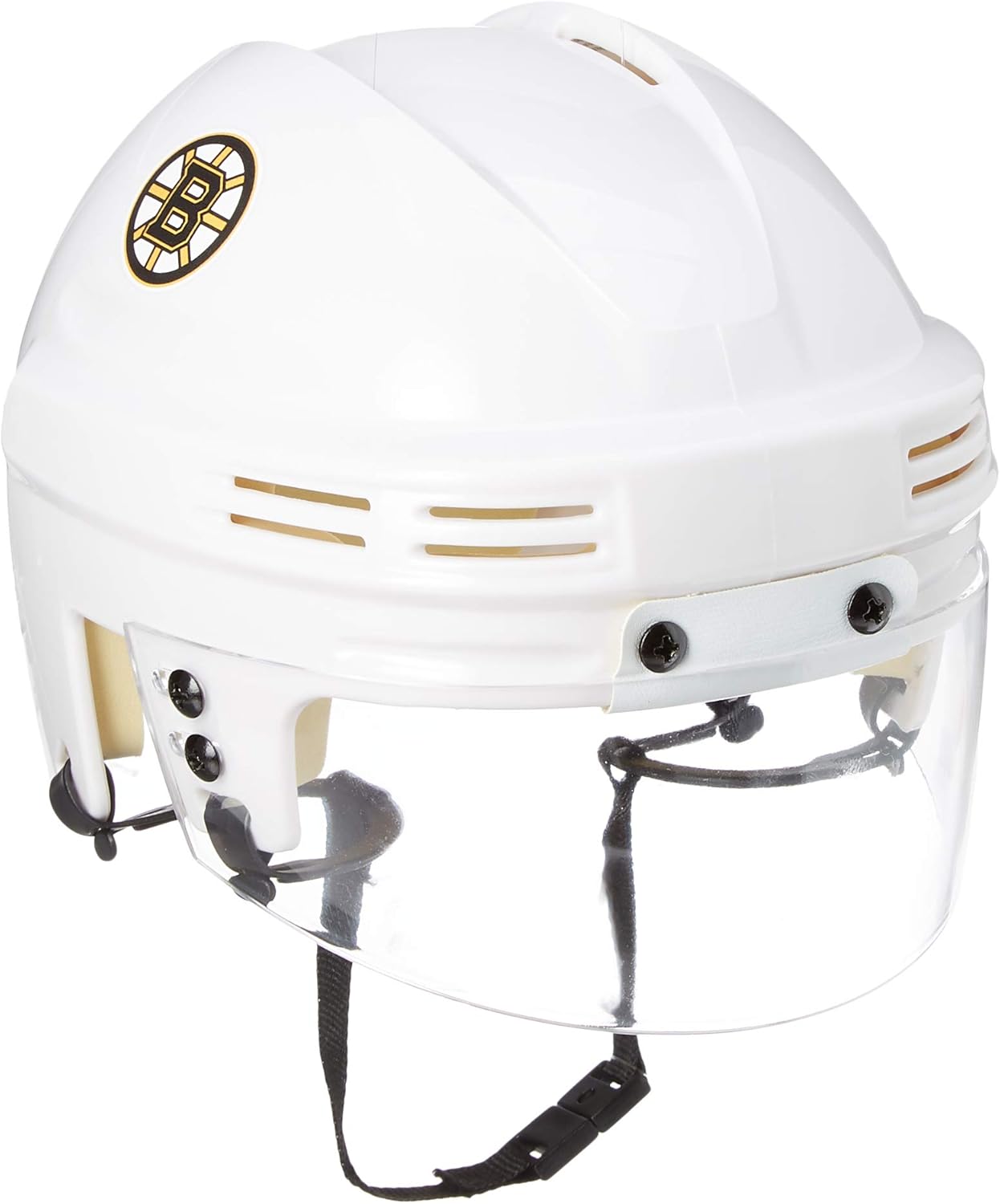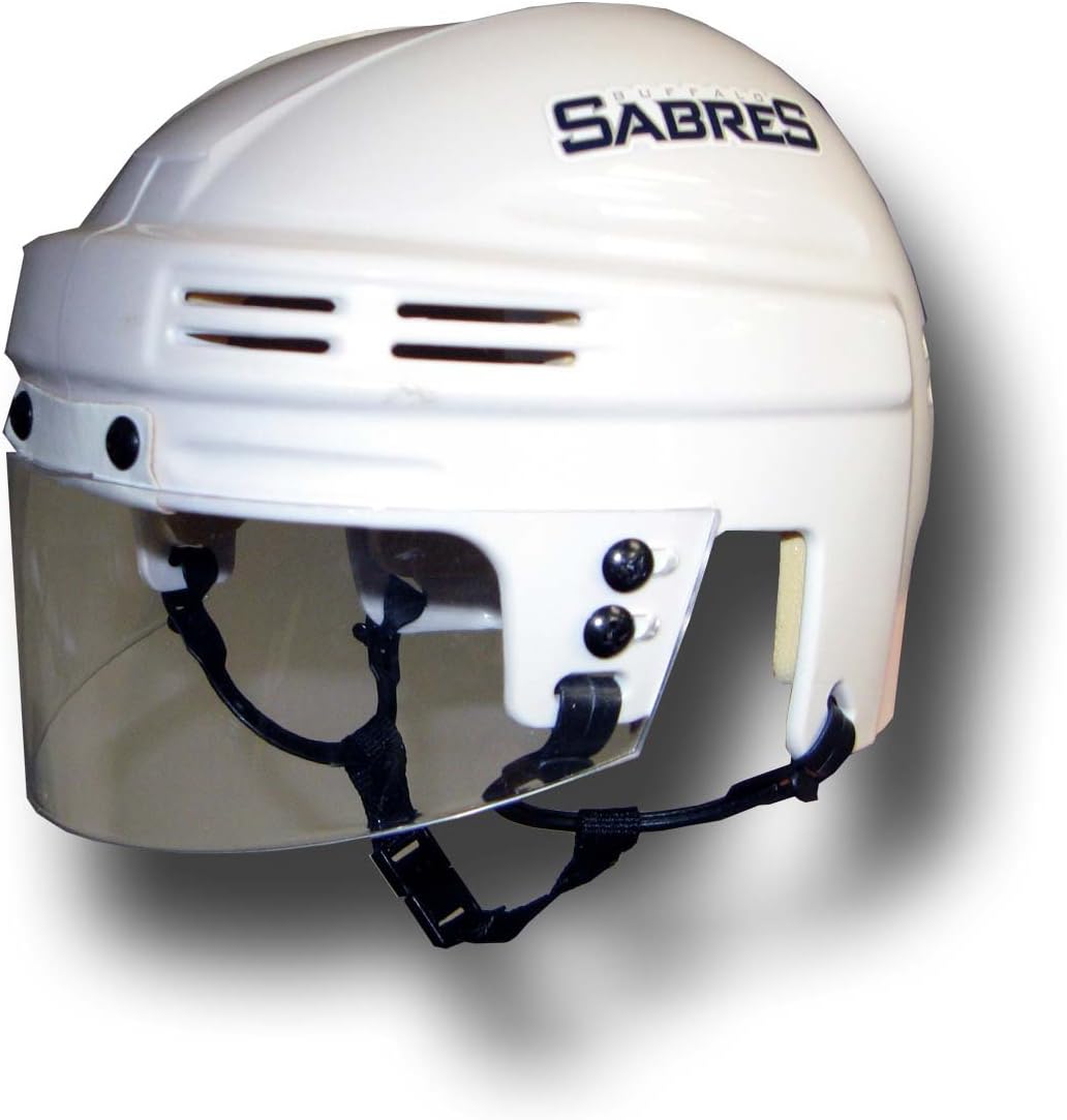 Sportstar Athletic's authentic scale model mini helmets with eye shield, foam padding, ear loops, and authentic NHL team decals. Mini Helmet Size: 6" long x 5" wide.