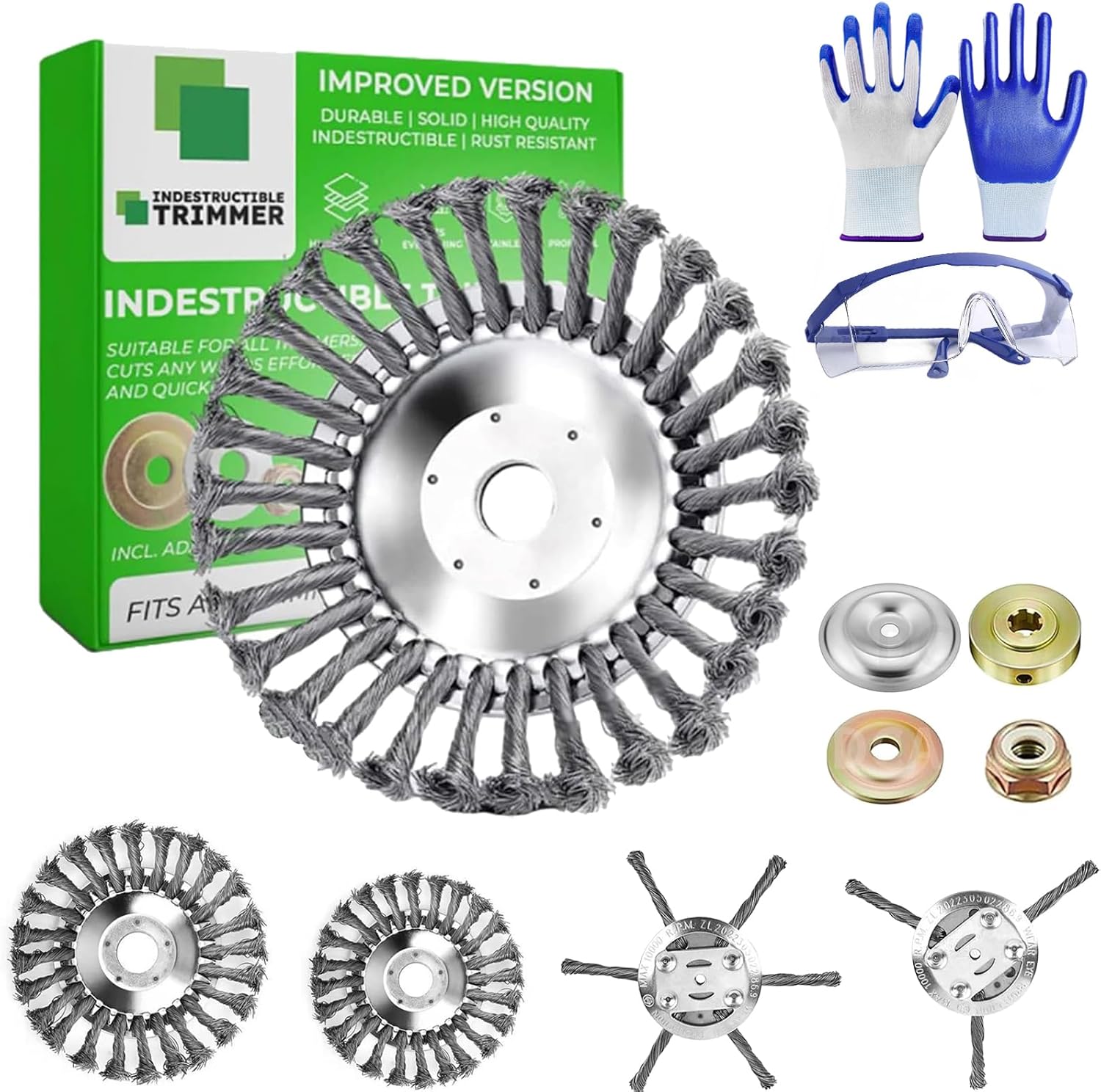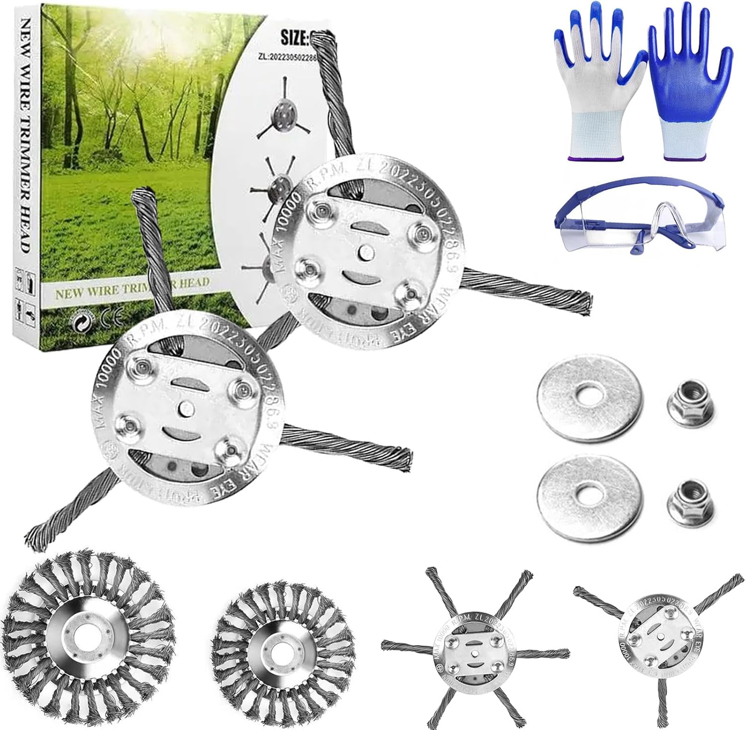 Meet the Steel Wire Grass Trimmer Head—your new go-to for wrecking weeds, clearing edges, and dominating overgrowth like a pro 🔥 Made with twisted steel wire to crush through thick weeds, grass, moss, and more—no snapping, no stalling ⚙️ Fits most gas and electric trimmers with universal arbor ⏱️ Quick install. Zero maintenance. Built to last all season (and then some) 💪 Landscaper-tested Specifications: Name: Steel Wire Grass Trimmer Head Size: 6/8/10 Inches Number Of Wire Heads: 3, 6, 30 Inner Diameter: 5 mm Product Weight: 150g Package Includes: 1/2/Pcs Universal Steel Wire Trimmer Head 1 Pair of Gardening Gloves 1pcs Goggles 1pcs Installation Accessories Notes: 1.Due to the light and screen difference, the item's color may be slightly different from the pictures. 2.Please allow slight dimension difference due to different manual measurement. 3.If you have any questions or problems with the products you received, please contact us in time.We will try to solve the problem.
