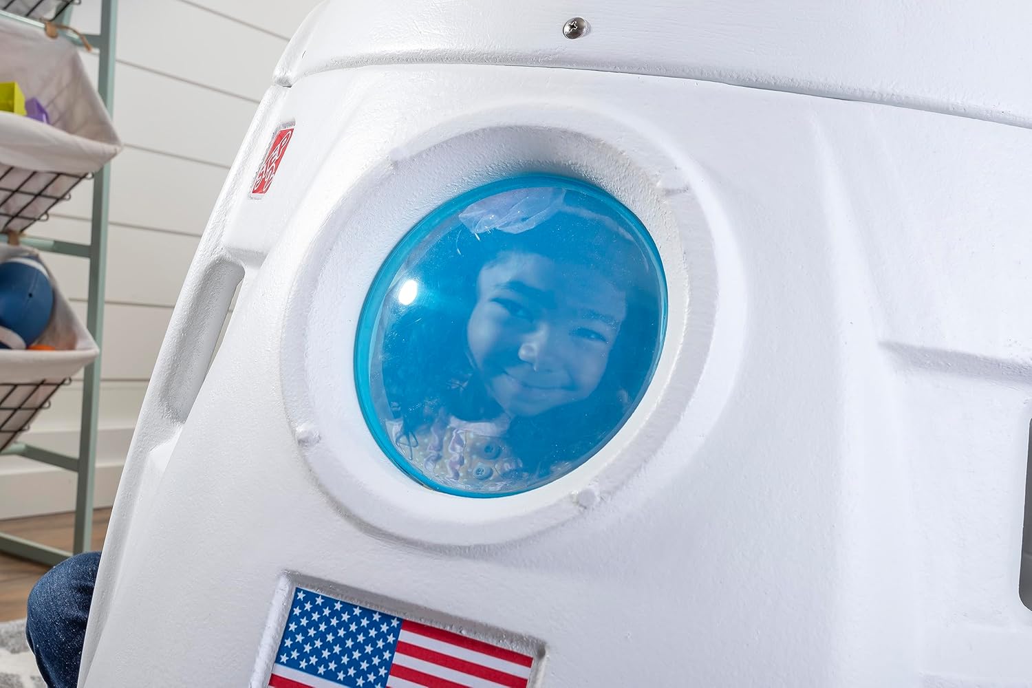 Spark curiosity for the universe and explore astronaut dreams with the Space Capsule Swing™ from Step2®! Featuring a unique two-in-one design, you have the option to hang the capsule as a swing or use it as a stationary kids’ playhouse on flat ground inside or out. With an exciting design that accommodates one or two children at once, the opportunities for adventurous pretend play are limitless. Created with the needs of little ones in mind, there are openings on either side with large handles that make it easy to hop in and out. The blue-tinted porthole windows are perfect for observing surroundings while swinging through the galaxy. This toddler toy has durable, high-quality construction that can withstand years of playtime fun. The realistic, kid-friendly design encourages children to learn through play, supporting the growth of gross motor skills, fine motor skills, self-esteem, and sensory exploration. Ideal for 2 riders ages 3-7, 50 lbs. per child for a total weight capacity of 100 lbs.Made in USA with US & Imported Parts.