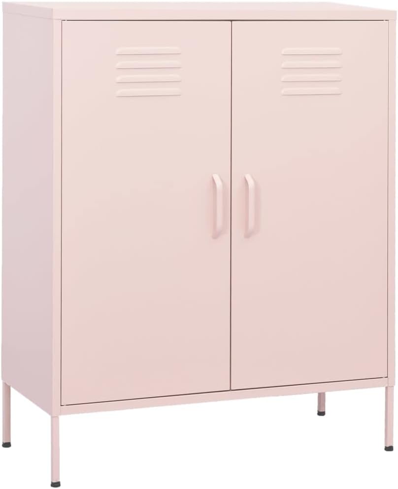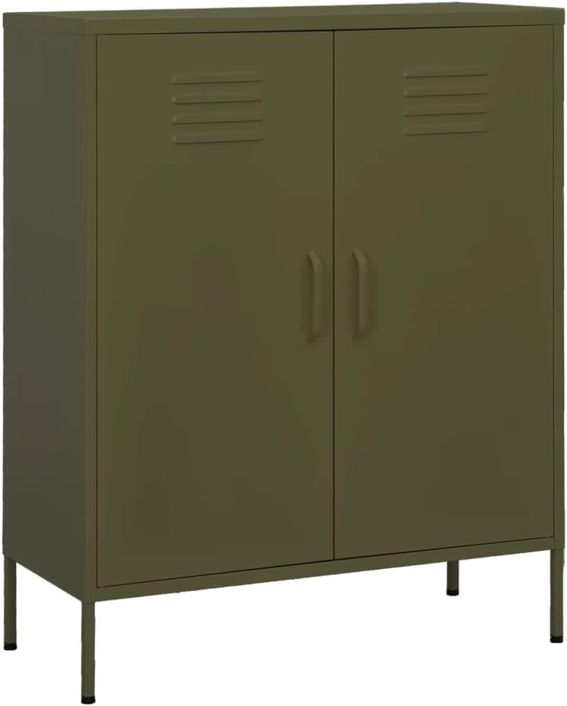 This storage cabinet with practical design is a real eye-catcher for your home decor.This side cabinet, featuring a steel construction, is sturdy and durable. There are levellers on the bottom to adjust the height according to your needs. The sideboard has 2 doors with adjustable shelves inside to suit different sized items, such as books, magazines, and other personal essentials.Color: Navy blueMaterial: SteelDimensions: 31.5" x 13.8" x 40" (L x W x H)Leg height: 5.9"Amount of shelf: 2 (adjustable)Loading capacity per shelf: 66.1 lbTotal loading capacity: 198.4 lbFeatures levellers on the bottomAssembly required: Yes