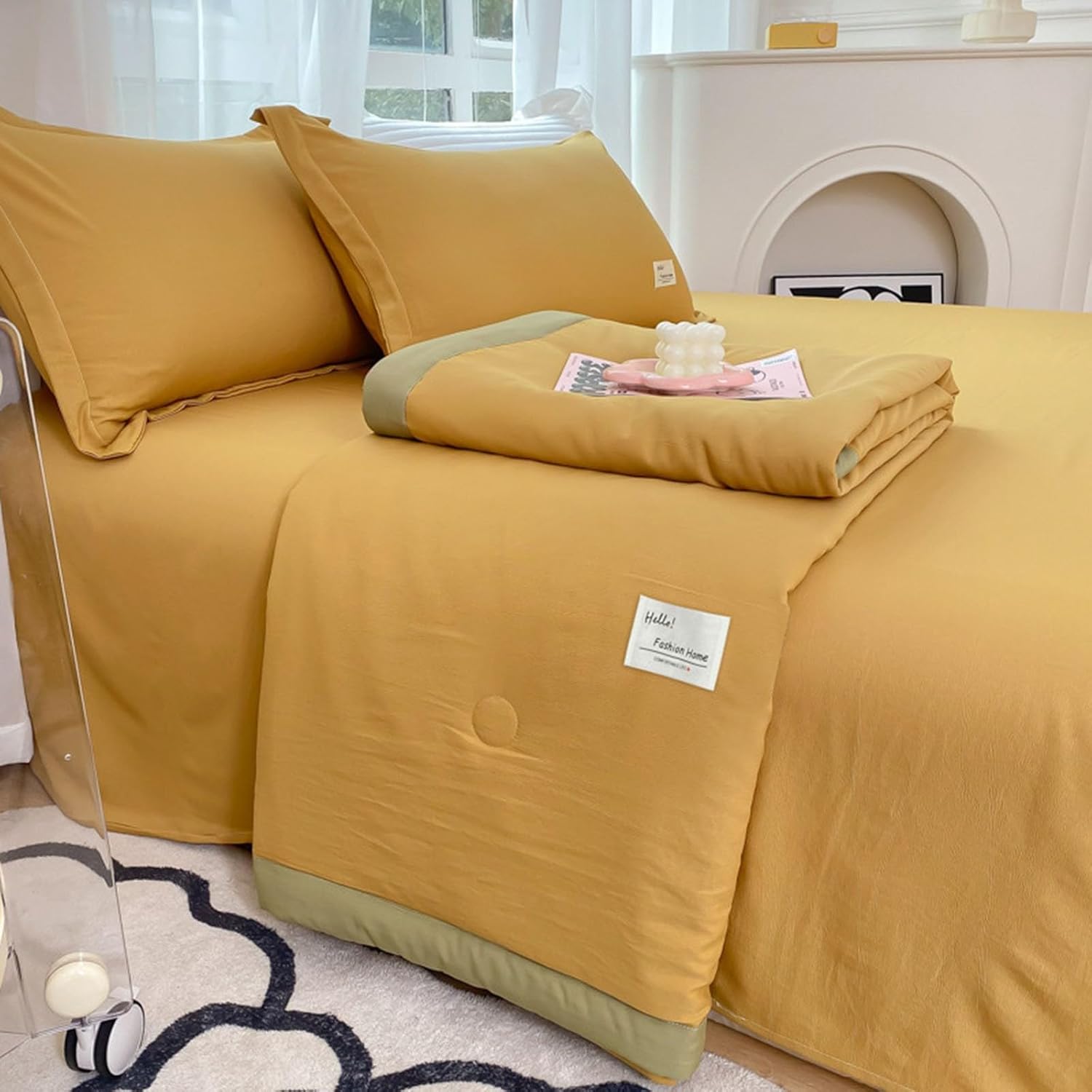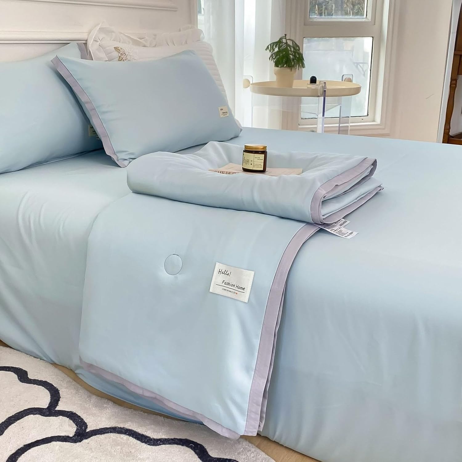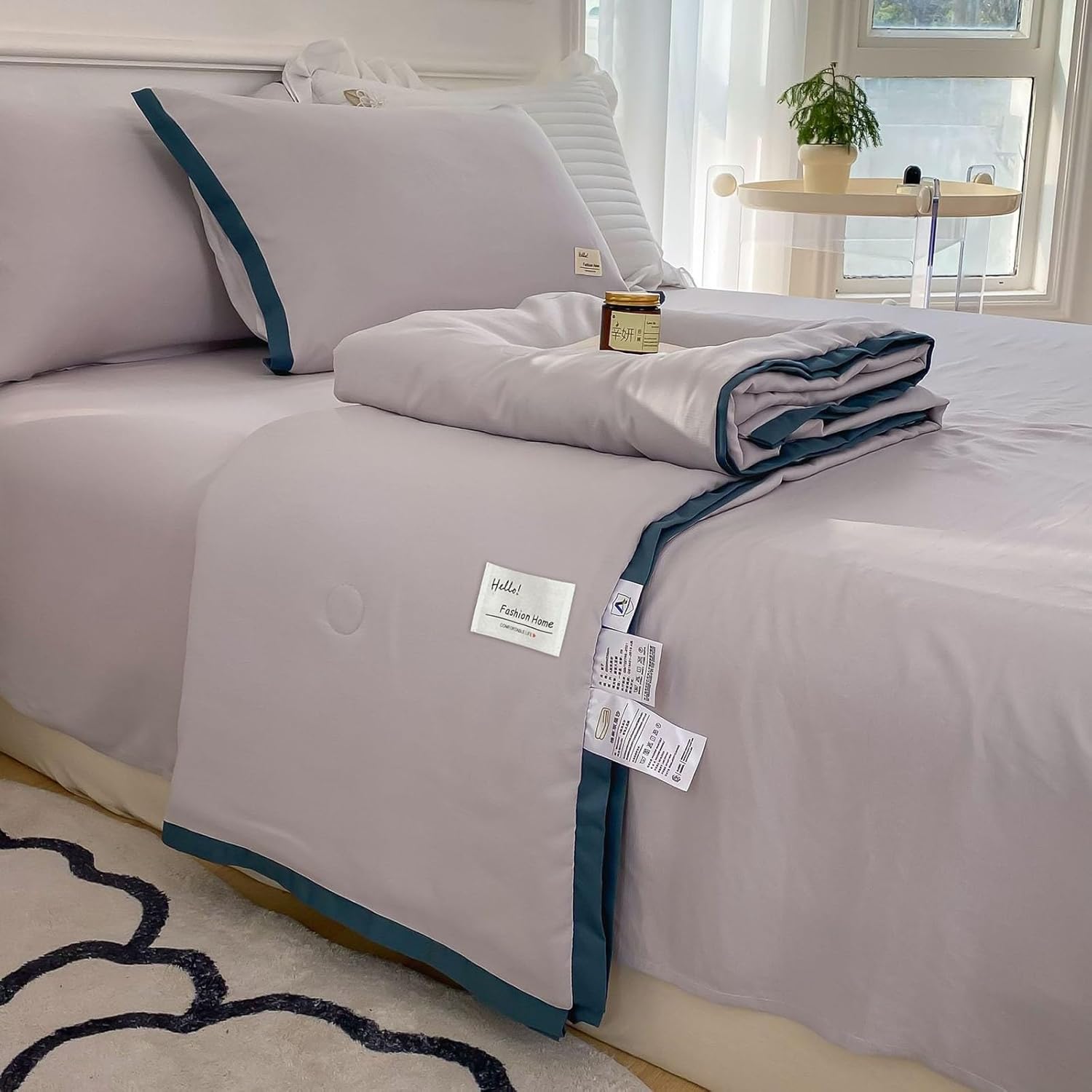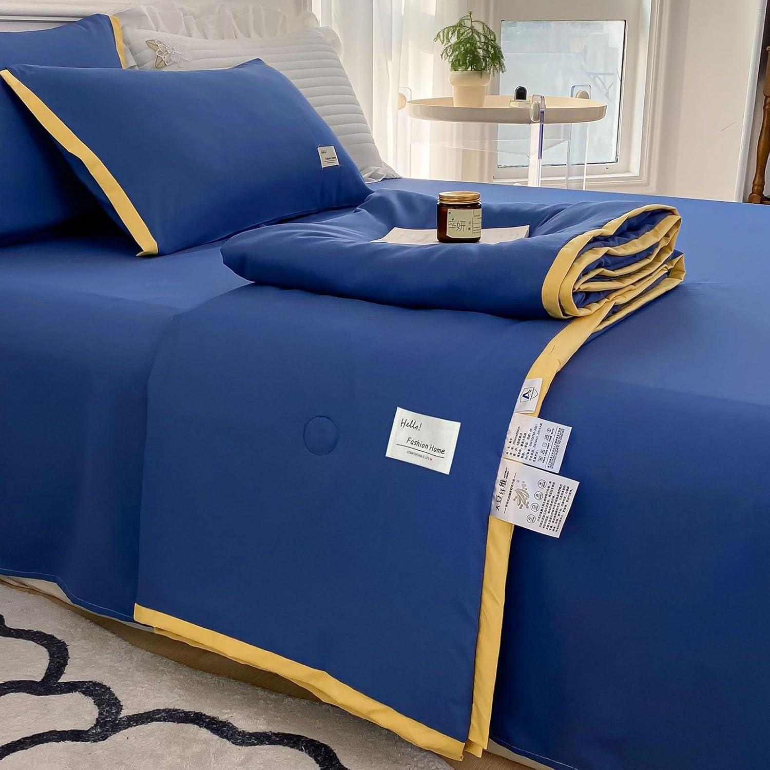 Product name: Summer cool and breathable quiltProcess: reactive printing and dyeingFabric: Cotton linen double layer yarnFilling: Whole sheet of soybean cottonsize:150x200cm=59.1"x78.7"180x220cm=70.8"x86.6"200x230cm=78.7"x90.5"