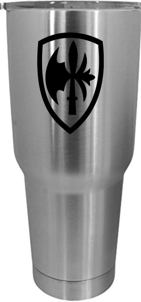 This is a high quality 30oz Tumbler etched with a beautiful military logo. The laser interacts with the metal to create a unique black look that is smooth and very detailed. The etching is guaranteed to never fade or wear off.
