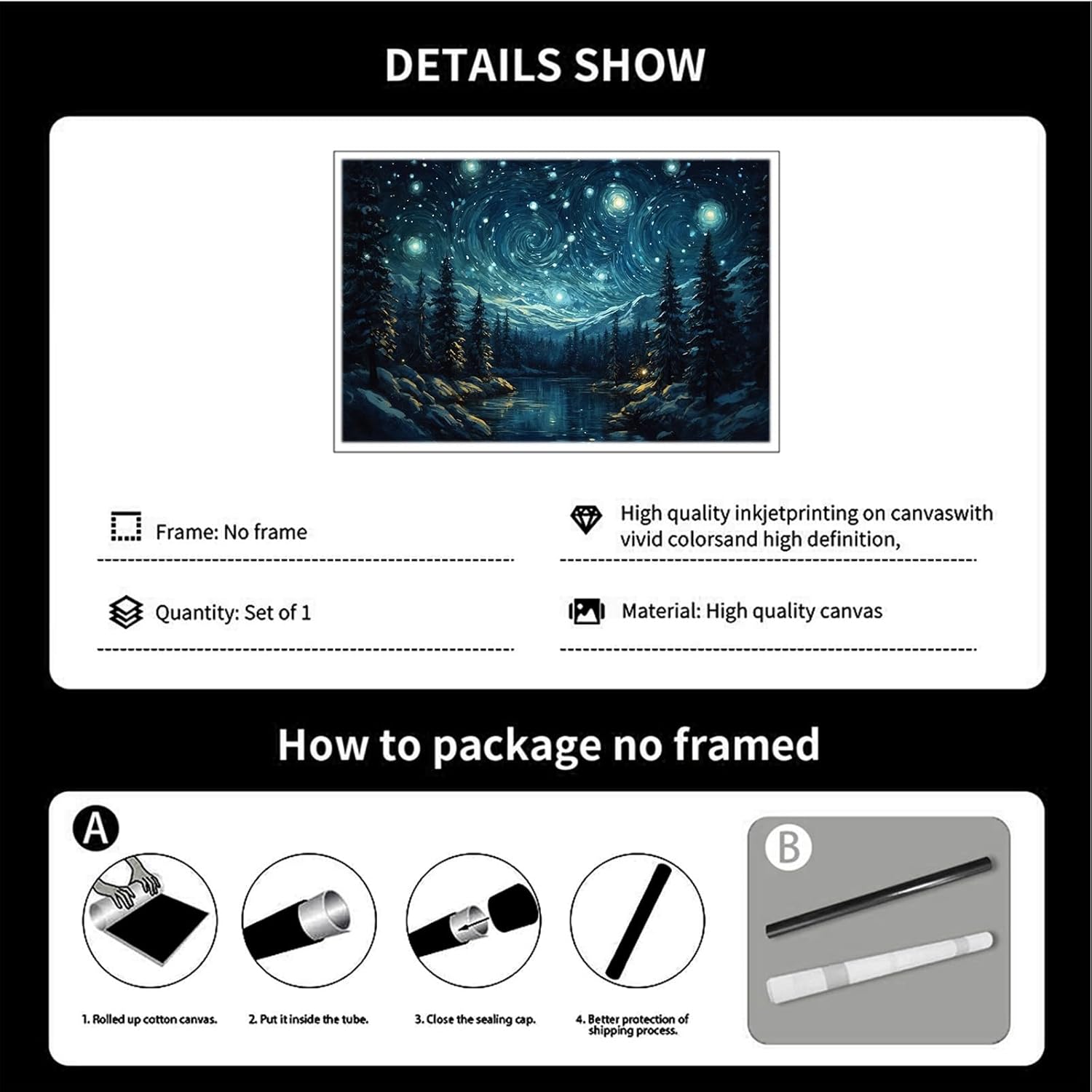 How about after-sales service? Our excellent in-house team will handle your art prints to ensure that no details are overlooked from planning design to completion to shipping. If you have any questions about your order, please feel free to contact us and we will respond and solve your problems. What are the benefits of wall art? ✓ A warm setting that allows you to relax every day. ✓ Make the empty wall no longer monotonous, add a warm atmosphere to your space, full of vitality and creativity. ✓ A perfect choice for weddings, anniversaries, Thanksgiving, Valentine's Day, birthdays and other occasions. About us: We are a large decoration manufacturer specializing in producing high-quality wall art using high-quality canvas. We spend a lot of time designing, producing every aspect of each art print, to ensure that the high-quality artwork you receive is comparable to even selected gallery works. Warm Tips: 1. There is no difference in the product itself, but the color seen by each user may be slightly different due to different personal monitors. 2 . The prints are hand-cut and there may be an error of 1-2 mm.