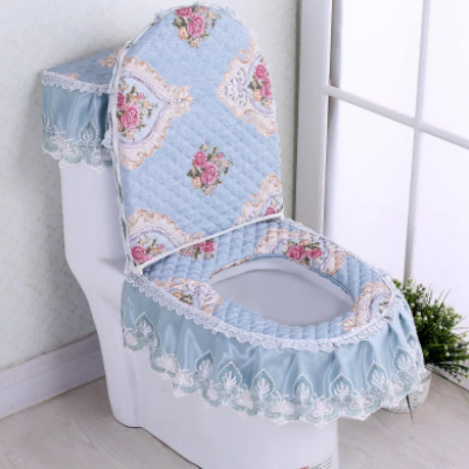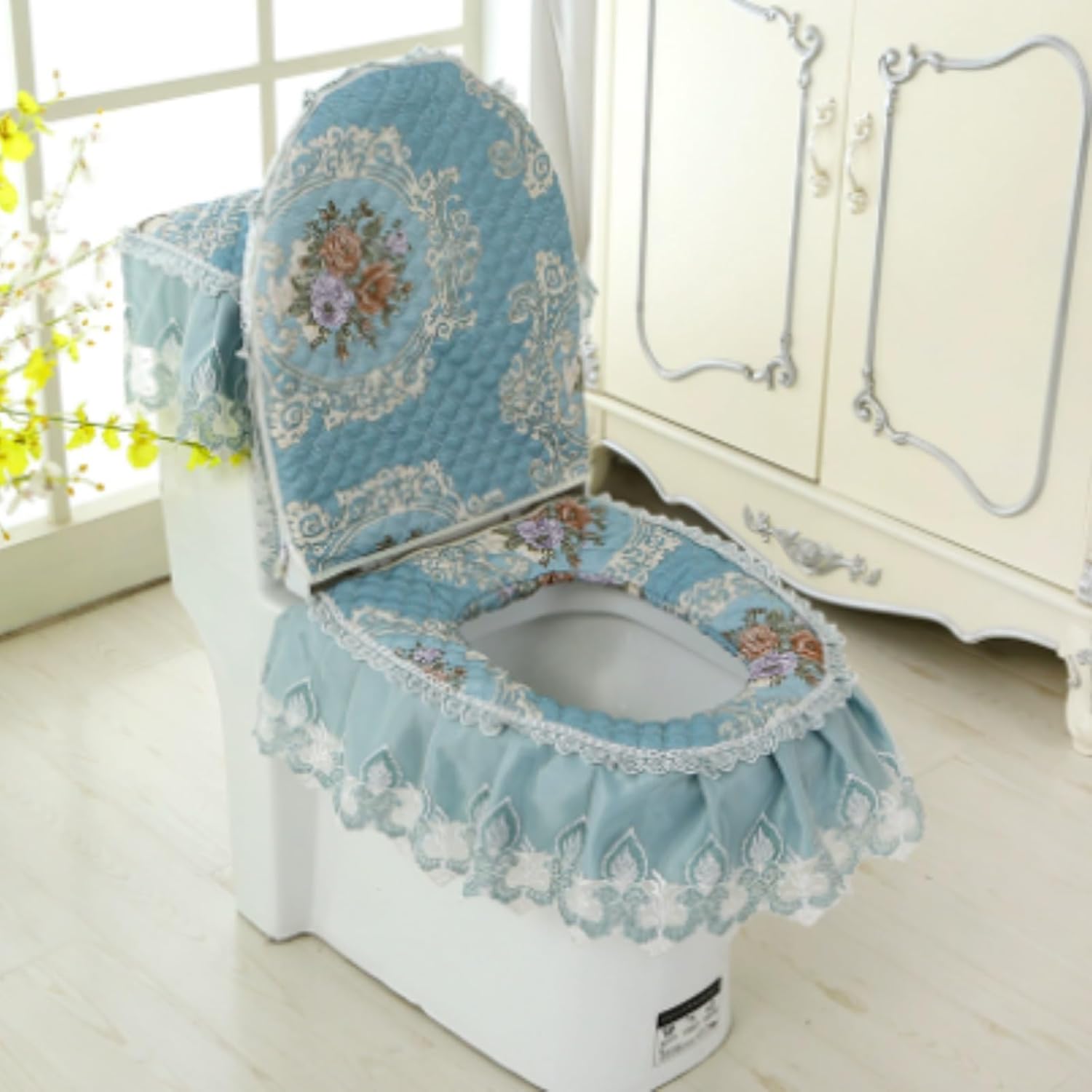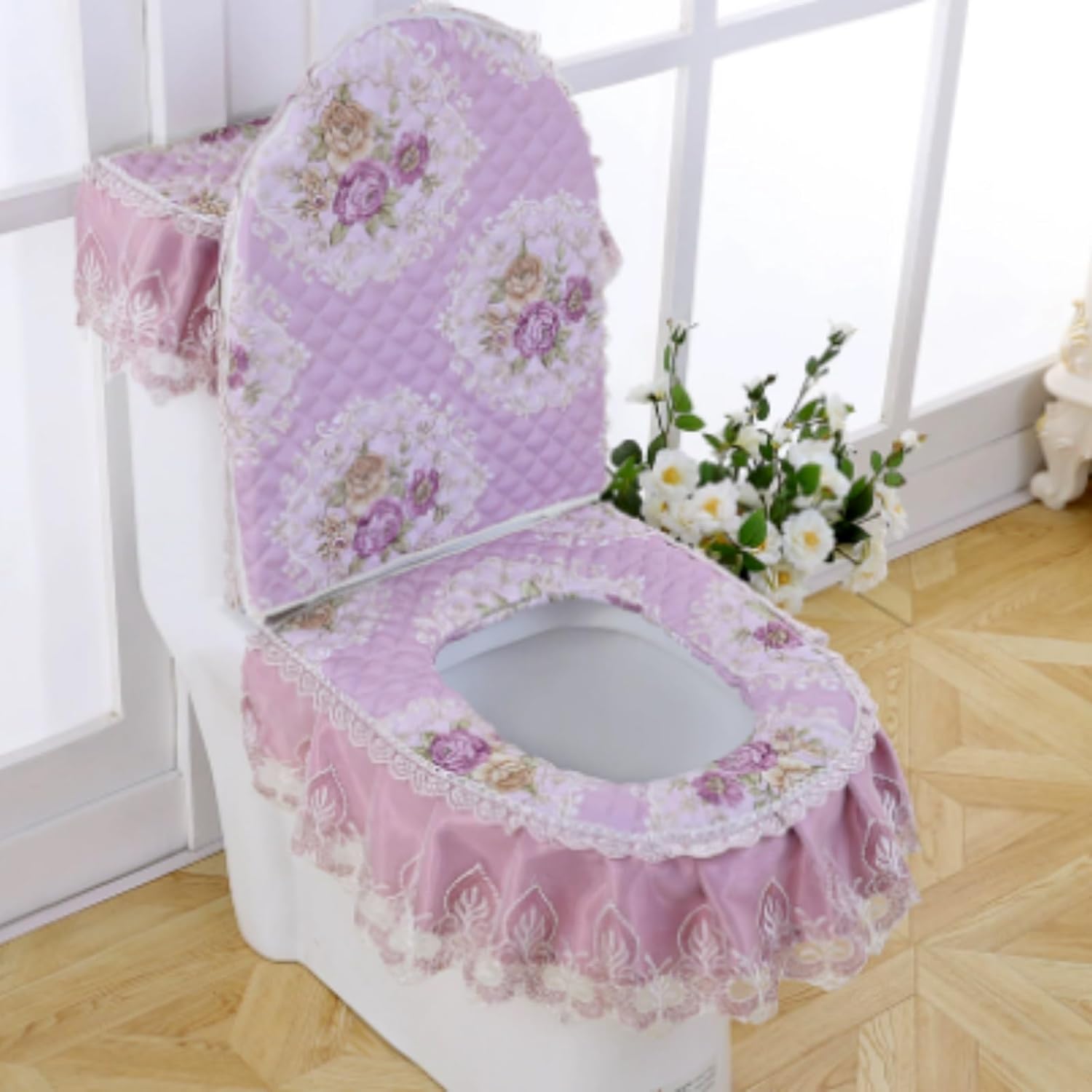 • Embroidered Lace: This toilet seat set boasts an elegant and luxurious appearance, featuring intricate embroidery and lace detailing. It's stylish and refined, adding a touch of modern flair to your bathroom