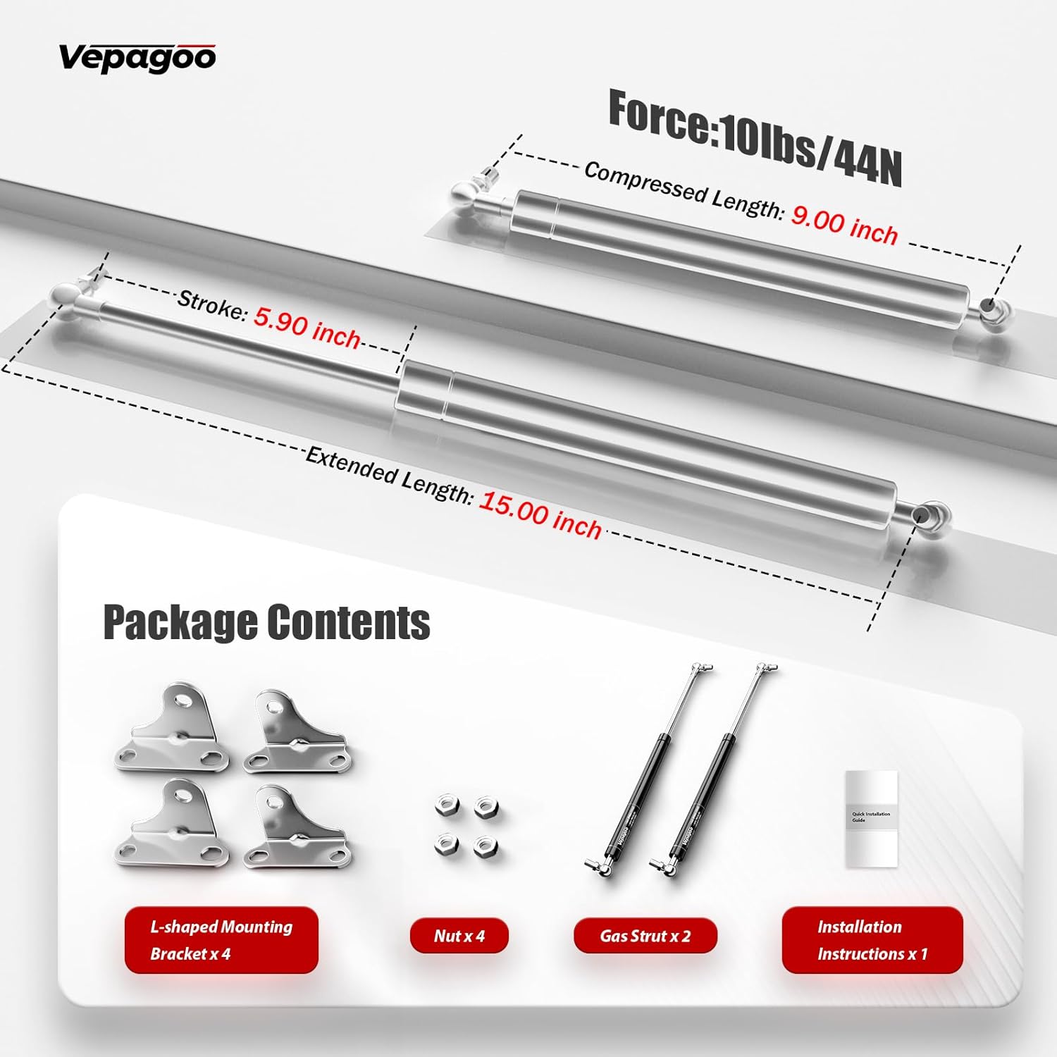 | Included Components | gas strut x 2, thickened L bracket x4, M8 nuts x 4 |
