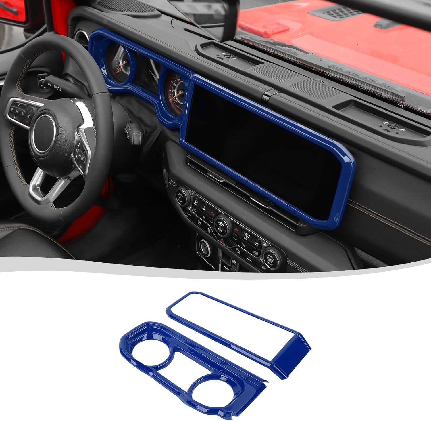 Model: for Jeep Wrangler JL JT 4XE 2024+(New Model Interior). Feature: -Completely changed the Original Colors, it slip over the factory plastic and fits perfect. Provides a high class and fashion decor style for your car.change the ordinary design and add unique color. It can cover existing scratches and prevent your car from scratch and abrasion. -Made of High Quality ABS -Can be installed directly, no drilling or cutting required, just stick the trim on the Original parts. Don't need any other tool, no damage to your Car After sales service -If you're not 100% satisfied with Voodonala Center Dash Navigation Panel Cover simply return it on amz rules. -If you have any suggestions or questions for our products, please contact us as soon as possible. Package Include: 2Pcs Voodonala Center Dash Navigation Panel Cover. Attention: Please compare your original Car with our images before placing the order. for Jeep Wrangler JL JT 4XE 2024+(New Model Interior).