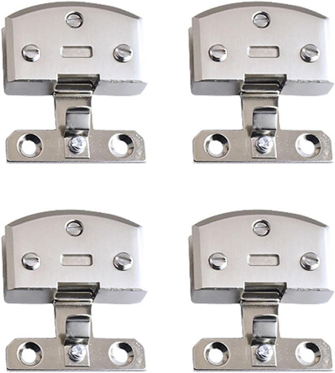 Beautiful Natural AccessoriesFeatures:* Adjustable screw fits most glass. Suitable for glass up to 5-8mm thick.* Installed on your bathroom and kitchen to hold glass panels, glass shelves, etc.* zinc alloy resists daily scratches, tarnishing.Specification:* Material: zinc alloy* Color: silver, brushed, black* Applicable glass thick: 5-8mm* Dimensions: as picture shown* Quantity: 4PCSPackage content:4 x hinges (with screws)